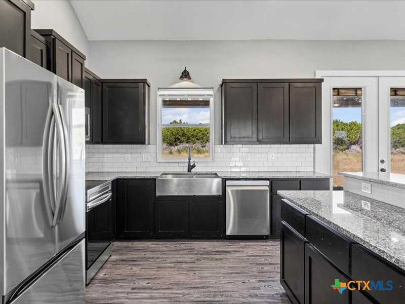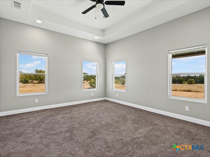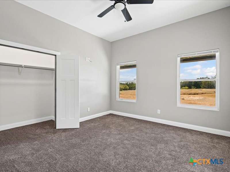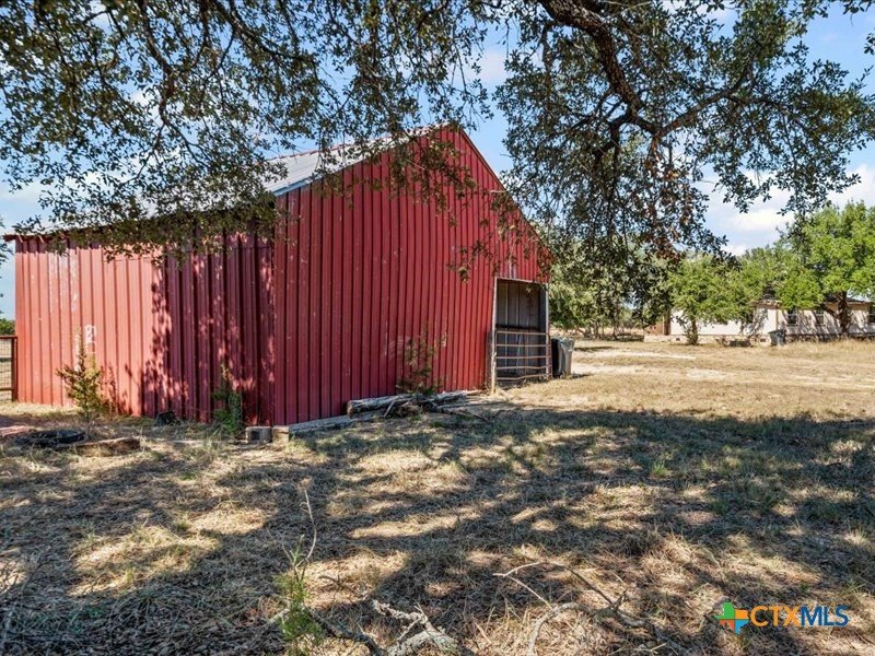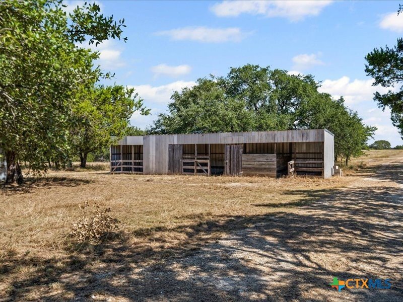 The property features two separate residences, providing flexibility for family, guests, or a ranch manager: The Main Residence: A modern 1,800 sq ft, 3-bedroom, 2-bathroom home is a light-filled sanctuary. The open-concept living area is defined by soaring vaulted ceilings and stylish laminate wood flooring. The gourmet kitchen boasting elegant dark cabinetry, granite countertops, stainless steel appliances, and a classic subway tile backsplash. After a day outdoors, step onto the expansive, covered patio to unwind and soak in the legendary, unpolluted Texas sunsets. The Guest house: Offers a cozy secondary living space, 960 sq ft, 2-bedroom, 1-bath cabin is nestled under mature oak trees. Perfectly suited for extended family, a dedicated ranch hand, or as a reliable source of rental income. The 40 acres have been thoughtfully managed and cleared of dense cedar, revealing numerous majestic heritage oak trees that provide ample shade and natural beauty across the landscape. The land is a proven haven for local game, including abundant whitetail deer, making it an excellent location for both wildlife viewing and seasonal hunting. The size of the property ensures uncompromised privacy for your hunting blinds and trails. The property is already divided into pastures with multiple cross fences, simplifying livestock management, rotational grazing, or separating recreational areas. Essential outbuildings are in place to support a working or recreational ranch, including a classic red barn, a three-stall pole barn, a large well house, and even a small chicken coop. Wrought-iron entry gate that leads down the private gravel drive to your secluded homes. This property offers more than just real estate; it provides a complete lifestyle—the tranquility of quiet country mornings, the self-sufficiency of extensive acreage, and the certainty of complete and total privacy.