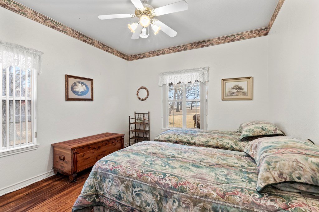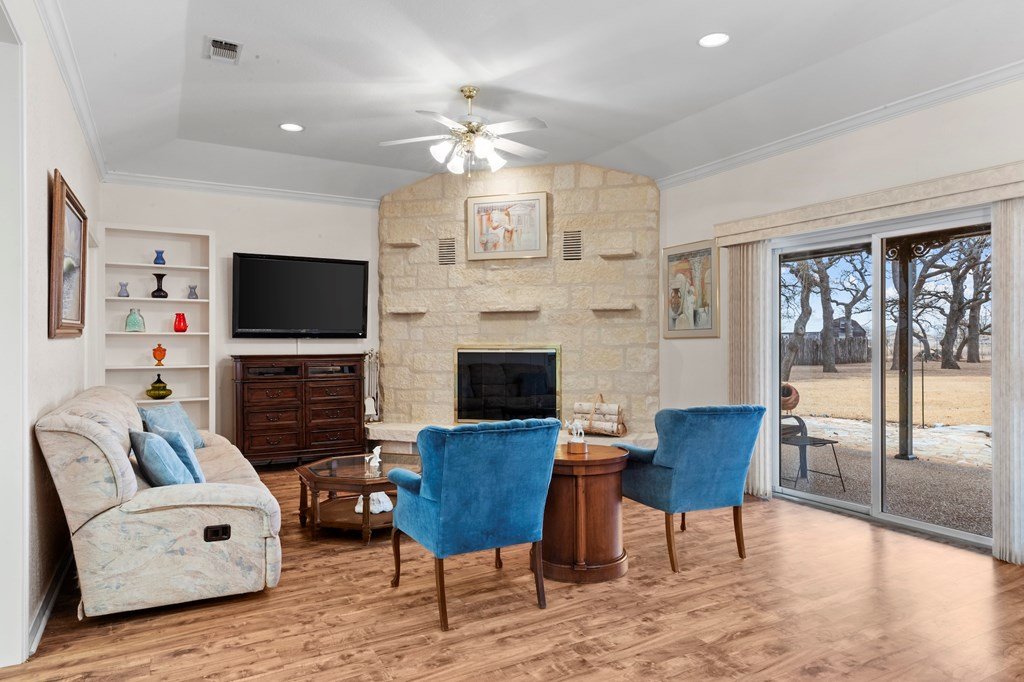 Welcome to this well-maintained three-bedroom, two-bath home on 2.53 beautifully treed acres, offering the perfect blend of comfort and convenience. Enjoy peaceful country living away from the hustle and bustle, yet remain less than four miles from downtown Fredericksburg. Step inside to an inviting open-concept layout where the kitchen, dining, and living areas provide generous space for everyday living and entertaining. The kitchen features a wall oven and a separate cooktop, ideal for home cooking, while the living room's wood-burning fireplace creates a warm, welcoming ambiance. The thoughtfully designed floor plan places the primary bedroom on one side of the home, offering privacy from the two guest bedrooms. Tile flooring and ceiling fans throughout add comfort and ease of maintenance. Major updates include a new HVAC system installed in 2025 and a hot water heater replaced in 2023. An attached two-car garage provides convenient parking and additional storage. The property also features two water wells-one serving the home and the other dedicated to the landscape. For RV owners, there is a gravel-floor RV storage area along with three electrical outlets on the right side of the home, making it easy to keep your RV powered and ready to go.