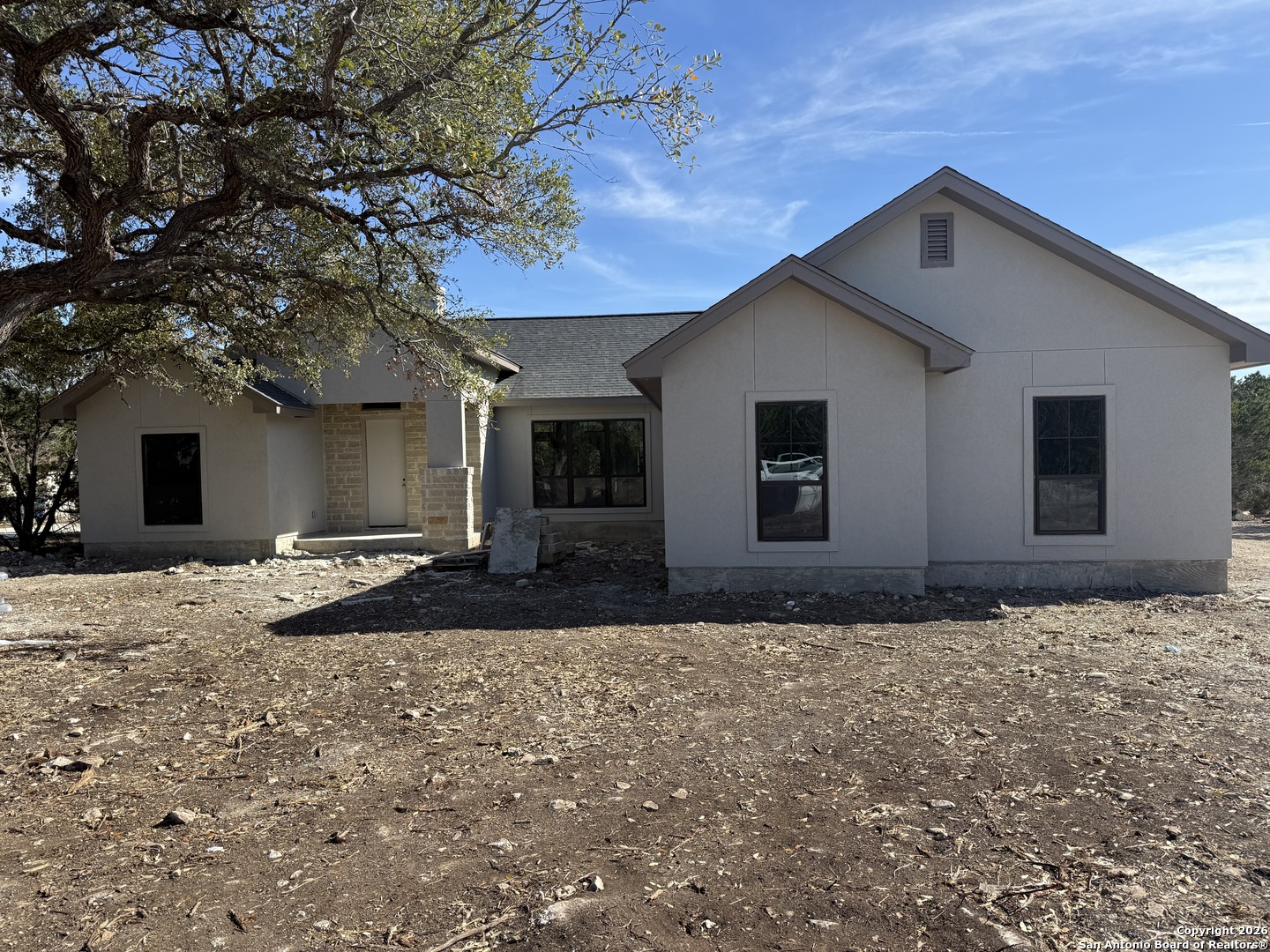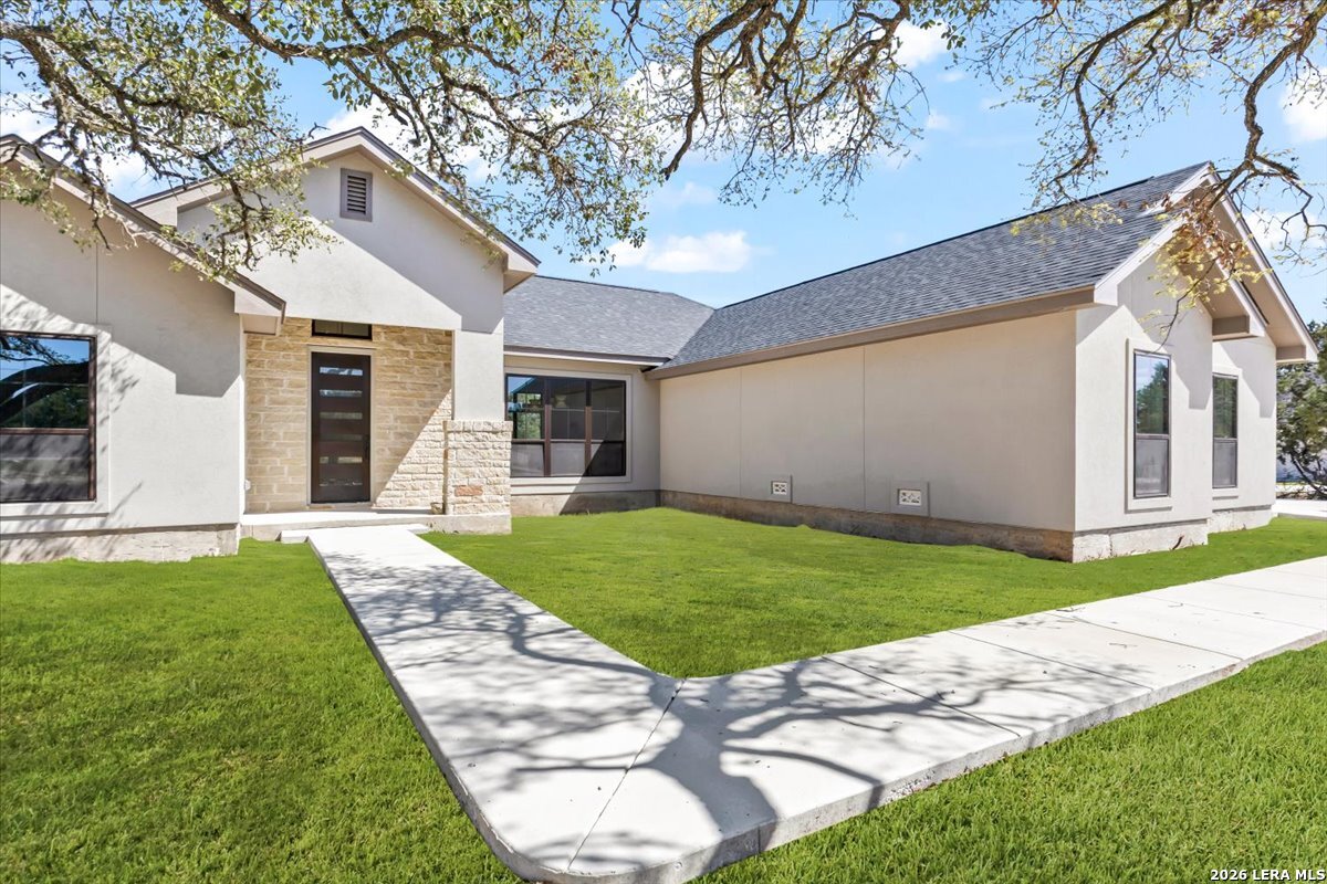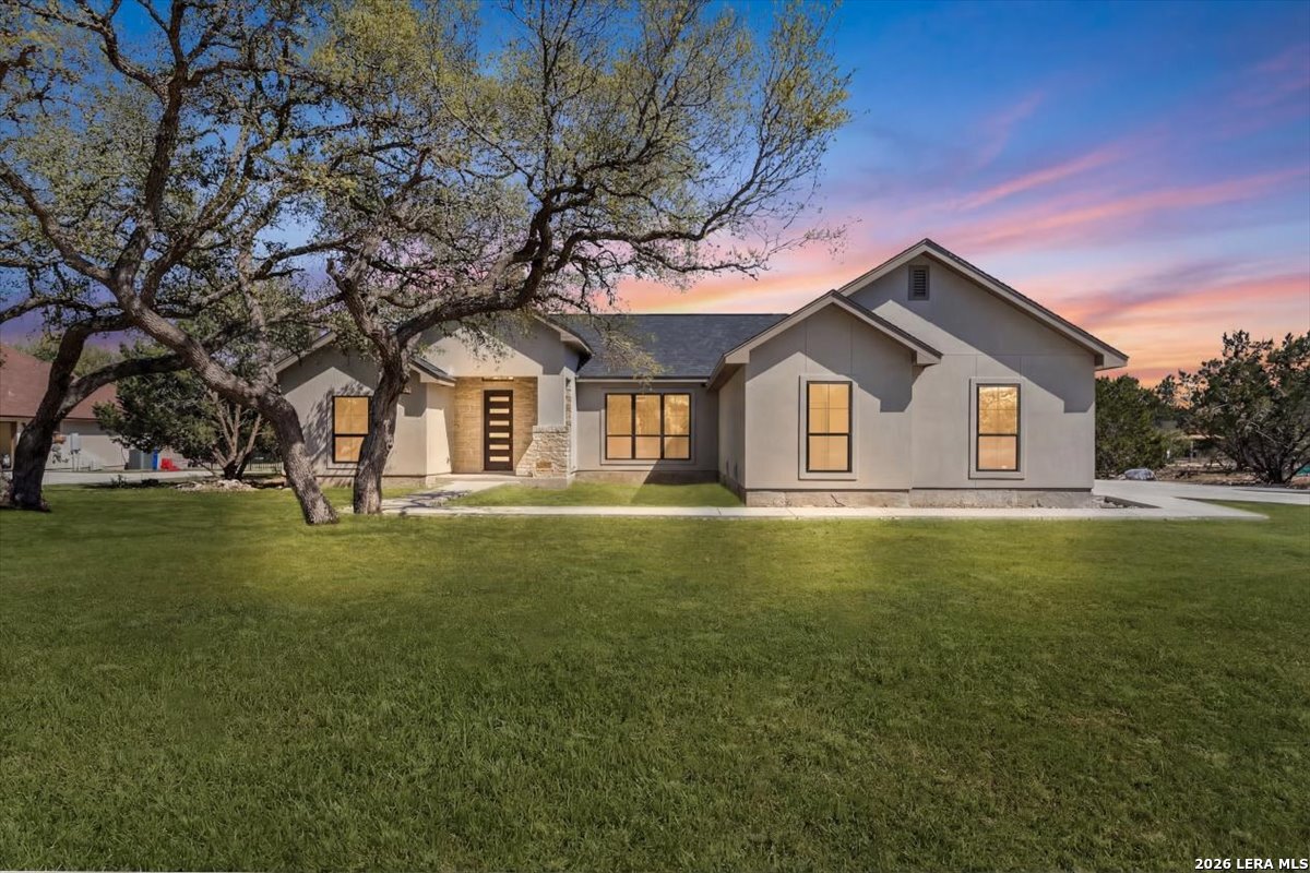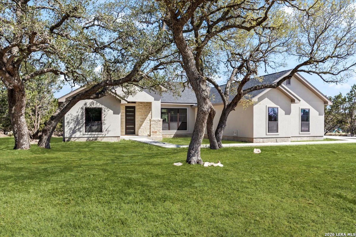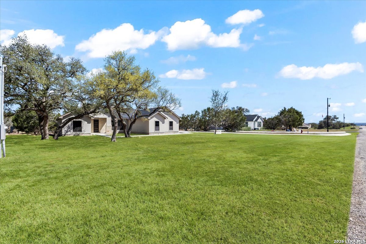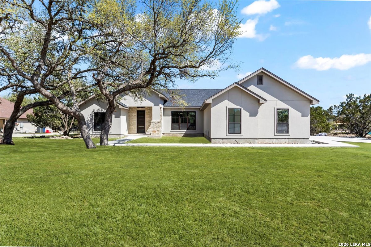 Living here in Mystic Shores has Big benefits! Brand new (under construction) 3-2-1/2, 1925/sf home in Beautiful Mystic Shores. Our home is perfectly placed on a expansive 1-acre lot full of large Oaks. Enjoy the beautiful Texas Hill Country views of the Texas Hill Country and enjoy all the extensive Mystic Shores Amenities.Our builder has meticulously chosen high end finishes and quality fixtures for this well thought out floor plan. Inside we have a large family room open onto the large island kitchen with custom cabinets galore. Huge walk-in pantry, adjacent mudroom/utility w half bath. Master features expansive walk-in closet and beautiful twin vanity master bath. Some of of the custom features include, plumbed for propane, wood burning fireplace, extra-large garage, hard surface floors throughout, energy efficient appliances, Misterio Quartz countertops, included 1-2-10 structural warranty, and much more. The Mystic Shores community offers a wide range of amenities, such as community swimming pools, Lake Park, Shoreline Park, community Center, RV/Boat Storage Facility, Nature Preserve/River Park, and North Park
