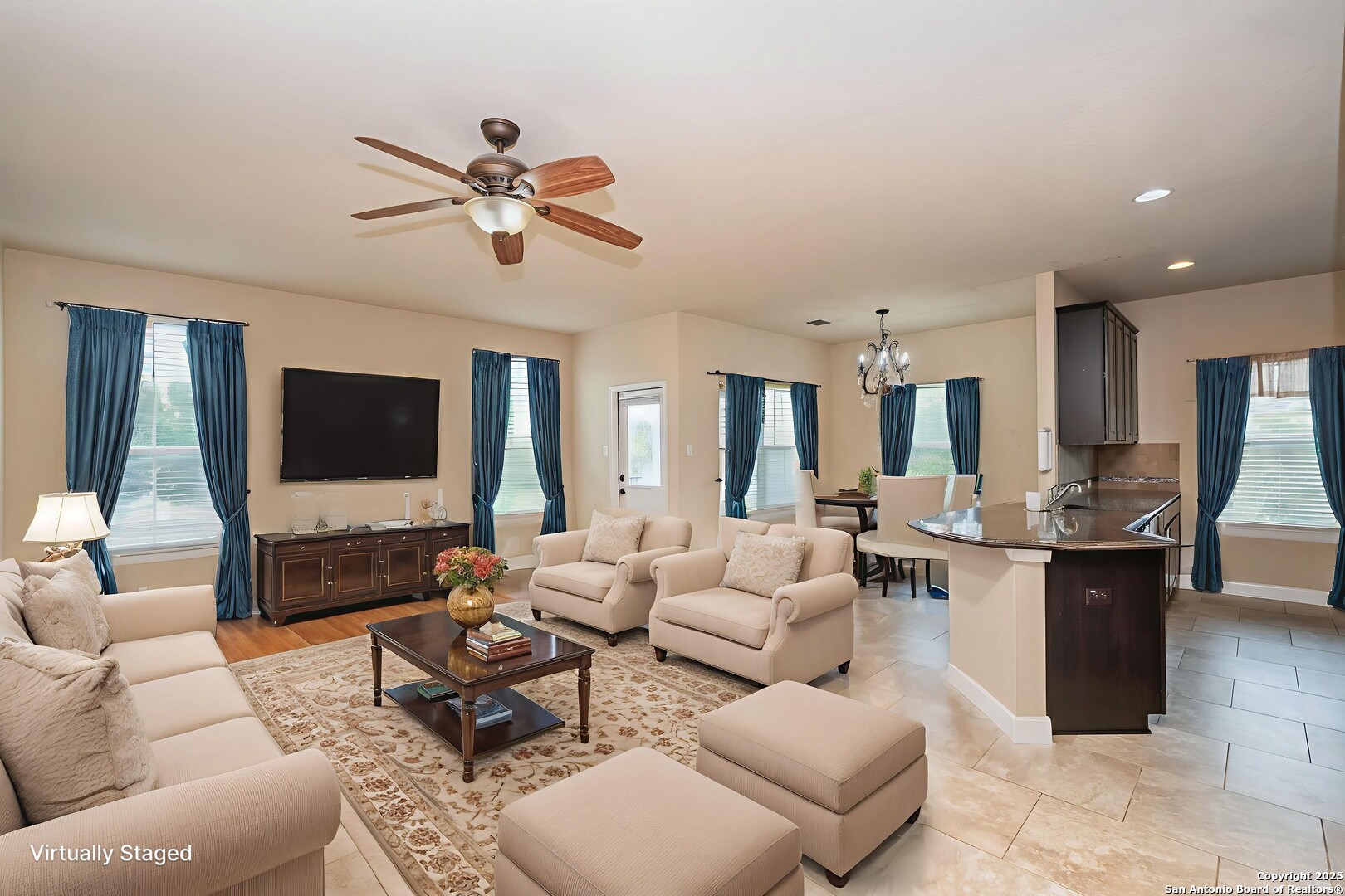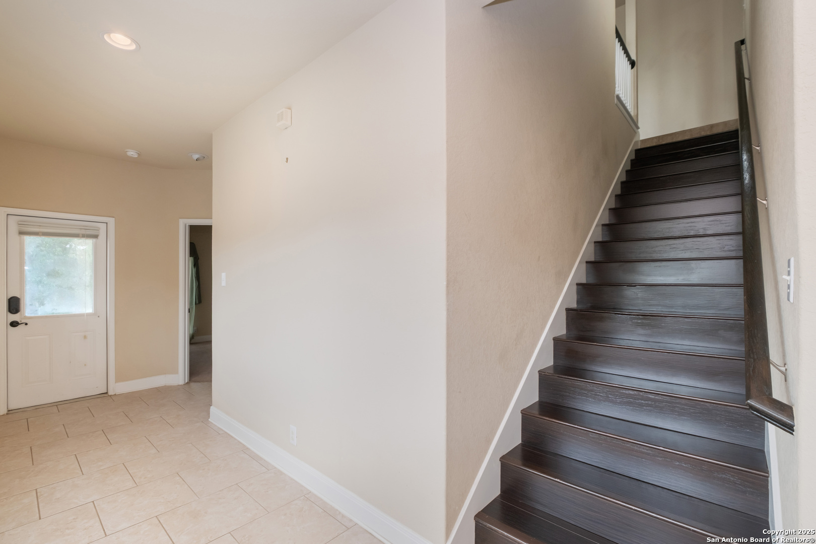 This home offers great bones and plenty of potential - bring your vision for updates in paint, flooring, and finishes to make it your own. Located in the desirable Heights of Stone Oak subdivision, this spacious 3-bedroom, 3-bath townhome offers 2,385 square feet of living space across three levels. Situated on a 0.07-acre lot at the end of a cul-de-sac, this home provides comfort, convenience, and privacy, with only one shared wall and a private fenced backyard. The main floor features the primary suite and an attached two-car garage for easy access. On the second floor, you'll find the main living area with an open-concept layout that includes the living, dining, and kitchen spaces. The kitchen features granite countertops, 11-foot ceilings, and plenty of natural light. Two additional bedrooms and a full bath are also located on this level. The third floor offers a spacious bonus room and another full bath, ideal for a guest suite, game room, or home office. This home is located in a gated community with great amenities, including a neighborhood pool, clubhouse, sports courts, and playground. Conveniently located just minutes from H-E-B, less than 5 miles from Blanco and Loop 1604, and under 4 miles from US-281. This property offers a smart layout, a prime location, and the perks of community living.