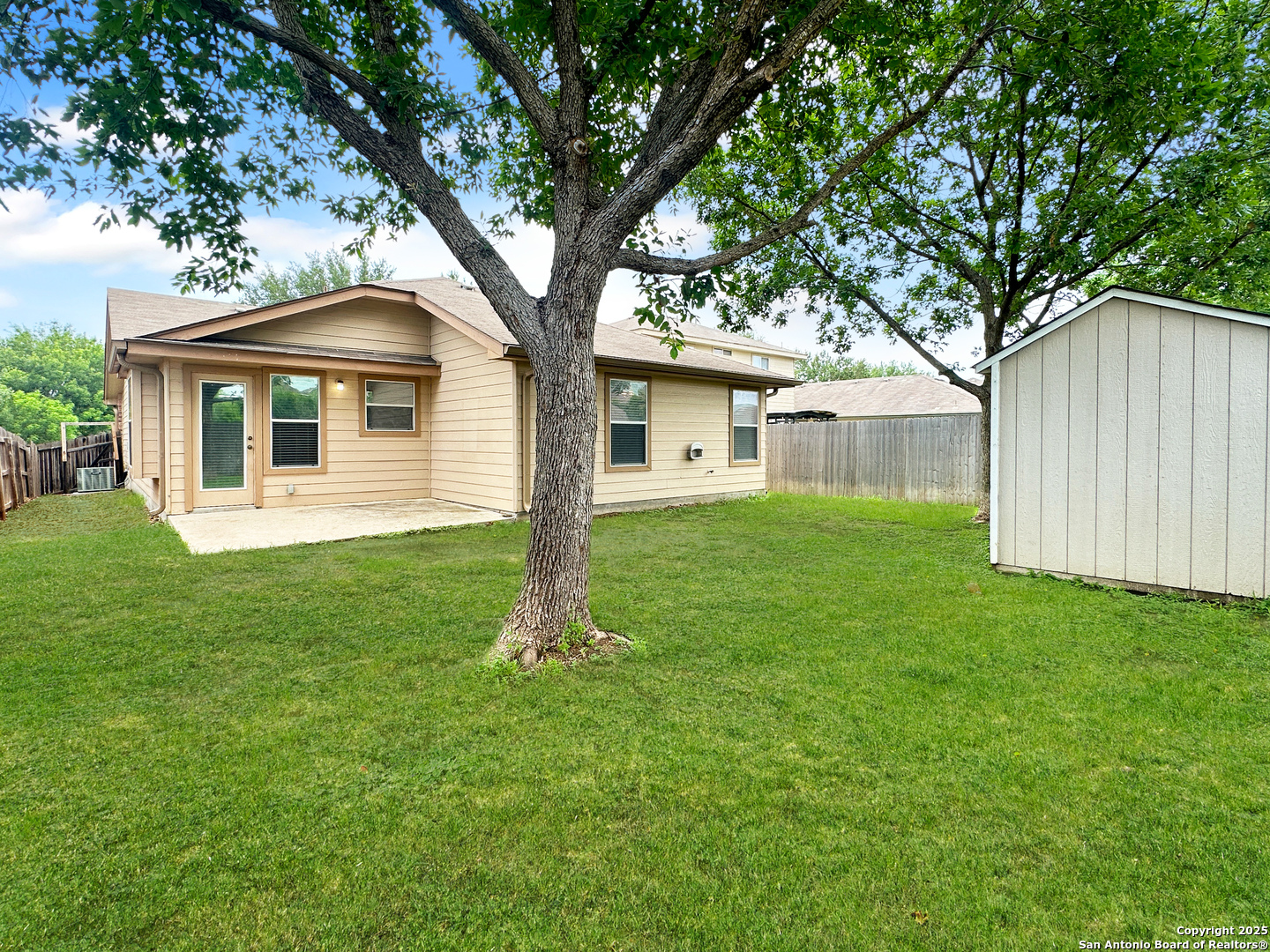 3/2/2 in Dove Crossing. Flooring is ceramic tile and luxury vinyl plank. No Carpet. Kitchen Features: stainless steel appliances, dishwasher, oven/stove range electric, built in microwave, island, breakfast bar, and a walk in pantry. Other Features: ceiling fans, garden tub, walk in closets, interior washer/dryer connections, garage door opener with keypad entry, storage shed, back patio, and a fenced in yard. NBISD. Neighborhood Amenities Are: Pool, Walking Trail, BBQ Pits and a Basketball Court. 2 Pets Max. 50 lbs Max. Cats must be spayed or neutered. Initial lease to end May or June, 2026.