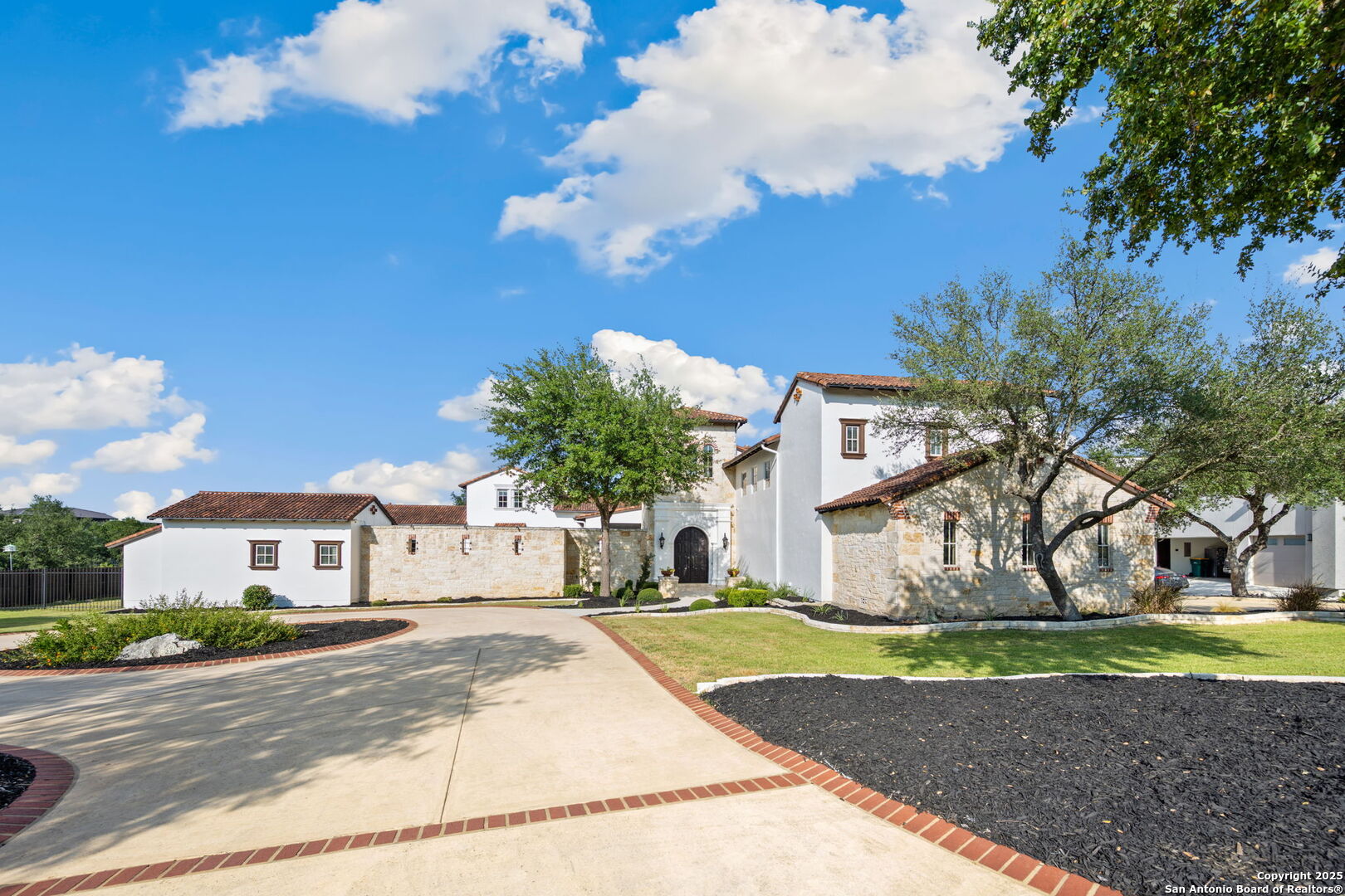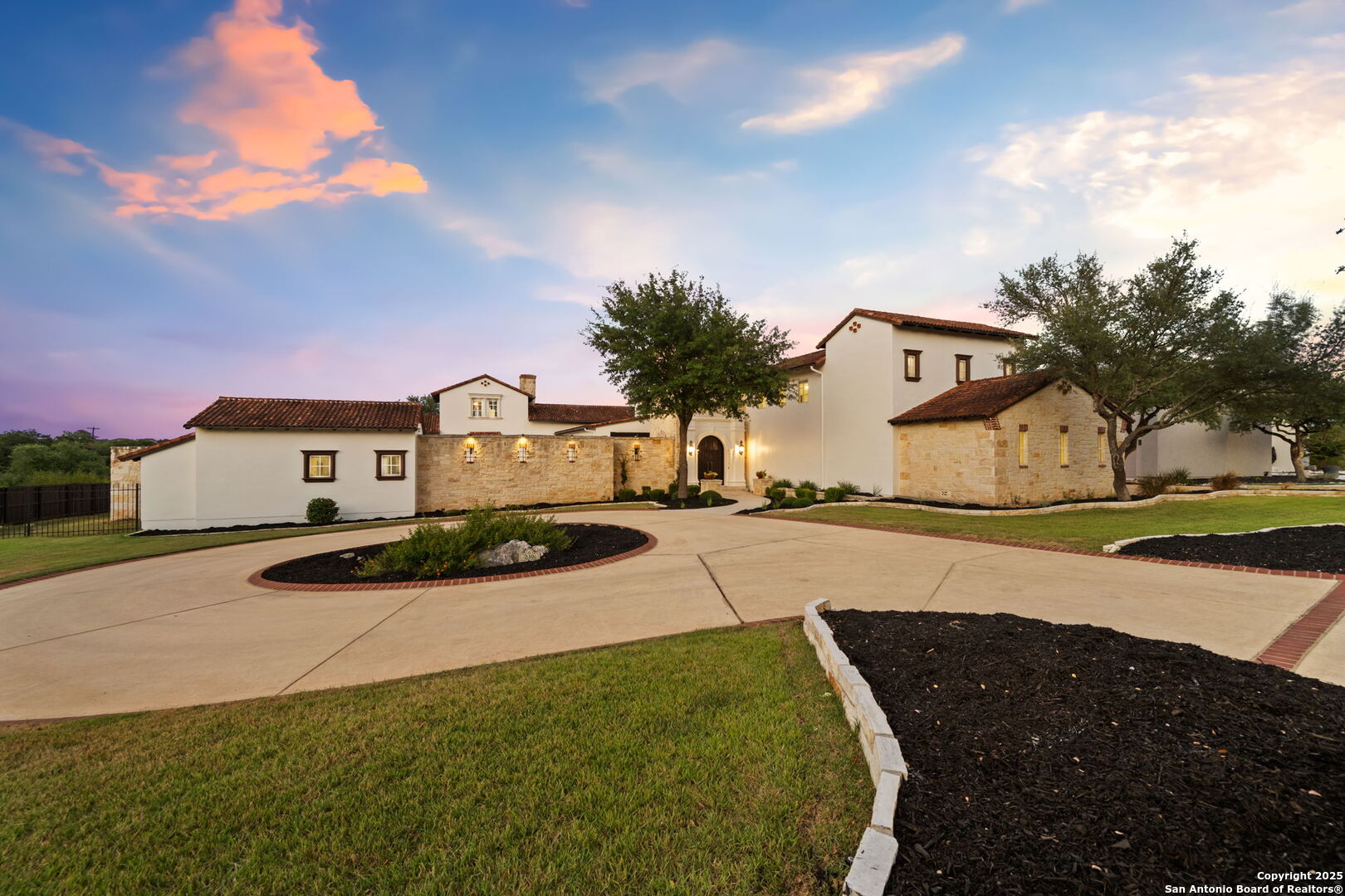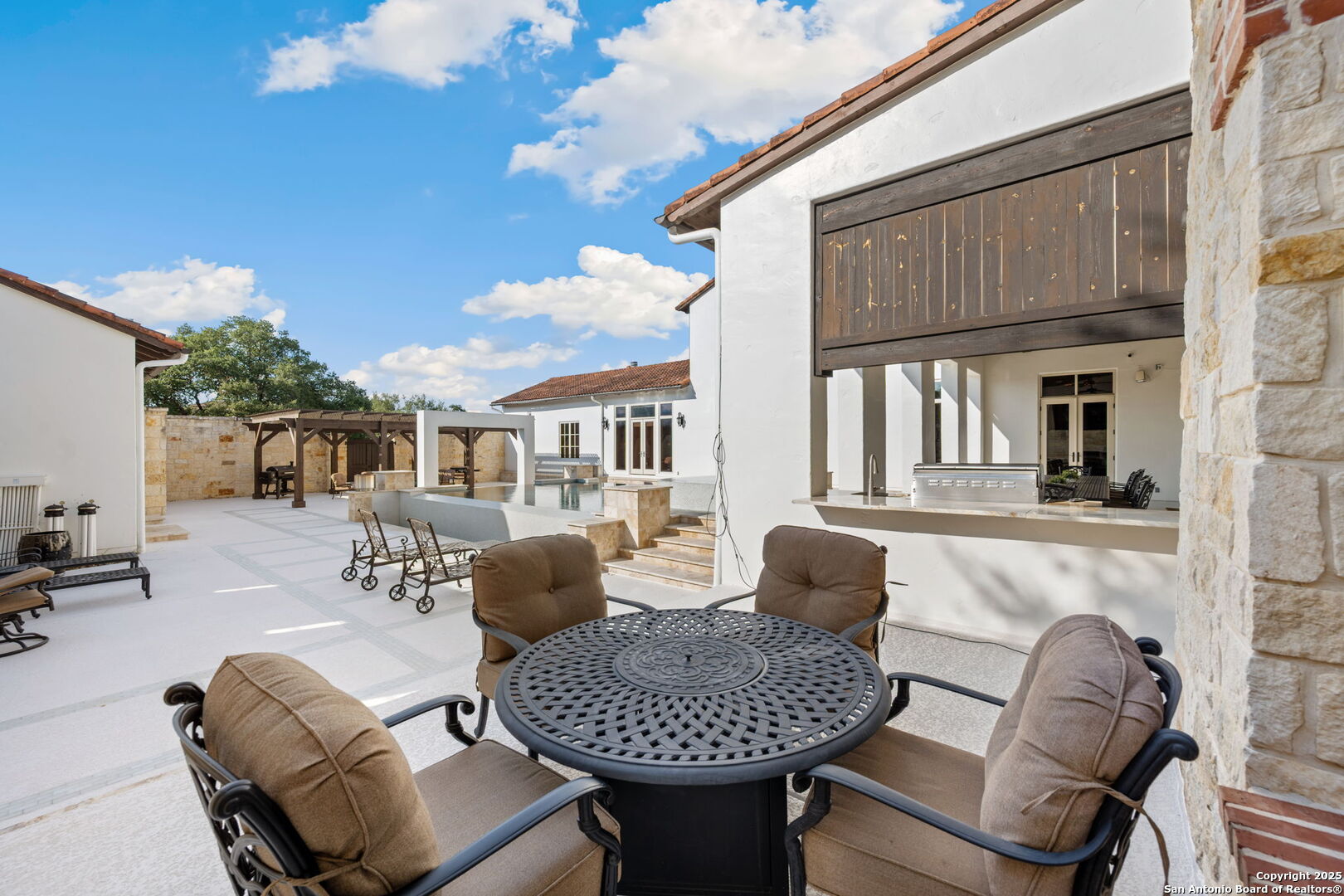 Set on nearly 1.5 acres within the guard-gated community of Waterford Heights, this magnificent residence offers nearly 8,000 square feet of timeless design and luxurious living. From the moment you arrive, the circular drive and stone facade set the tone for a home that is as impressive as it is welcoming. The centerpiece of the home is the stunning courtyard featuring a showstopping infinity edge pool, designed as a private oasis surrounded by the residence (Seriously you have not seen a pool like this before!). Several elegant water features create a serene ambiance, while multiple seating areas offer the perfect backdrop for entertaining or quiet relaxation. With the addition of a fully equipped outdoor kitchen and a dedicated sports court, the backyard blends luxury and lifestyle seamlessly. From the courtyard, you'll also find access to the detached casita, complete with a full bath and walk in closet. This additional living space is ideal for in-laws, guests, or staff quarters, providing both comfort and privacy. The heart of the home is the chef's kitchen, anchored by a 6-burner Wolf gas range and griddle, dual islands, Sub Zero fridge, Wolf warming drawer, and a butler's kitchen with additional prep space and dishwasher, perfect for entertaining at any scale. An enclosed sunroom with its own outdoor fireplace offers a seamless transition from indoor to outdoor living. Designed for both comfort and elegance, the primary suite is split from the secondary bedrooms and offers direct access to the courtyard. The spa-like bathroom includes dual vanities, dual water closets, a soaking tub with a fireplace, walk-in shower and a generously sized walk-in closet with custom built-ins providing exceptional organization and storage. Located within the primary suite is an additional flex space perfect for an at home gym. Directly outside the primary suite you'll find the private office with direct access to the pool and courtyard area. Upstairs, a spacious gameroom, media room, and three additional bedrooms with en suite baths ensure everyone has their own space. With 5 bedrooms, 5.5 baths, a 3-car garage pre-wired for charging electric vehicles, and an array of thoughtfully designed living spaces, this home balances grand scale with intimate charm. This estate is not just a home, it's a lifestyle, blending privacy, luxury, and community in one of San Antonio's most prestigious neighborhoods. A truly unique property in the heart of Stone Oak that has it all.