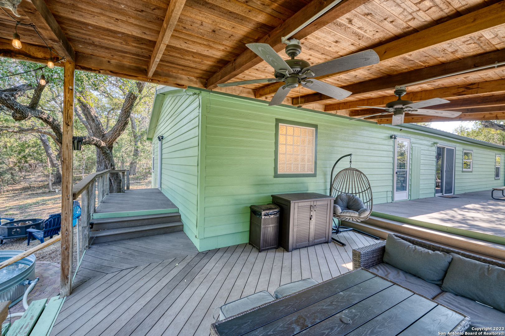 This lovely 3BD/2BA Palm Harbor home sits on an unrestricted 1 acre lot in Concan. It is extremely well-maintained, spacious, and open with plenty of storage throughout. Newer flooring graces the living areas and leads to the large kitchen and breakfast area. Over 1,000 sq. ft. of composite decking runs along the back of the house and overlooks the creek, providing additional living and entertainment space. A patio area under the oaks features a cowboy pool and firepit. Play washers on the grassy lawn or sit beneath the beautiful arbor then stroll down to the unique greenhouse and gardening area. Current owners have the property set up for short-term rentals and are selling the property furnished and ready to rent!