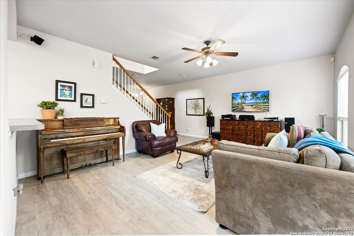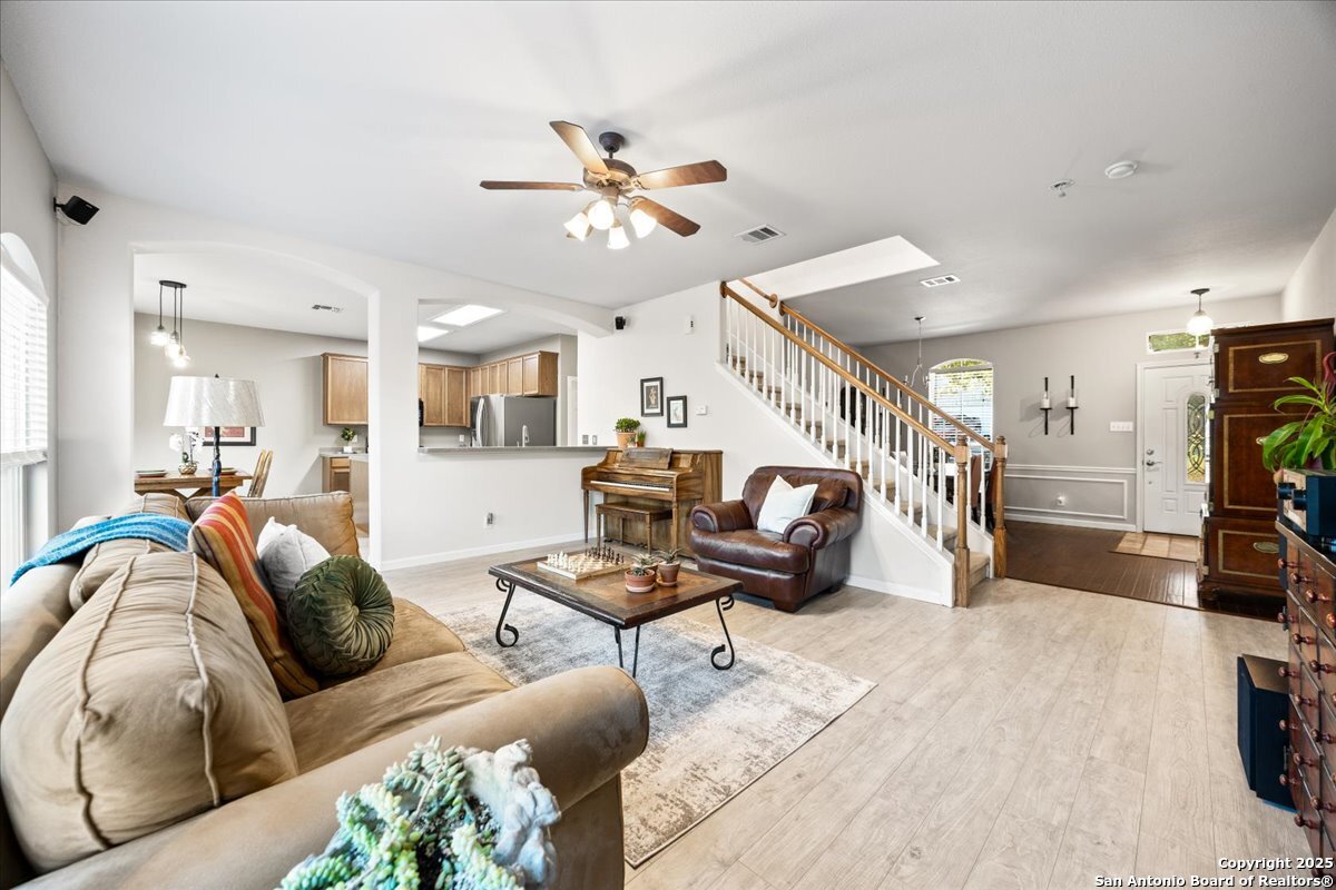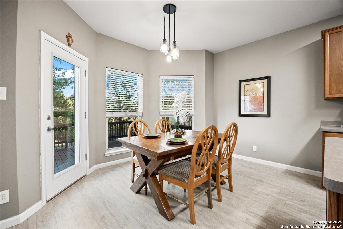 Beautiful 3-bedroom, 2.5-bath home located in a highly sought-after neighborhood! Enjoy an open floorplan filled with natural light, separate dining room for easy entertaining, and a spacious primary suite for ultimate comfort. Step outside to an oversized deck backing up to a peaceful greenbelt, perfect for morning coffee while enjoying the lush tree views. Walking distance to top-rated schools and just minutes from Bulverde Rd. and Evans Rd. for easy commuting and convenient shopping and dining. A wonderful blend of comfort, style, and location!