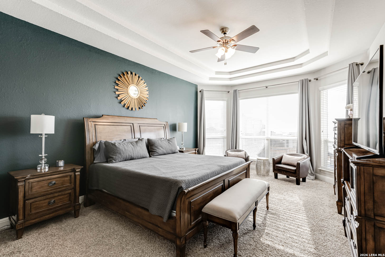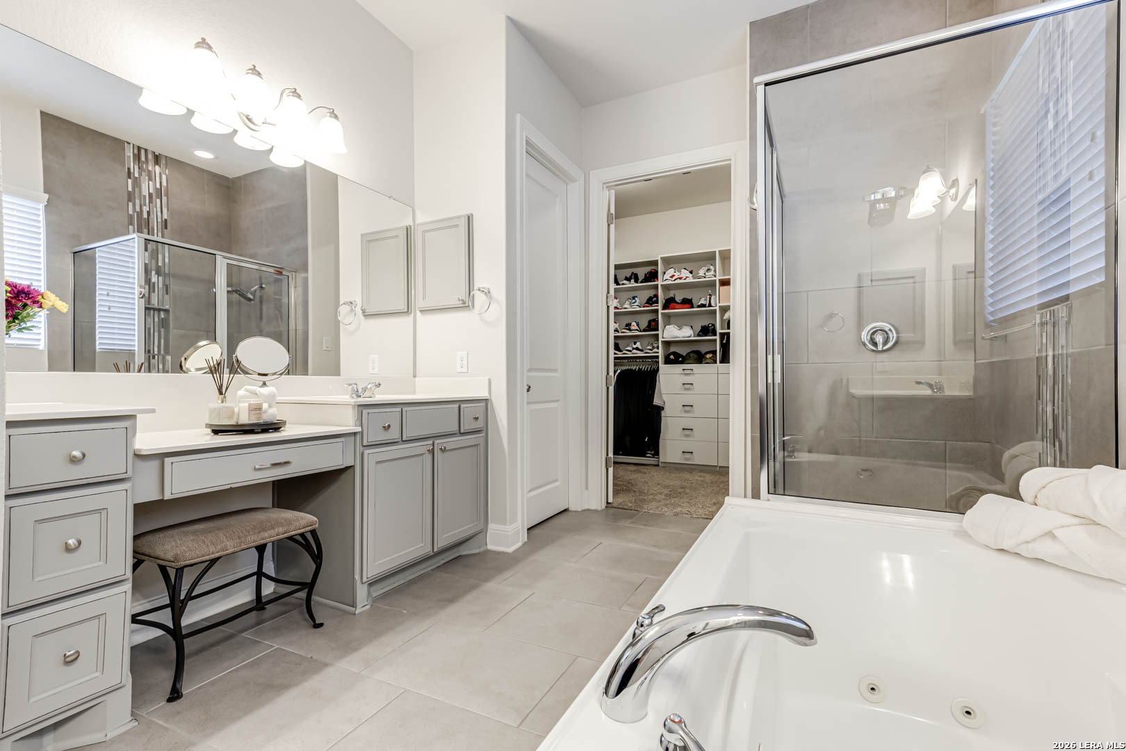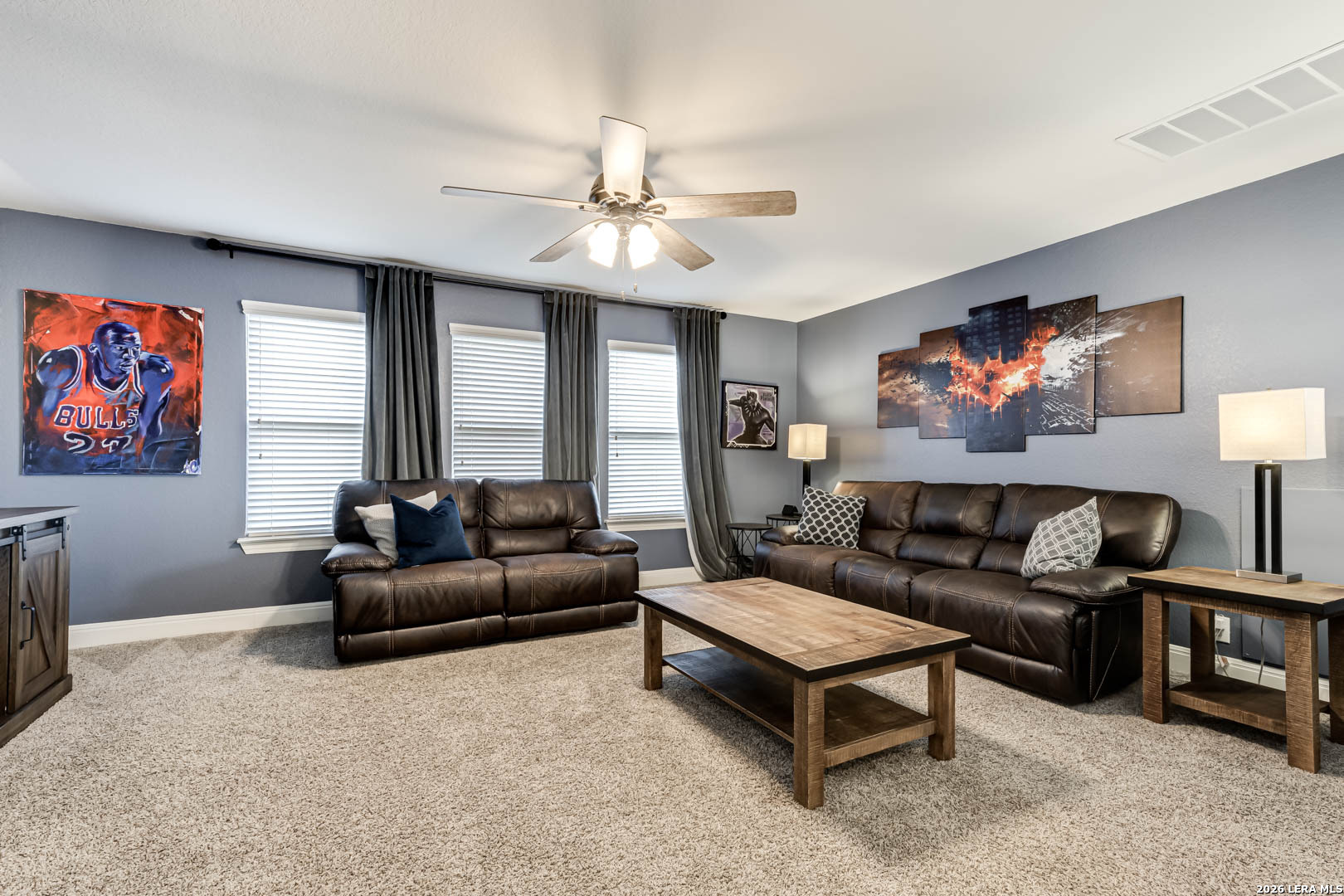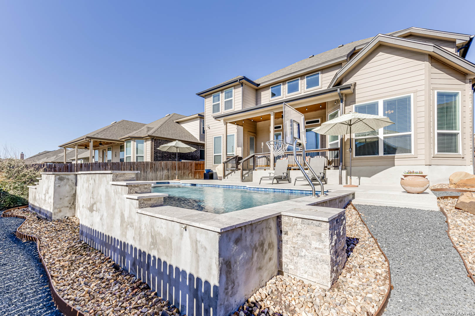 WELCOME HOME! This amazing 5-bedroom home has only had one owner, is located in beautiful Cibolo Tx. and shows like a model home! Great attention to detail throughout. There are 3 eating areas (including the breakfast bar), upgraded kitchen cabinets/counters even a butler's pantry that can easily be your next coffee bar. The open floor plan with soaring ceiling, allows tons of natural light to come in. The primary bedroom is located DOWNSTAIRS has a huge bathroom with double vanities, separate tub/shower and the custom closet (Closets by Design) really takes it to the next level...speaking of next level-- the upstairs loft can easily be a 2nd living area/gameroom/office; lots of possibilities! 4 spacious bedrooms upstairs. You may never want to leave home, why would you with 3336 sq. ft. AND A 15X30 SWIMMING POOL. The backyard is beautifully maintained; Xeriscaped and even has a dog run! No need to go to the HOA amenity center, unless you want to enjoy the community: Volleyball/basketball/ Tennis Courts Playground, park and have a choice of using another pool! Wow, what's not to love? A list of upgrades and features for this beauty, is readily available. Schedule your appt. today!