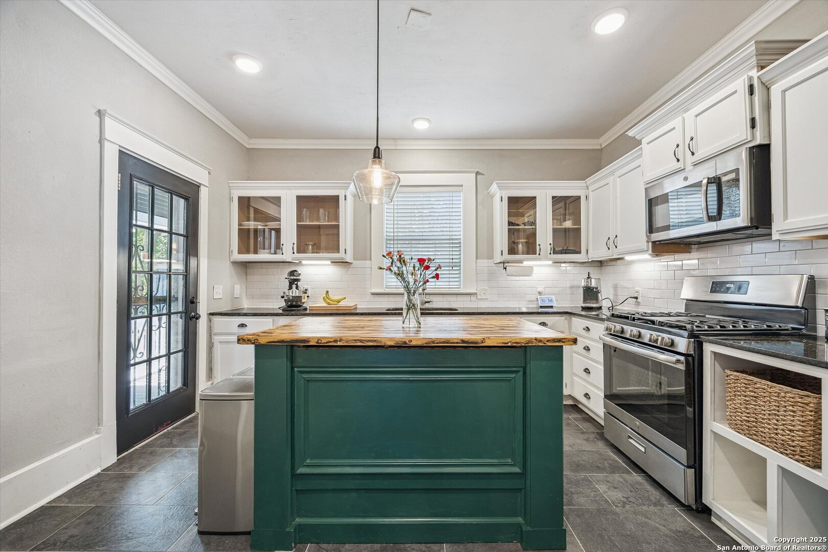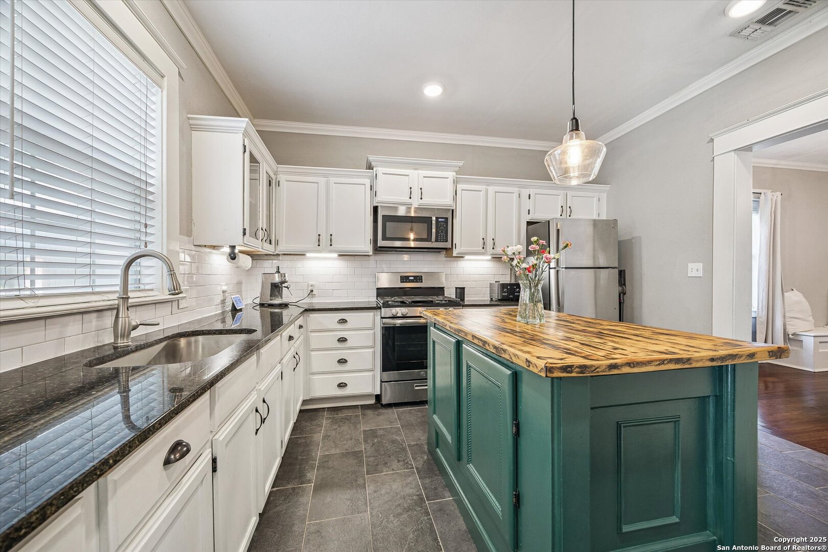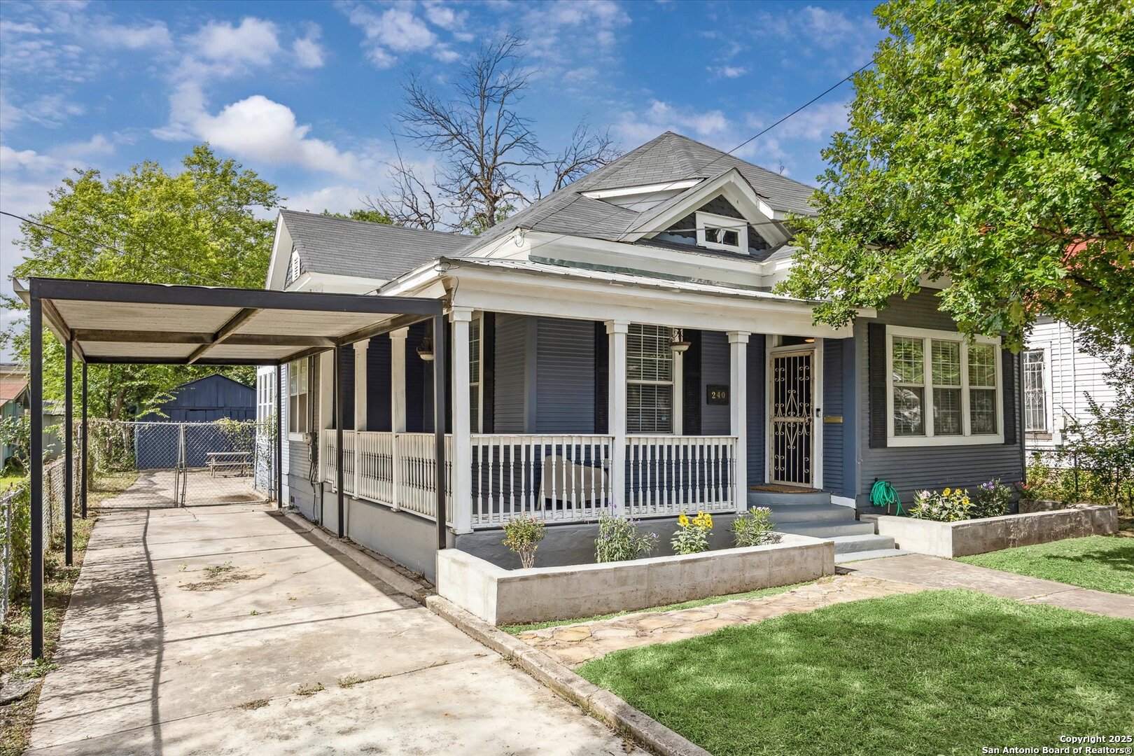 Welcome to 240 Belmont, a beautifully remodeled 1938 home that perfectly blends classic charm with stylish modern updates. This 2-bedroom, 2-bath beauty is bursting with character and thoughtful touches that make it truly one of a kind. Step inside and be greeted by a bright, open living space with timeless architectural details and a fresh, modern aesthetic. The kitchen is a showstopper-featuring gleaming granite countertops, a stylish tile backsplash, and a custom wood island that invites long brunches, morning coffee chats, and evenings of entertaining. Enjoy your daily reads or sip your favorite drink on the cozy covered front porch, a perfect extension of the home's charm. The spacious backyard is shaded by mature trees-ideal for weekend BBQs, lounging in the sun, or hosting gatherings with friends and family. A long driveway and carport offer ample parking when guests stop by. Major system updates give peace of mind, including a full electrical rewire, a new HVAC system installed in April 2020, and a new roof in 2017. Location is unbeatable. Just minutes from Downtown San Antonio, Hemisfair Park, and the Alamodome-perfect for catching concerts, festivals, and major events. Are you a Spurs fan? You'll love being a quick drive from the Frost Bank Center, making game nights a breeze. Whether you're exploring the River Walk, cheering on your team, or enjoying the city's vibrant culture, you're always close to the action. This home is a rare find-beautifully maintained, move-in ready, and priced to sell. Don't miss your chance to own a piece of San Antonio history in a prime location!
