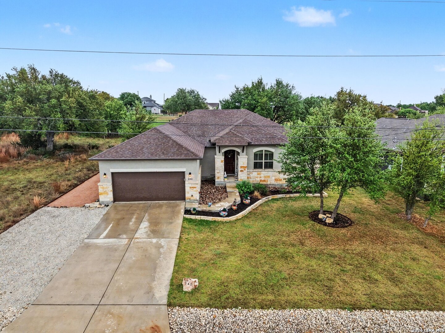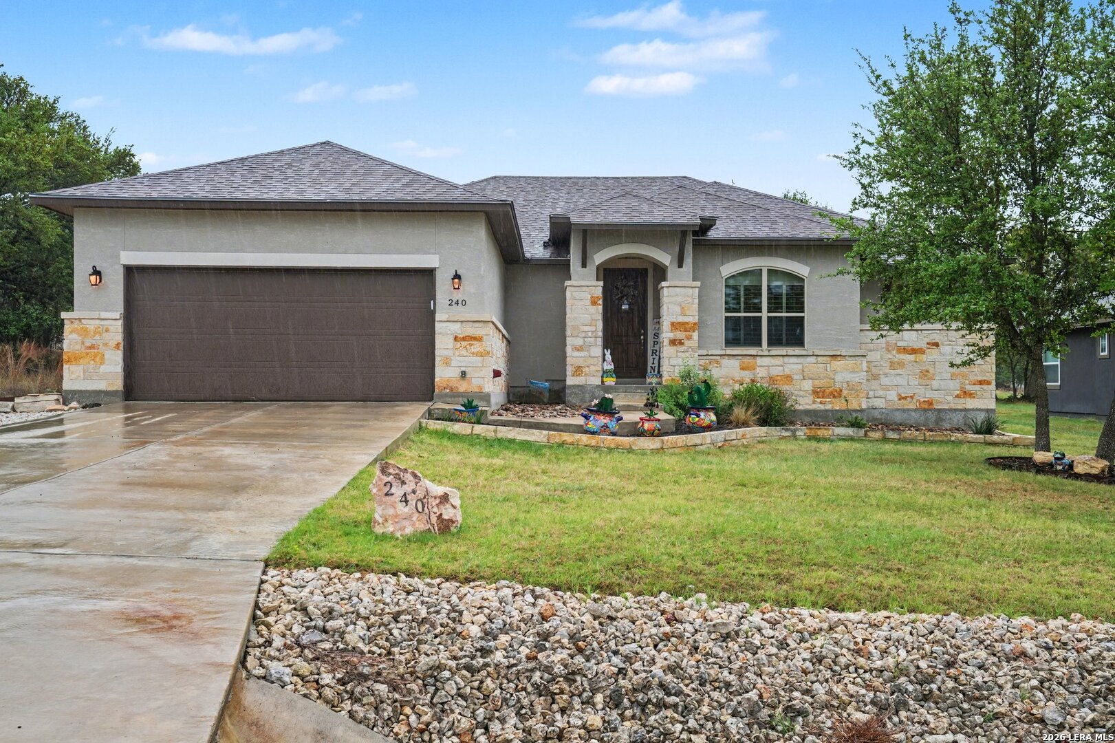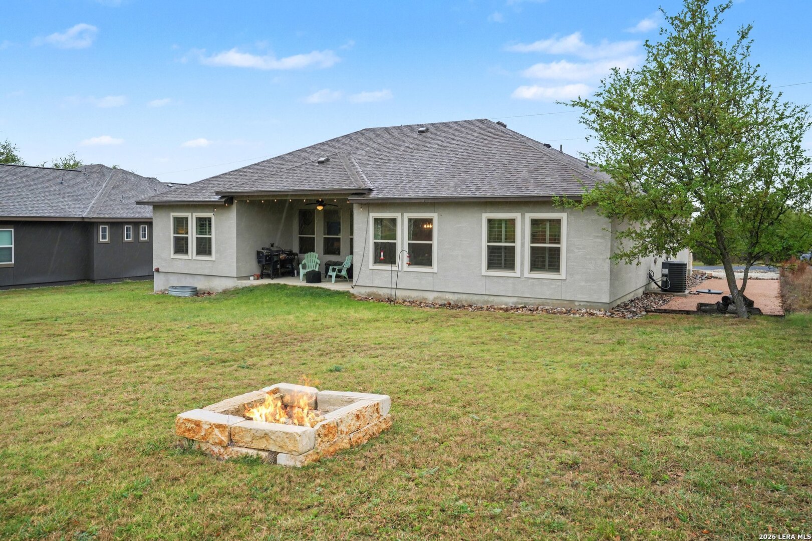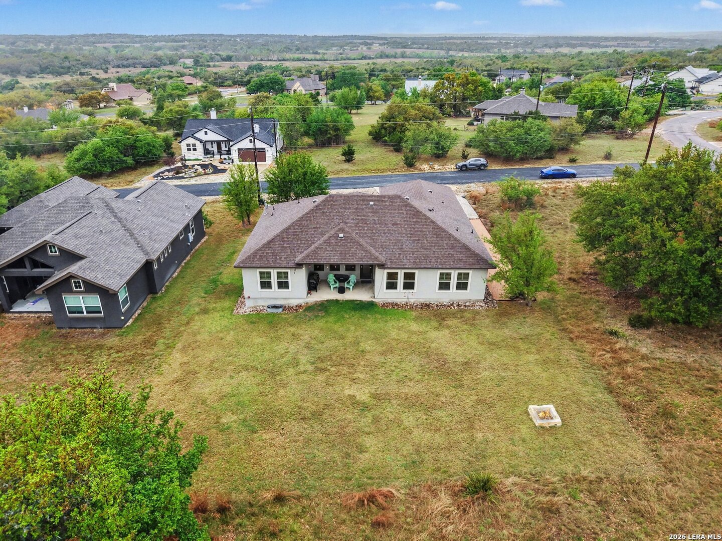 Refined Golf Course Living in Prestigious Rockin' J Ranch Welcome to an exceptional residence gracefully positioned along the 14th hole of the acclaimed Vaaler Creek Golf Course. Click the Virtual Tour link to experience the immersive 3D walkthrough. Built in 2019 and meticulously maintained by its original owners, this thoughtfully designed 4-bedroom, 2.5-bath home blends timeless elegance with modern comfort. The open-concept design is enhanced by soaring ceilings, expansive windows, and an abundance of natural light, creating an inviting yet sophisticated atmosphere throughout. At the heart of the home, the kitchen showcases granite countertops and effortless connectivity to the main living area-perfectly suited for both intimate gatherings and elevated entertaining. The primary suite serves as a private retreat, featuring refined recessed ceilings, an oversized walk-in shower, and dual walk-in closets designed for both function and luxury. Step outside to a covered patio where sweeping golf course views unfold-overlooking the tee box, fairway, and green from your elevated vantage point. The outdoor setting offers a rare sense of tranquility and openness, ideal for quiet evenings or hosting guests in style. Additional highlights include wood-look flooring throughout, curated finishes, a 2-car garage with extended depth for storage, and a fully fenced, professionally landscaped yard. Residents of Rockin' J Ranch enjoy a lifestyle of distinction with access to resort-style amenities including golf, a pool, fishing pier, scenic trails, parks, and clubhouse-all within close proximity to Blanco and a convenient drive to Austin and San Antonio. Select buyers may also benefit from exclusive financing incentives, including potential discounted rate options and no lender fee future refinancing (see Agent Remarks for details). Homes of this caliber, setting, and presentation are rarely available-schedule your private showing today.