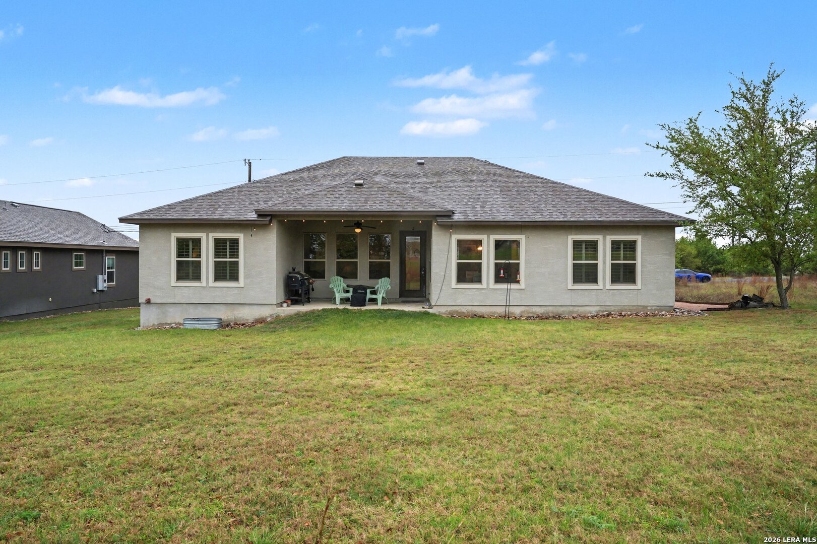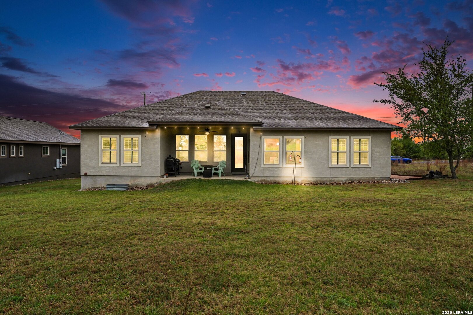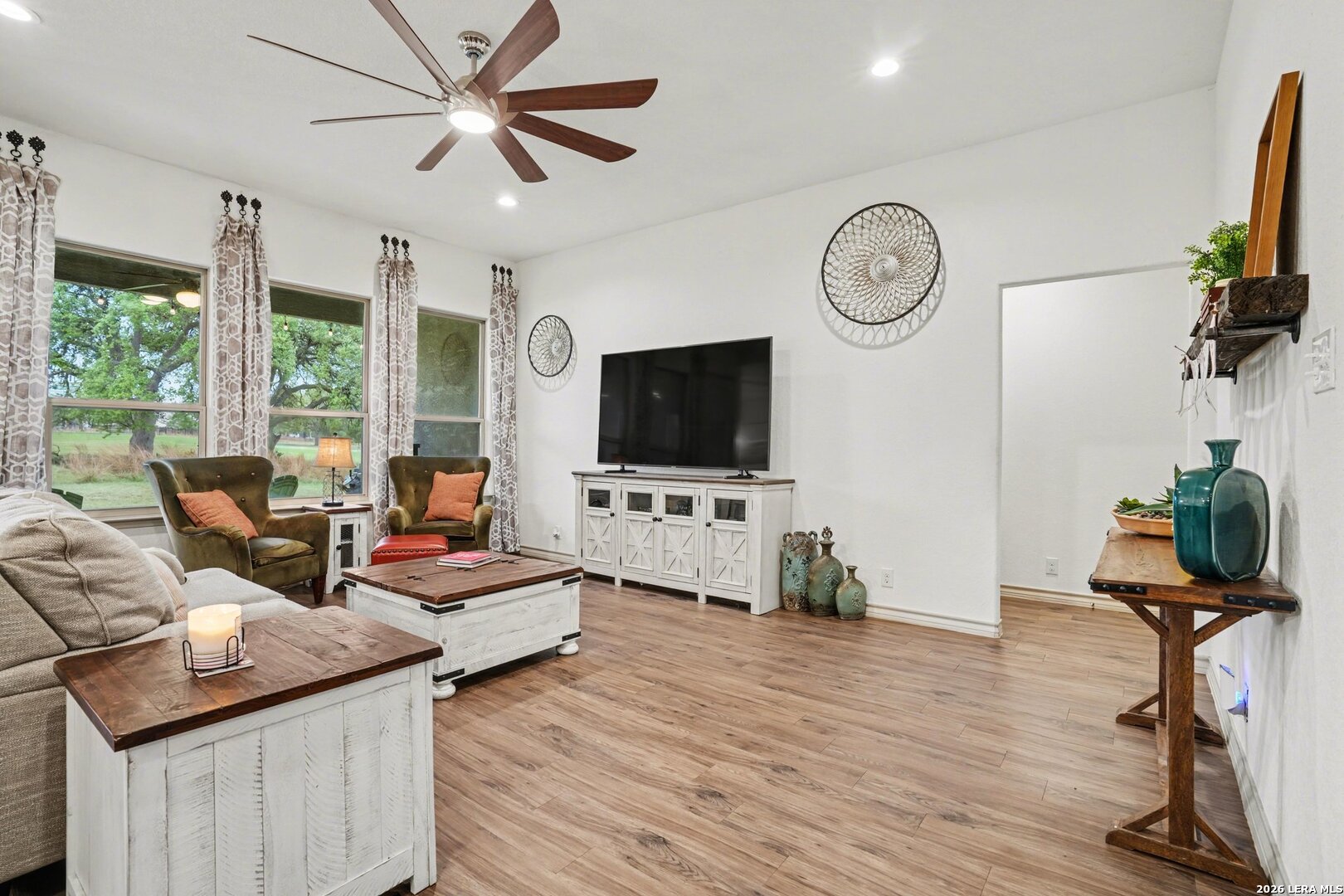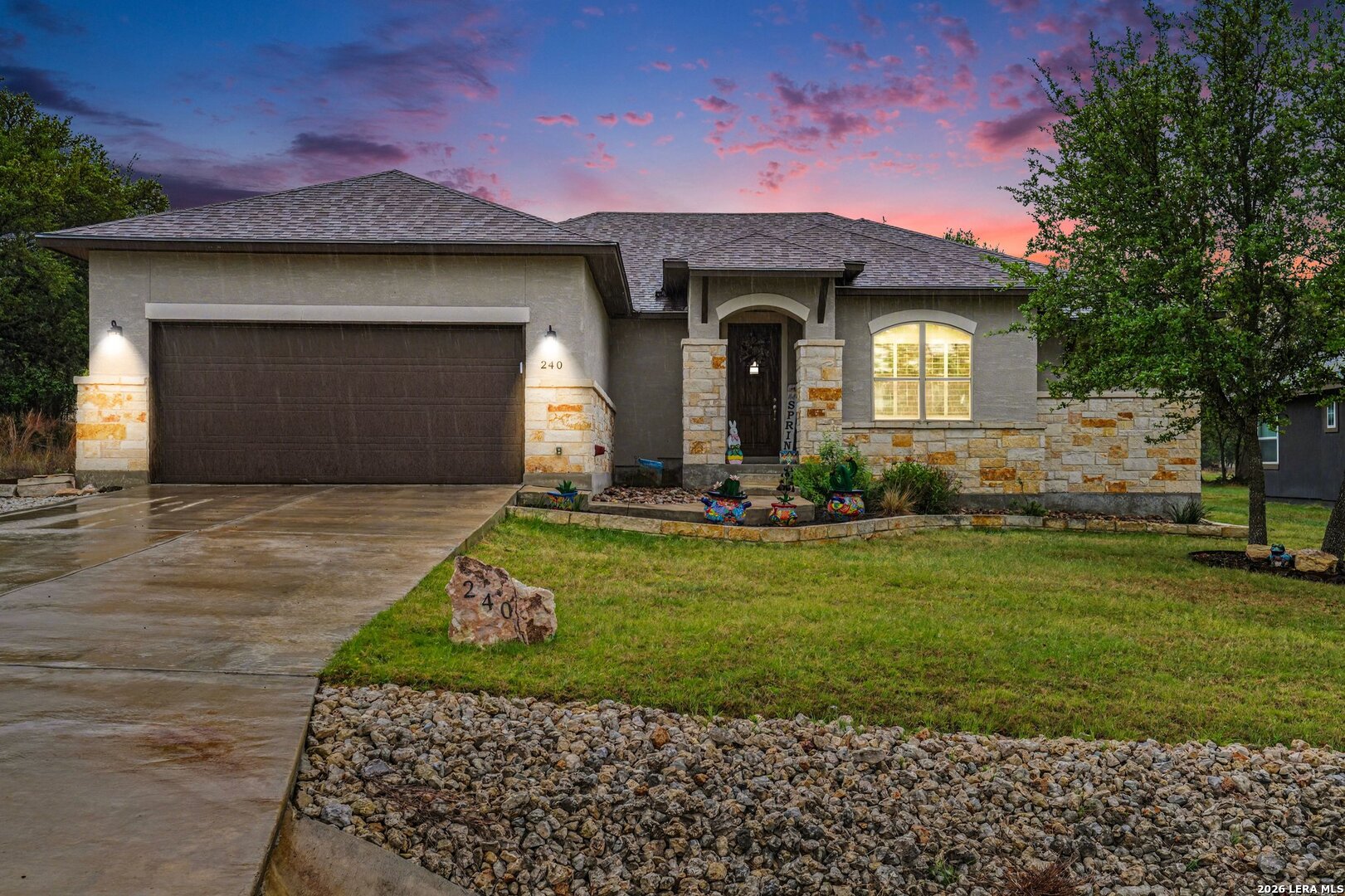 Refined Golf Course Living in Prestigious Rockin' J Ranch Welcome to an exceptional residence gracefully positioned along the 14th hole of the acclaimed Vaaler Creek Golf Course. Click the Virtual Tour link to experience the immersive 3D walkthrough. Built in 2019 and meticulously maintained by its original owners, this thoughtfully designed 4-bedroom, 2.5-bath home blends timeless elegance with modern comfort. The open-concept design is enhanced by soaring ceilings, expansive windows, and an abundance of natural light, creating an inviting yet sophisticated atmosphere throughout. At the heart of the home, the kitchen showcases granite countertops and effortless connectivity to the main living area-perfectly suited for both intimate gatherings and elevated entertaining. The primary suite serves as a private retreat, featuring refined recessed ceilings, an oversized walk-in shower, and dual walk-in closets designed for both function and luxury. Step outside to a covered patio where sweeping golf course views unfold-overlooking the tee box, fairway, and green from your elevated vantage point. The outdoor setting offers a rare sense of tranquility and openness, ideal for quiet evenings or hosting guests in style. Additional highlights include wood-look flooring throughout, curated finishes, a 2-car garage with extended depth for storage, and a fully fenced, professionally landscaped yard. Residents of Rockin' J Ranch enjoy a lifestyle of distinction with access to resort-style amenities including golf, a pool, fishing pier, scenic trails, parks, and clubhouse-all within close proximity to Blanco and a convenient drive to Austin and San Antonio. Select buyers may also benefit from exclusive financing incentives, including potential discounted rate options and no lender fee future refinancing (see Agent Remarks for details). Homes of this caliber, setting, and presentation are rarely available-schedule your private showing today.