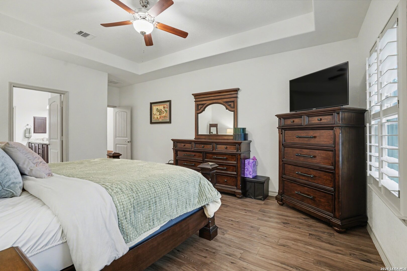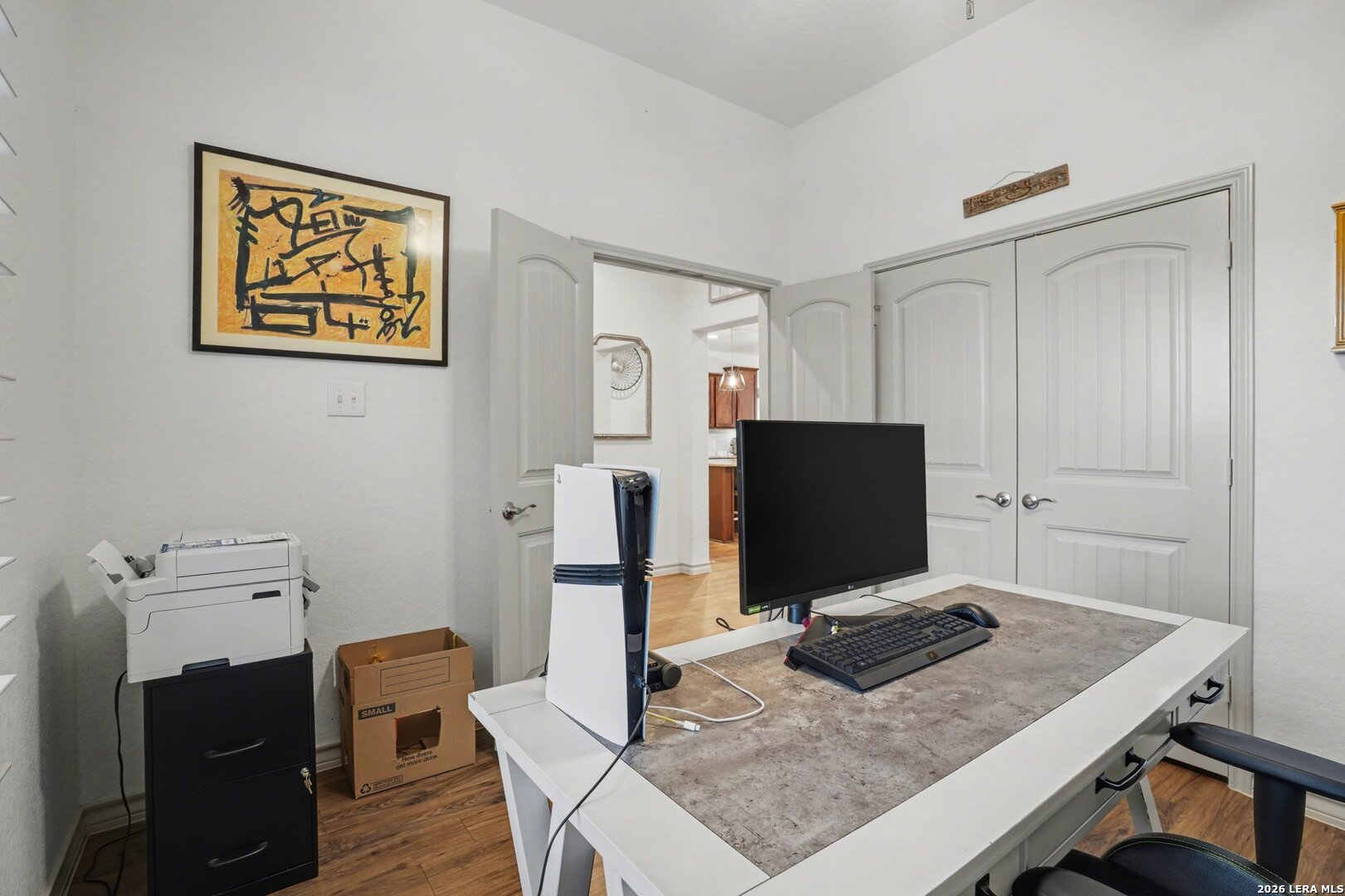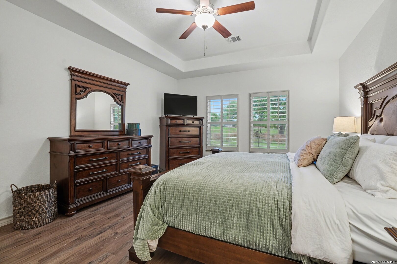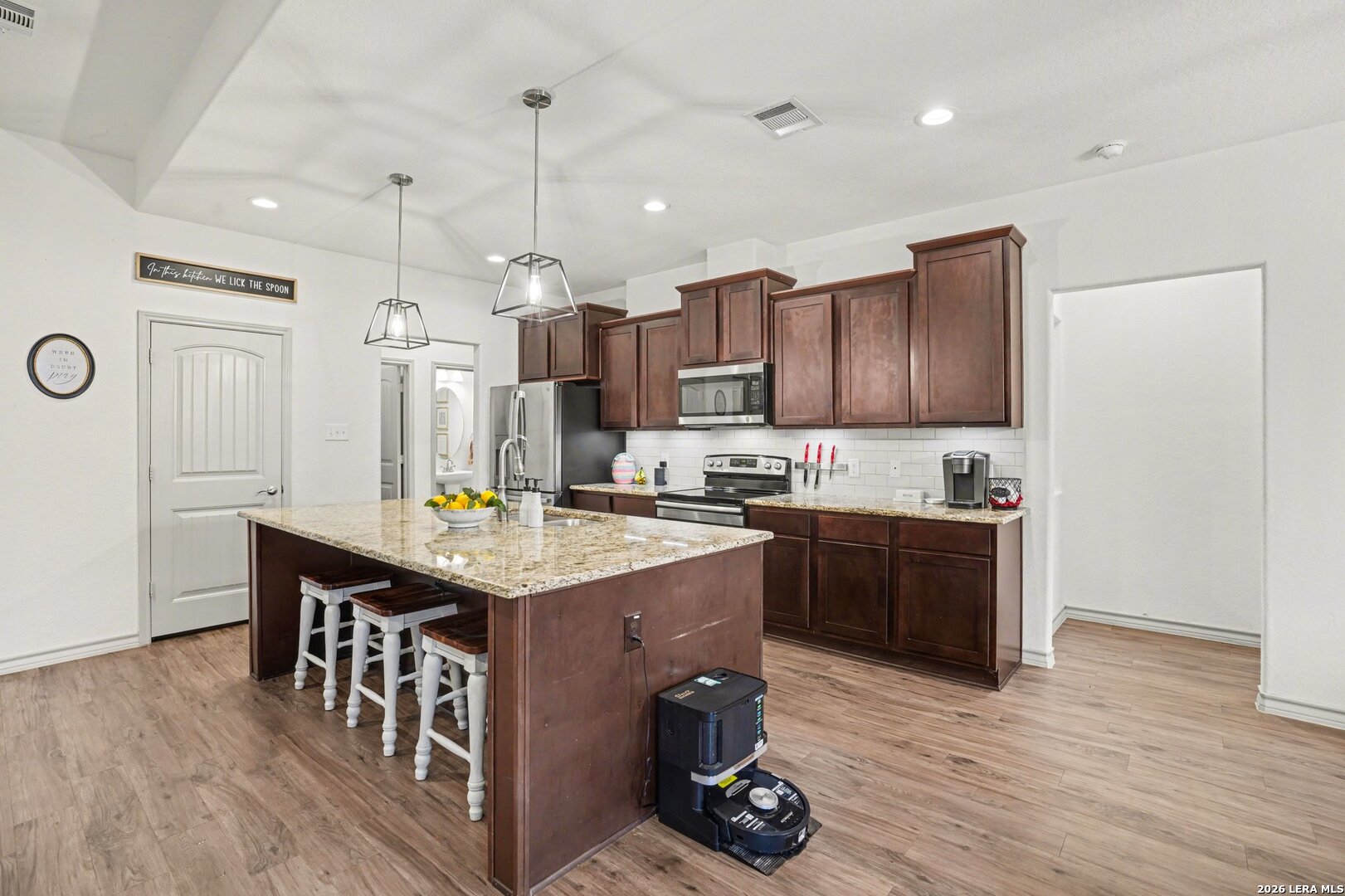 Refined Golf Course Living in Prestigious Rockin' J Ranch Welcome to an exceptional residence gracefully positioned along the 14th hole of the acclaimed Vaaler Creek Golf Course. Click the Virtual Tour link to experience the immersive 3D walkthrough. Built in 2019 and meticulously maintained by its original owners, this thoughtfully designed 4-bedroom, 2.5-bath home blends timeless elegance with modern comfort. The open-concept design is enhanced by soaring ceilings, expansive windows, and an abundance of natural light, creating an inviting yet sophisticated atmosphere throughout. At the heart of the home, the kitchen showcases granite countertops and effortless connectivity to the main living area-perfectly suited for both intimate gatherings and elevated entertaining. The primary suite serves as a private retreat, featuring refined recessed ceilings, an oversized walk-in shower, and dual walk-in closets designed for both function and luxury. Step outside to a covered patio where sweeping golf course views unfold-overlooking the tee box, fairway, and green from your elevated vantage point. The outdoor setting offers a rare sense of tranquility and openness, ideal for quiet evenings or hosting guests in style. Additional highlights include wood-look flooring throughout, curated finishes, a 2-car garage with extended depth for storage, and a fully fenced, professionally landscaped yard. Residents of Rockin' J Ranch enjoy a lifestyle of distinction with access to resort-style amenities including golf, a pool, fishing pier, scenic trails, parks, and clubhouse-all within close proximity to Blanco and a convenient drive to Austin and San Antonio. Select buyers may also benefit from exclusive financing incentives, including potential discounted rate options and no lender fee future refinancing (see Agent Remarks for details). Homes of this caliber, setting, and presentation are rarely available-schedule your private showing today.
