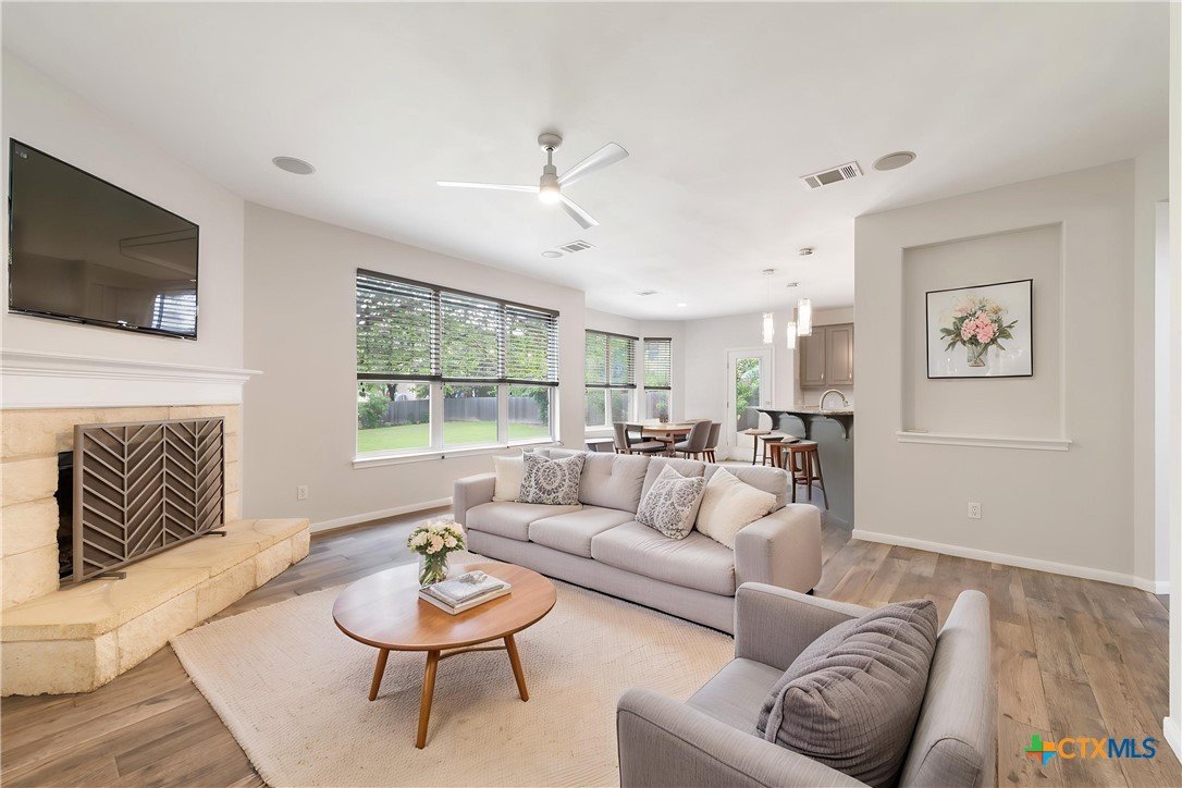 Located in the desirable Ranch at Deer Creek community, this move-in ready Cedar Park home offers an ideal blend of space, comfort, and everyday convenience. Residents enjoy access to neighborhood amenities including community pools, parks, playgrounds, walking trails, and green spaces that enhance the overall lifestyle. The location provides easy access to major roadways such as US-183 and FM 620, making commuting into Austin and surrounding areas seamless. Nearby, you’ll find a variety of shopping, dining, and entertainment options including Lakeline Mall, along with local restaurants, retail centers, and parks like Elizabeth Milburn Park. Austin-Bergstrom International Airport is also within a reasonable drive for travel needs. Inside, this 4-bedroom, 3 full bathroom home features a functional layout with multiple living and dining areas designed for both everyday living and entertaining. Wood-look tile flooring flows throughout the home, adding a clean, modern feel with easy maintenance. The eat-in kitchen includes a breakfast bar and pantry, opening seamlessly to the main living spaces. A guest bedroom and full bathroom on the main level provide excellent flexibility for visitors or multigenerational living. Upstairs, a loft adds additional living space ideal for a media area, office, or lounge. The primary suite is also located upstairs and features high ceilings, a spacious closet, and an ensuite bath with dual sinks, a soaking tub, and separate shower. An additional area within the primary suite offers flexibility for a sitting room, dressing area, or expanded closet space. The fenced backyard includes a patio, creating a private outdoor retreat for relaxing or entertaining. This home offers space, style, and a prime location in an established Cedar Park community. Homes like this don’t last long, schedule your tour today. Discounted rate options and no lender fee future refinancing may be available for qualified buyers of this home.