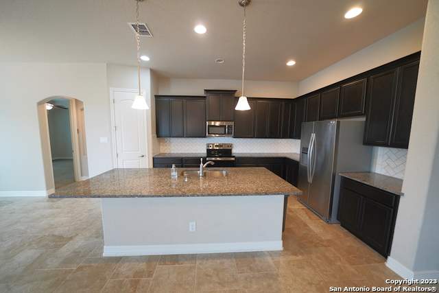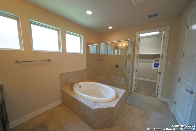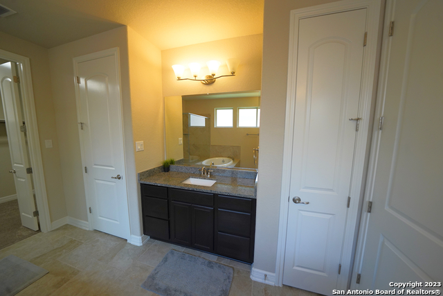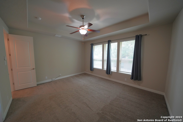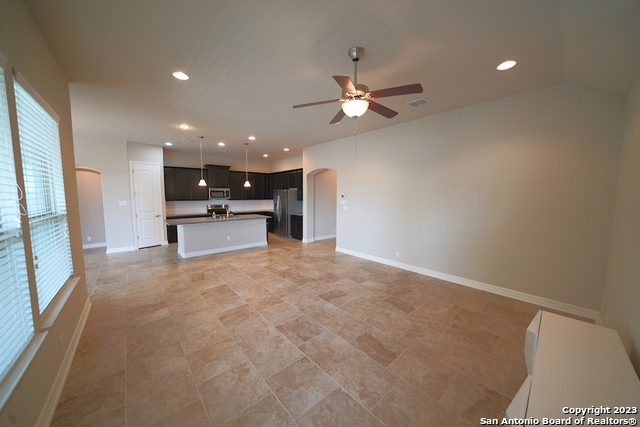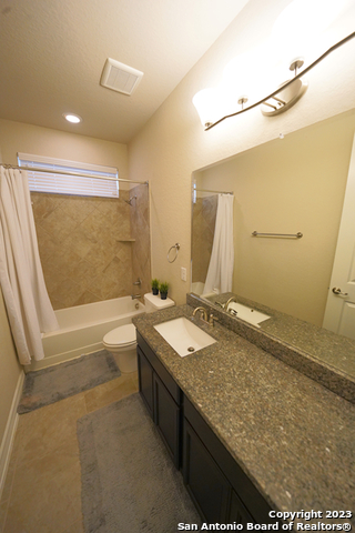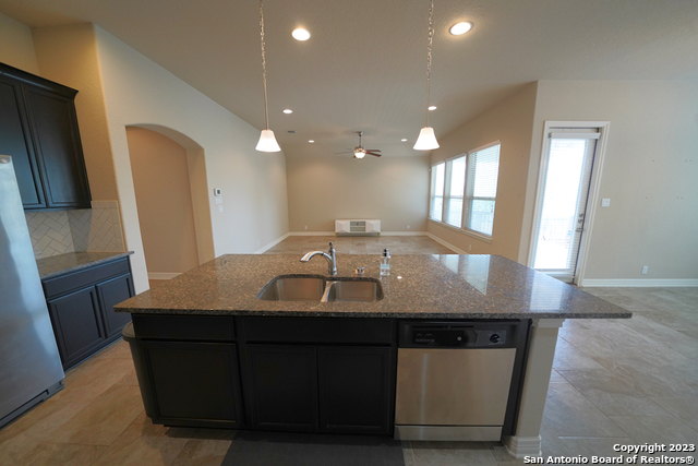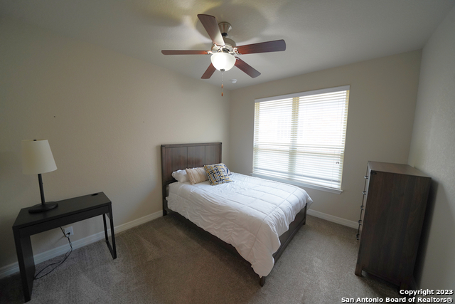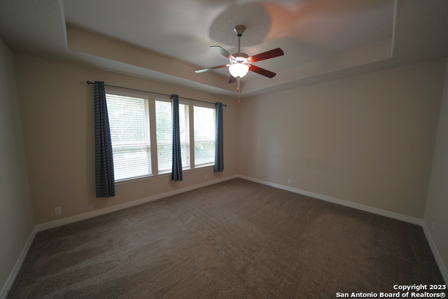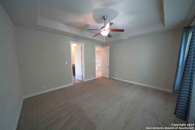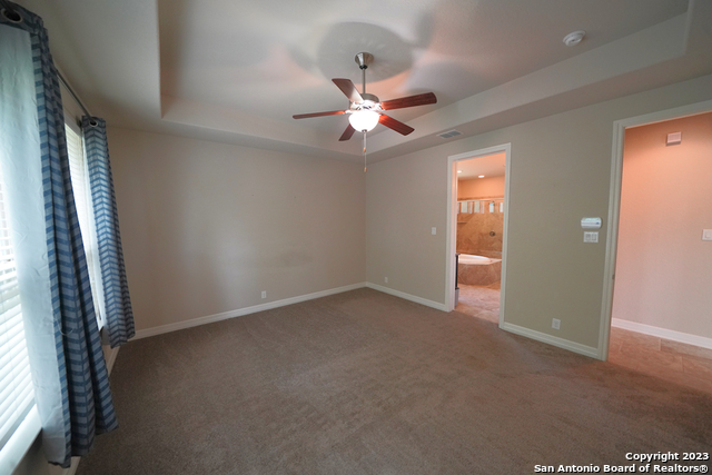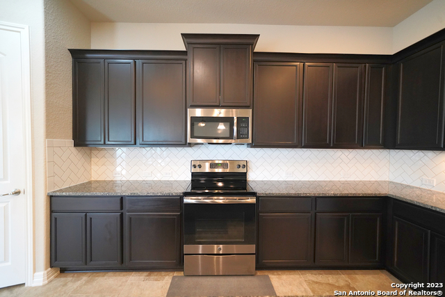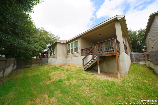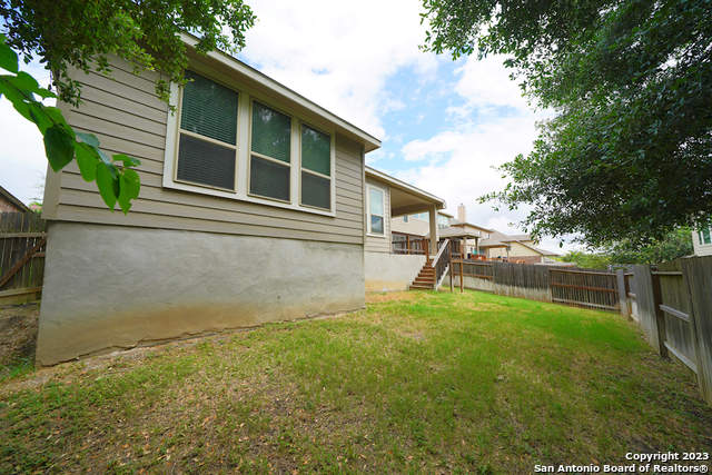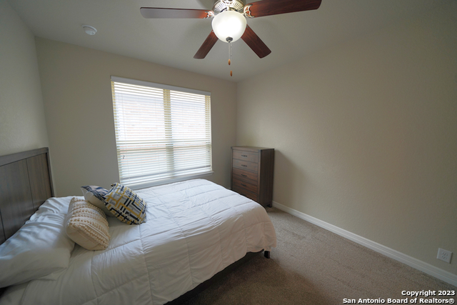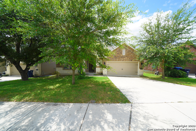 Gorgeous 4-bedroom, 2 full bathroom open floorplan home now available in the coveted "Buffalo Crossing" subdivision of Cibolo, TX. This fabulous floor plan boasts ceramic tile throughout the entry and common areas for ease of cleaning, with only carpet being located in the bedrooms. The large entryway will lead you into the spacious family room that has lots of natural light. The family room is open to the kitchen, which features granite countertops, a tile backsplash, a breakfast bar, lots of cabinetry, and matching stainless steel appliances. The master suite is separate from the secondary bedrooms for additional privacy and has a gorgeous en-suite bathroom. The master bathroom has separate vanities, a large walk-in shower, a large garden tub for soaking, and a large walk-in closet. The secondary bedrooms are very spacious and the homeowner is willing to leave the bed sets and dressers if needed. The backyard has a covered patio and a privacy fence. Come see this beautiful home today.
