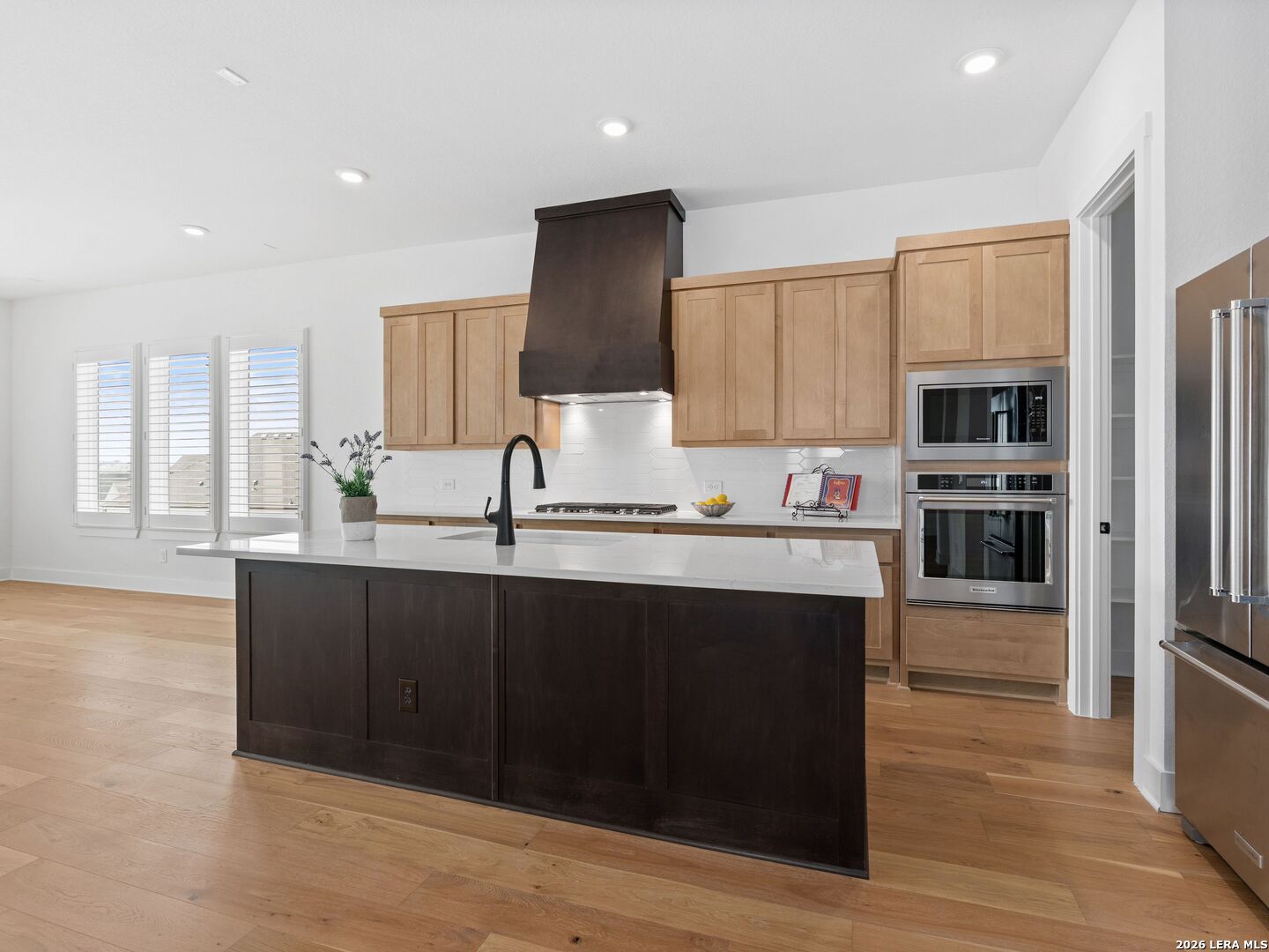 Enjoy a private club house, entertainment rooms, fitness center, pools, pickle ball and bocce courts! This Hill Country haven offers the ultimate blend of comfort and serenity. This Toll Bros one-story home in the Regency section (Active Adults 55+) embodies modern luxury while harmonizing with its natural surroundings. Open floor plan with plenty of natural light, gourmet kitchen with quartz counter tops and ample storage space. Upgraded engineered hardwood and tile flooring flow throughout! The Esperanza community also has a lazy river, fitness center, walking and biking trails, sand volleyball, multiple pools, dog park, live music area, food truck court. Quick 5 minutes to Center of Boerne.