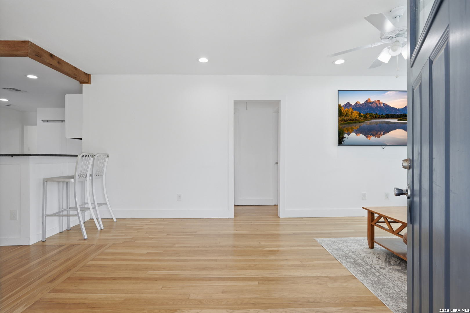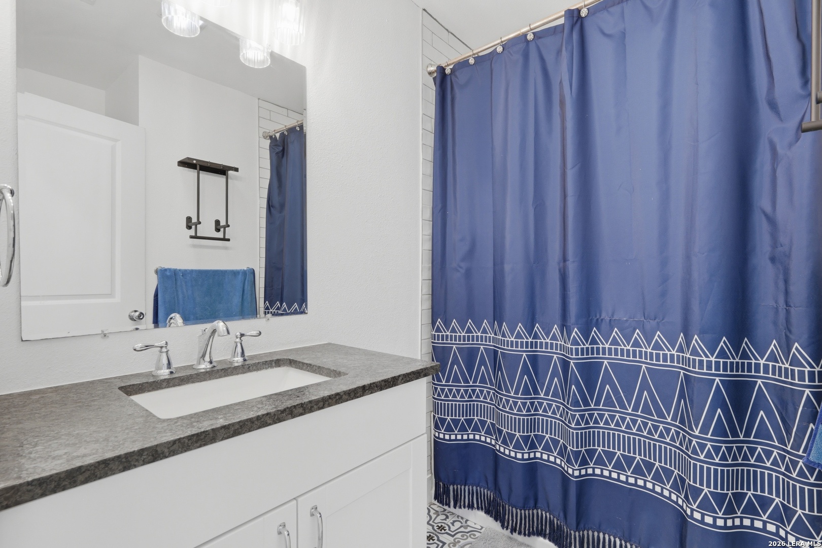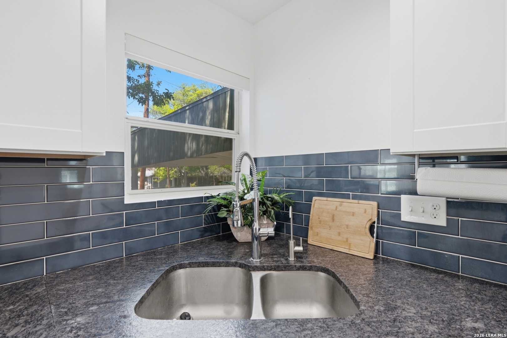 Single story open floor plan home in San Antonio with charming curb appeal, featuring a covered front porch and a mature tree that adds character from the moment you arrive. Inside, the layout flows effortlessly with recessed lighting and large windows that bring in abundant natural light, creating a bright and inviting atmosphere throughout the main living spaces. The kitchen is designed for both function and style, complete with stainless steel appliances, a beautiful backsplash, and ample workspace that connects seamlessly to the living and dining areas. The primary suite offers a comfortable retreat with a large walk in closet, double vanities, and a spacious tile shower. Additional highlights include an indoor laundry room for convenience and thoughtful use of space throughout the home. Step outside to enjoy a covered patio, a storage shed, and a privacy fence with partial metal fencing, offering both flexibility and usability. A two car carport adds extra covered parking. Located in a central area with a short commute to Downtown San Antonio, easy access to I 10 and Highway 37, and close proximity to Fort Sam Houston and Randolph Air Force Base, this property combines comfort, convenience, and accessibility.