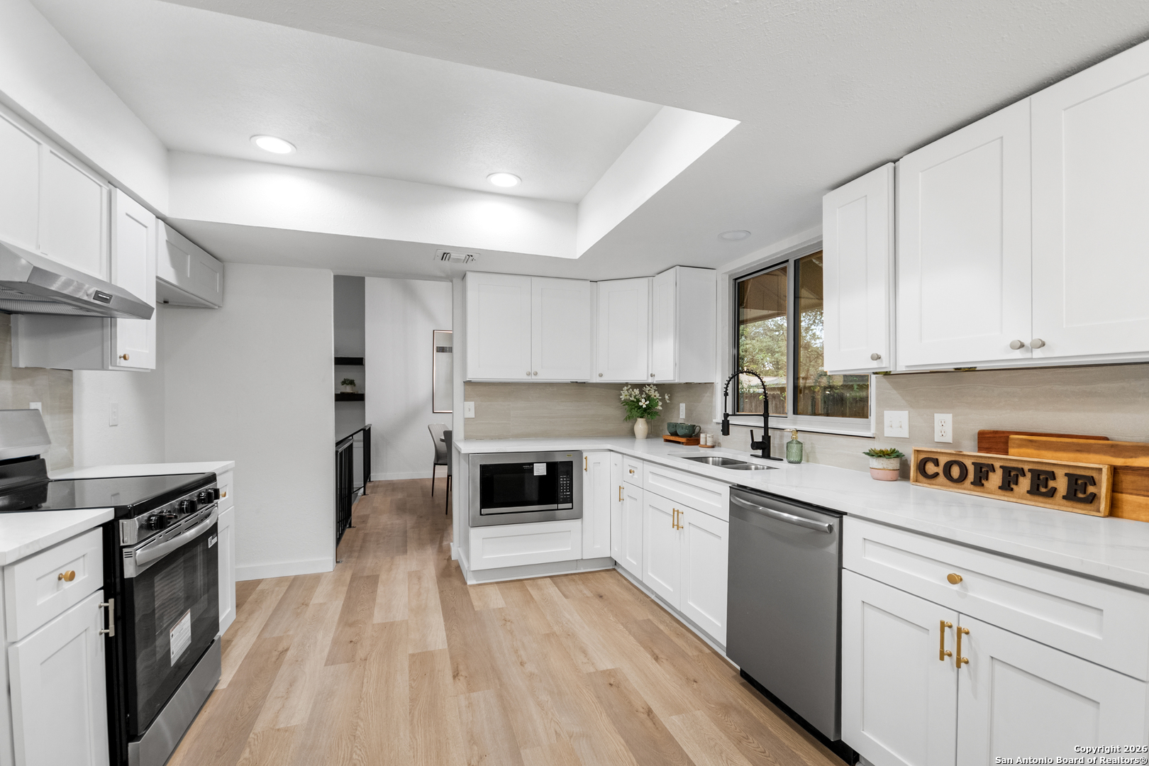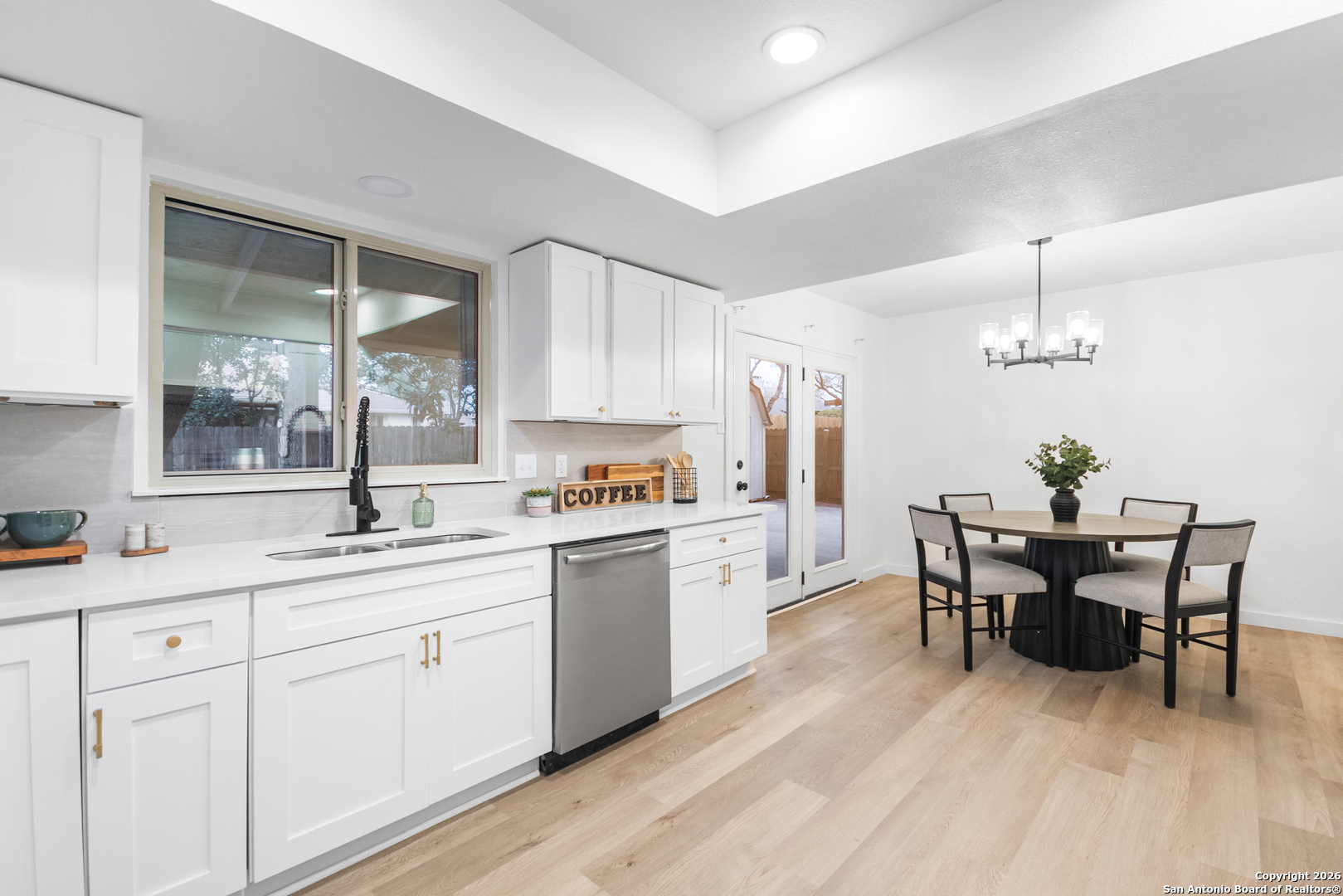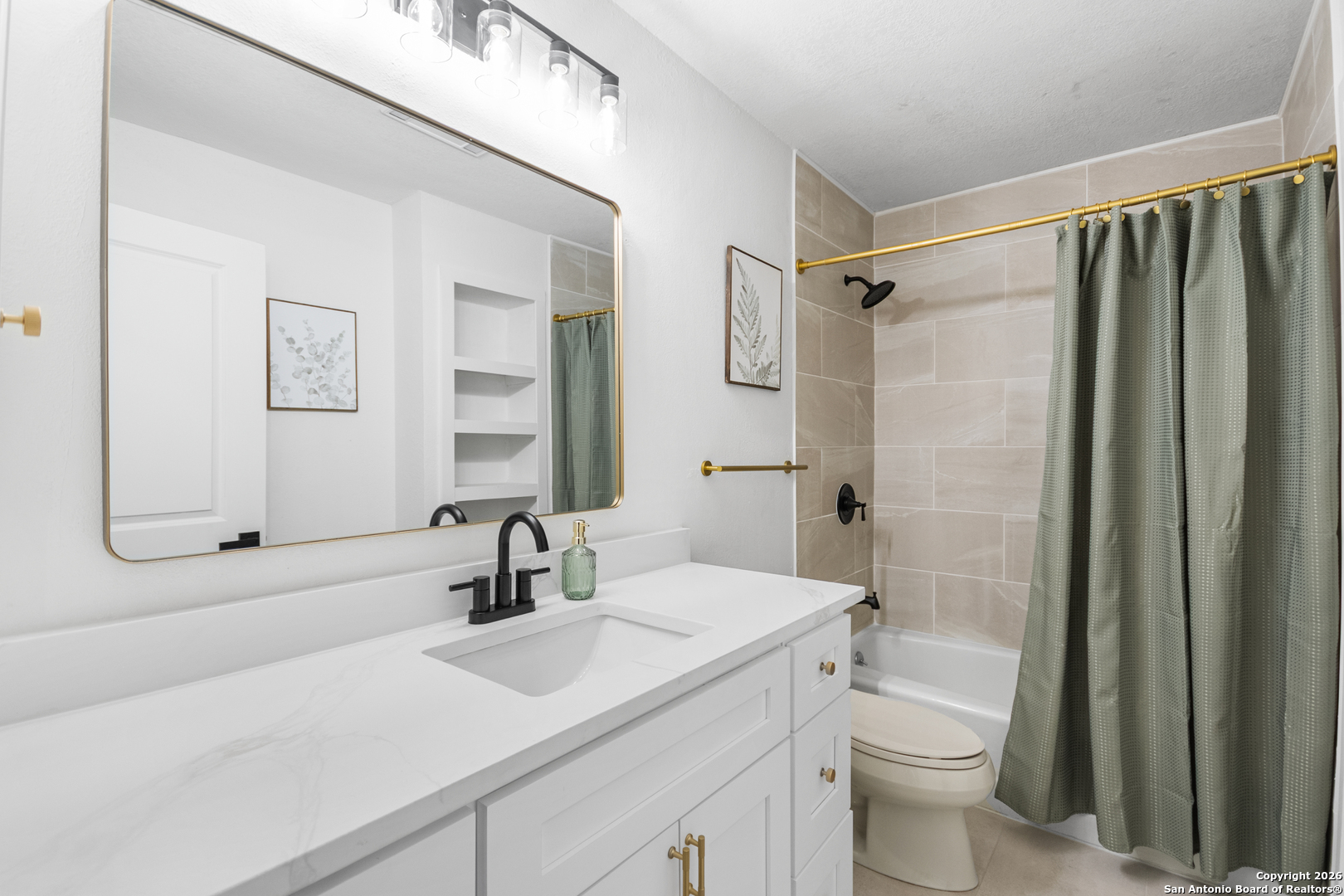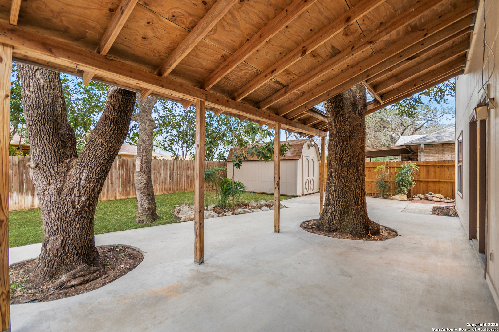 Beautifully renovated home in the highly desirable Thousand Oaks subdivision! Highly rated NEISD school district. This practically brand-new, top-to-bottom renovation features a fresh contemporary feel both inside and out. With 5 spacious bedrooms, the 5th bedroom being a perfect game room, or attached office to the 4th bedroom, plus a loft - there's plenty of room for everyone. Enjoy outdoor living on the oversized covered patio overlooking the manicured front and back lawns, perfect for relaxing or entertaining. The property also includes an extra storage shed for added convenience. Located in a quiet area, voluntary HOA and within walking distance to the local elementary school. Don't forget easy access to major highways and shopping. Only 10 MIN FROM SAN ANTONIO INTERNATIONAL AIRPORT!