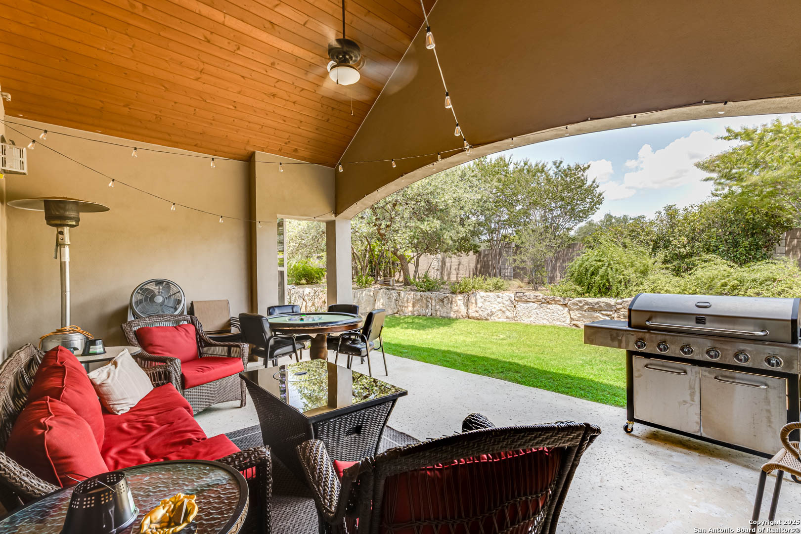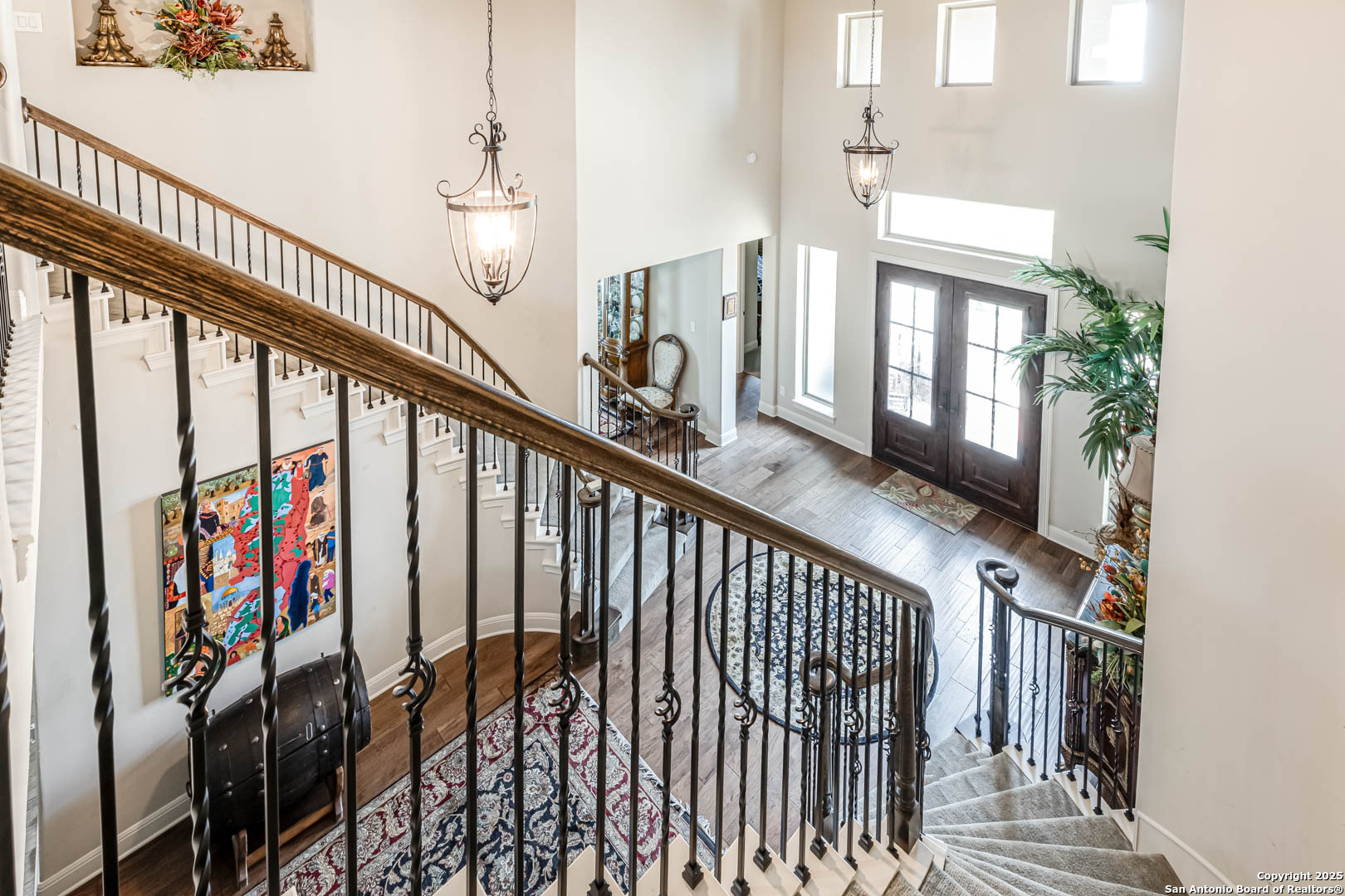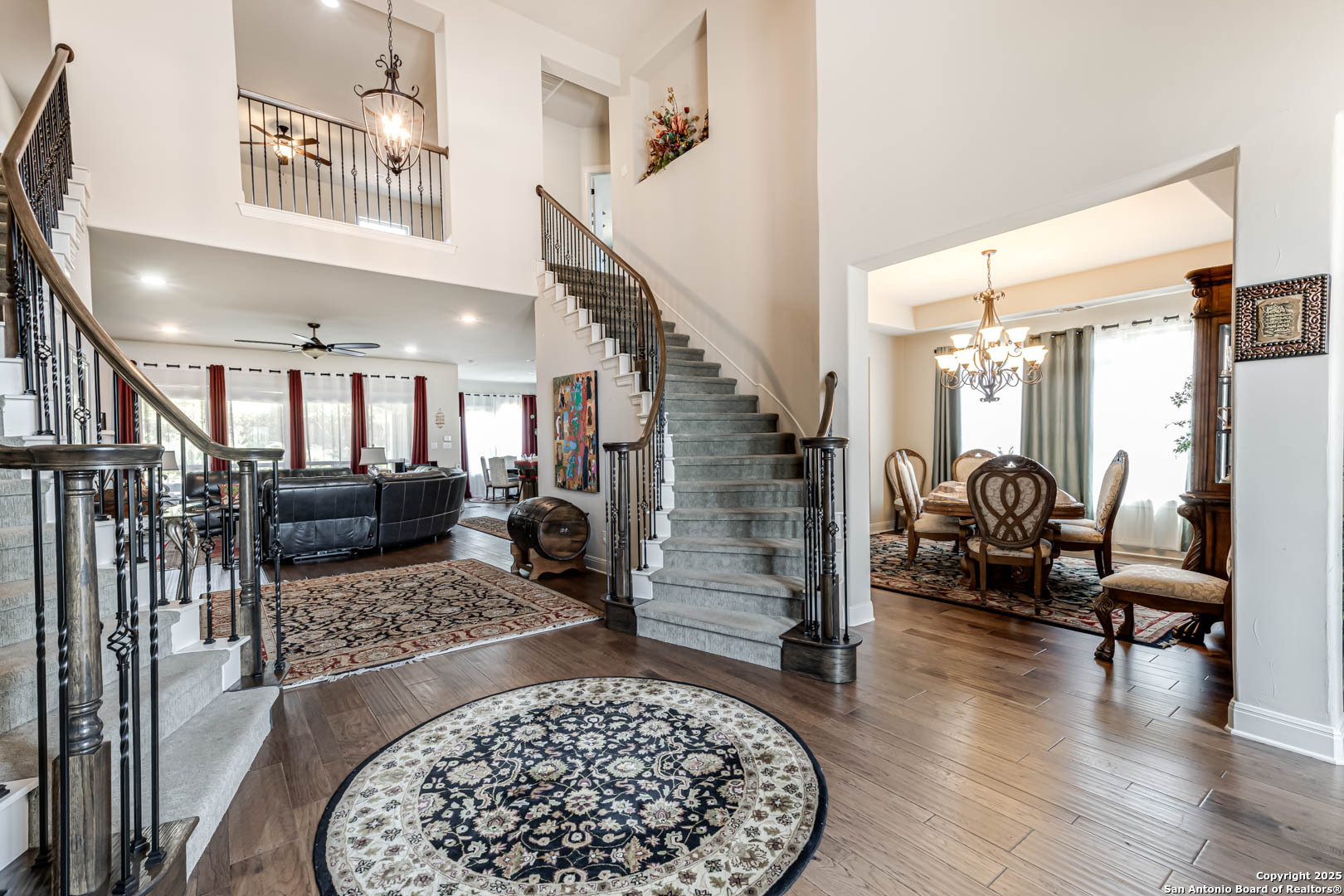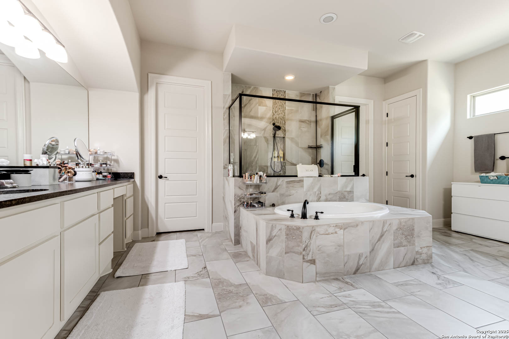 Step into this breathtaking 5,027 sq. ft. masterpiece in the prestigious Heights at Stone Oak, where luxury and comfort meet in perfect harmony. Situated on a generous .29-acre lot and priced just under $1.2M, this 5-bedroom, 4-bath stunner was built with both elegance and everyday functionality in mind. Soaring ceilings, walls of windows, and rich wood floors set the tone from the moment you walk through the door, leading you into a chef's kitchen designed to impress with a 5-burner gas cooktop, dual ovens, expansive granite island, and abundant custom cabinetry. The open floor plan flows seamlessly into spacious living and dining areas, creating the ultimate setting for both grand entertaining and intimate gatherings. The main level boasts a luxurious primary suite and an equally stunning secondary bedroom with en-suite bath-perfect for guests or multi-generational living-while upstairs offers three more bedrooms, a game room, and a dedicated media room for endless enjoyment. An oversized study provides the ideal work-from-home or creative space, and the 3-car garage ensures plenty of storage. Outside, a covered patio invites relaxed evenings and weekend entertaining, all within a gated community zoned to top-rated NEISD schools including Hardy Oak Elementary, Lopez Middle, and Reagan High. Just minutes from upscale shopping, dining, and major thoroughfares, this is more than a home-it's a statement of style, comfort, and opportunity in one of San Antonio's most sought-after neighborhoods.