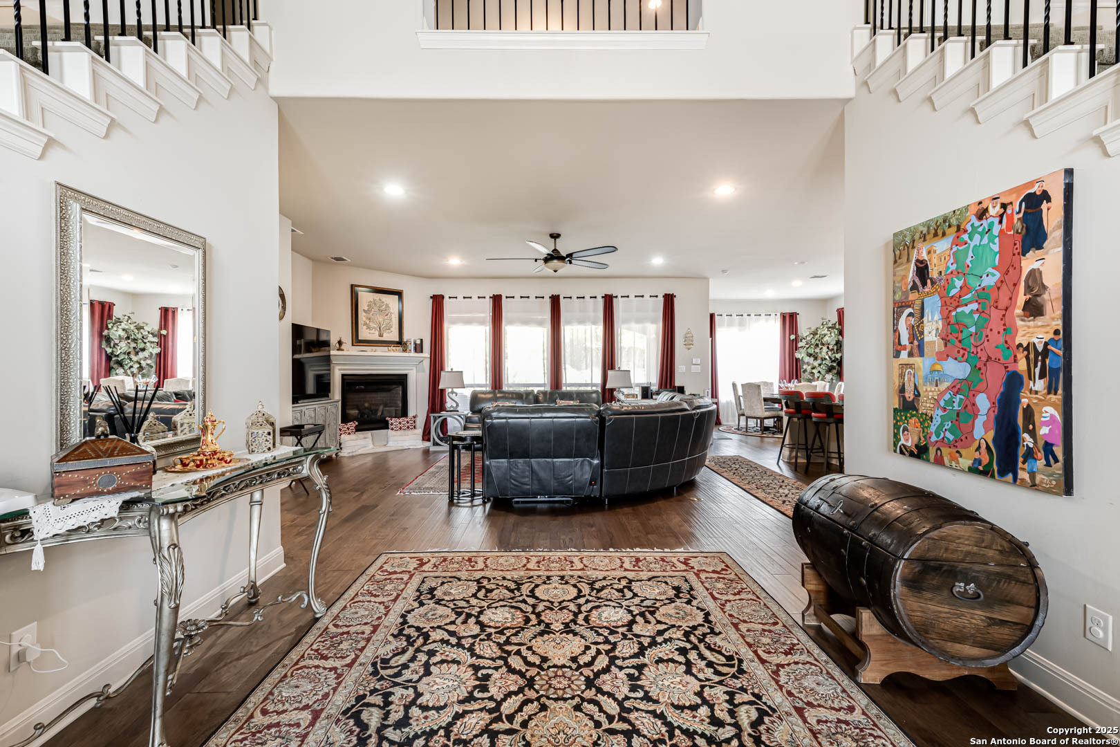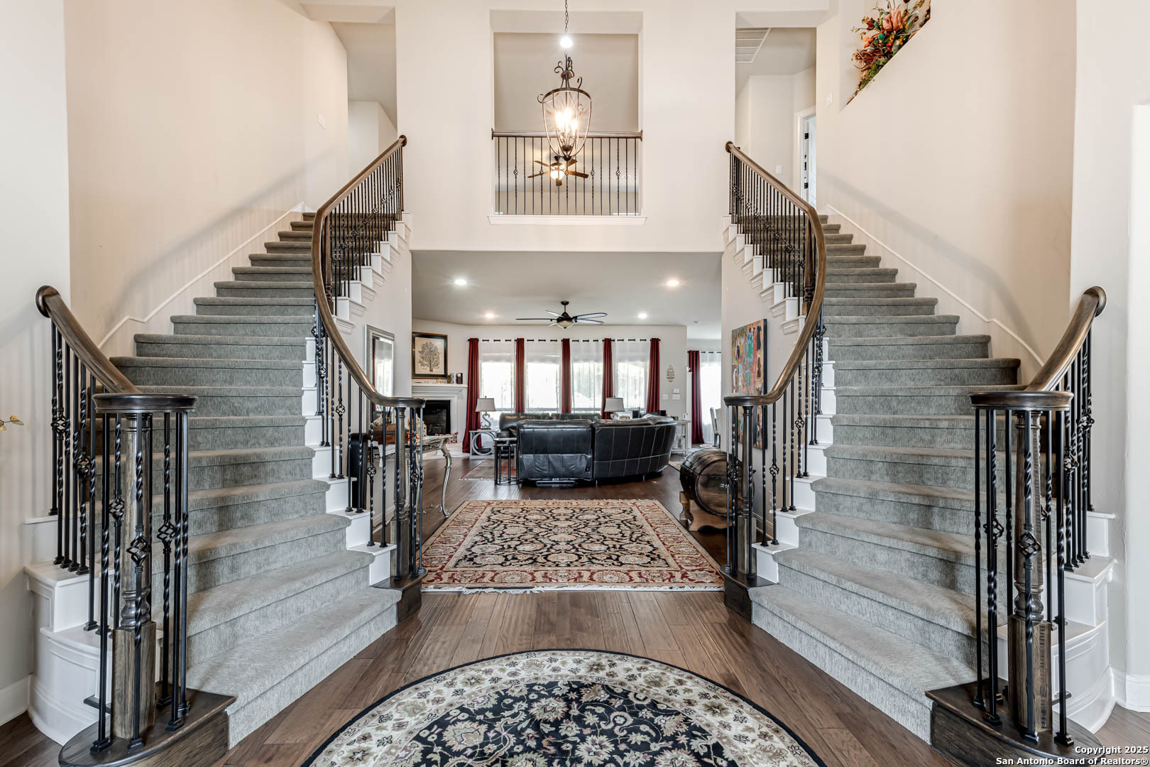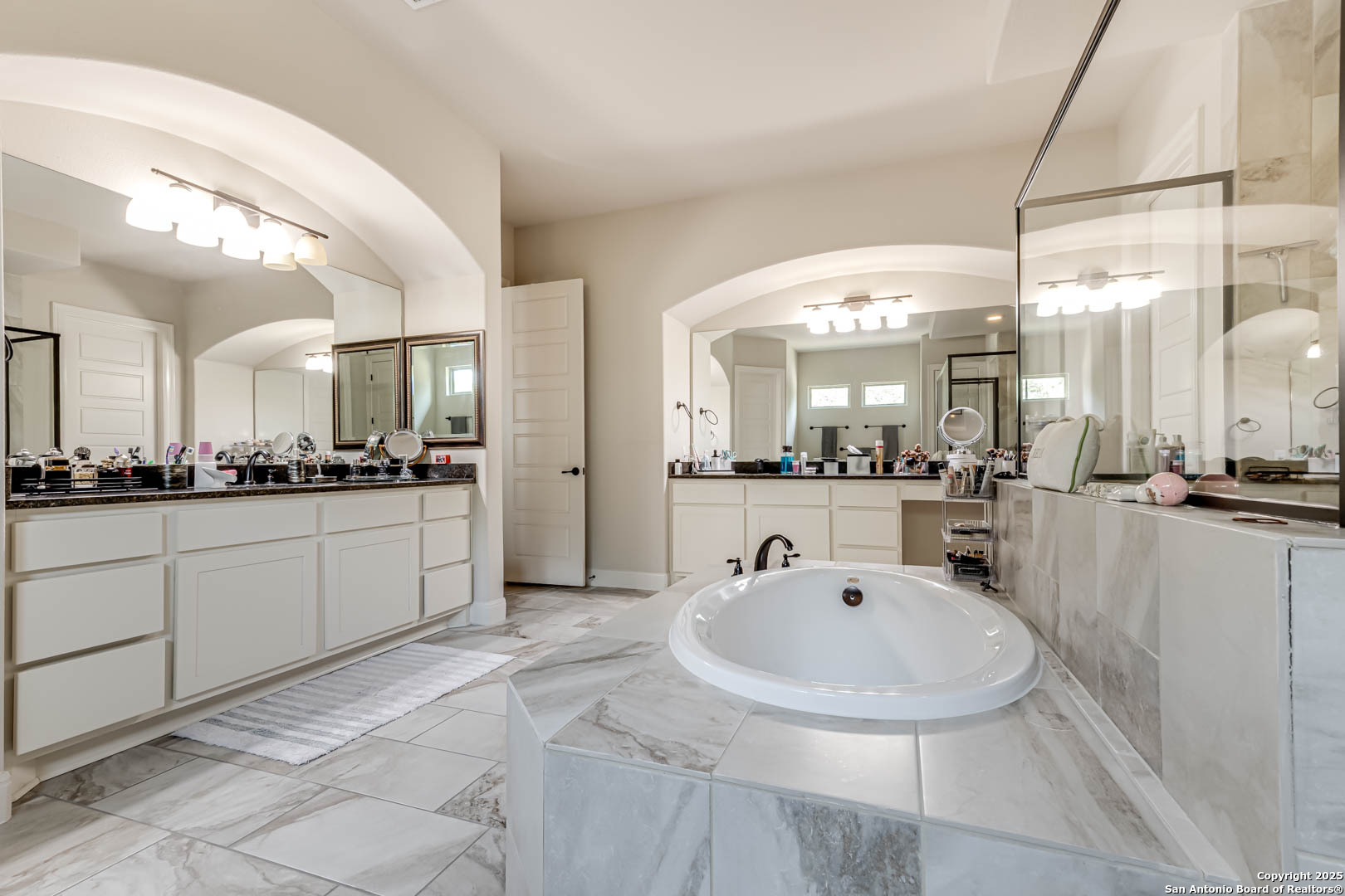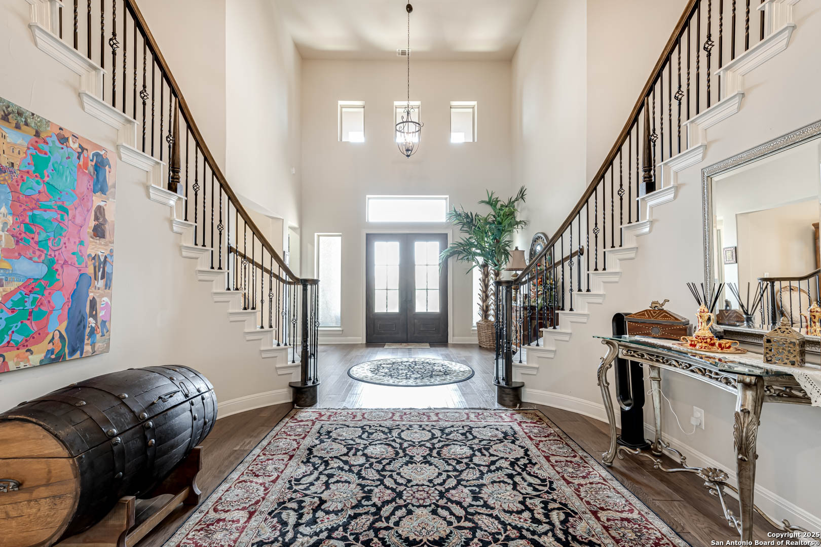 Step into this breathtaking 5,027 sq. ft. masterpiece in the prestigious Heights at Stone Oak, where luxury and comfort meet in perfect harmony. Situated on a generous .29-acre lot and priced just under $1.2M, this 5-bedroom, 4-bath stunner was built with both elegance and everyday functionality in mind. Soaring ceilings, walls of windows, and rich wood floors set the tone from the moment you walk through the door, leading you into a chef's kitchen designed to impress with a 5-burner gas cooktop, dual ovens, expansive granite island, and abundant custom cabinetry. The open floor plan flows seamlessly into spacious living and dining areas, creating the ultimate setting for both grand entertaining and intimate gatherings. The main level boasts a luxurious primary suite and an equally stunning secondary bedroom with en-suite bath-perfect for guests or multi-generational living-while upstairs offers three more bedrooms, a game room, and a dedicated media room for endless enjoyment. An oversized study provides the ideal work-from-home or creative space, and the 3-car garage ensures plenty of storage. Outside, a covered patio invites relaxed evenings and weekend entertaining, all within a gated community zoned to top-rated NEISD schools including Hardy Oak Elementary, Lopez Middle, and Reagan High. Just minutes from upscale shopping, dining, and major thoroughfares, this is more than a home-it's a statement of style, comfort, and opportunity in one of San Antonio's most sought-after neighborhoods.
