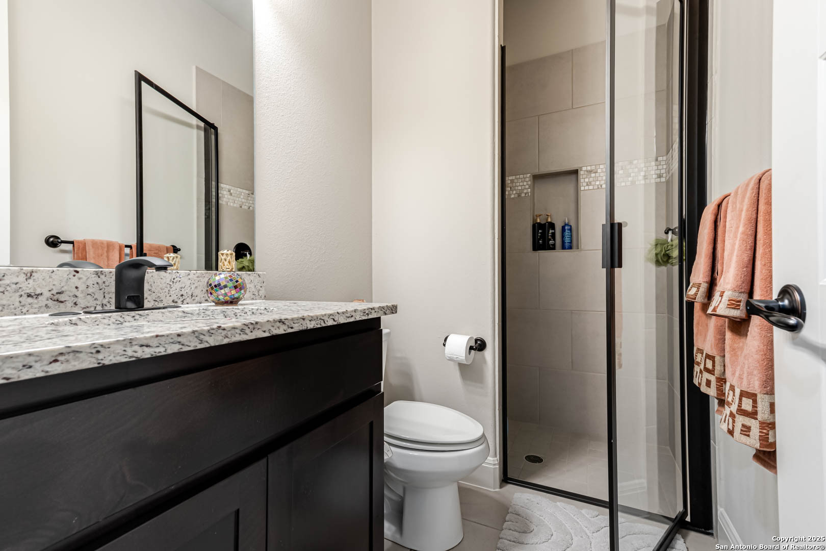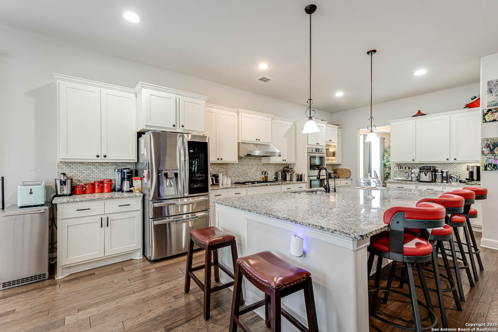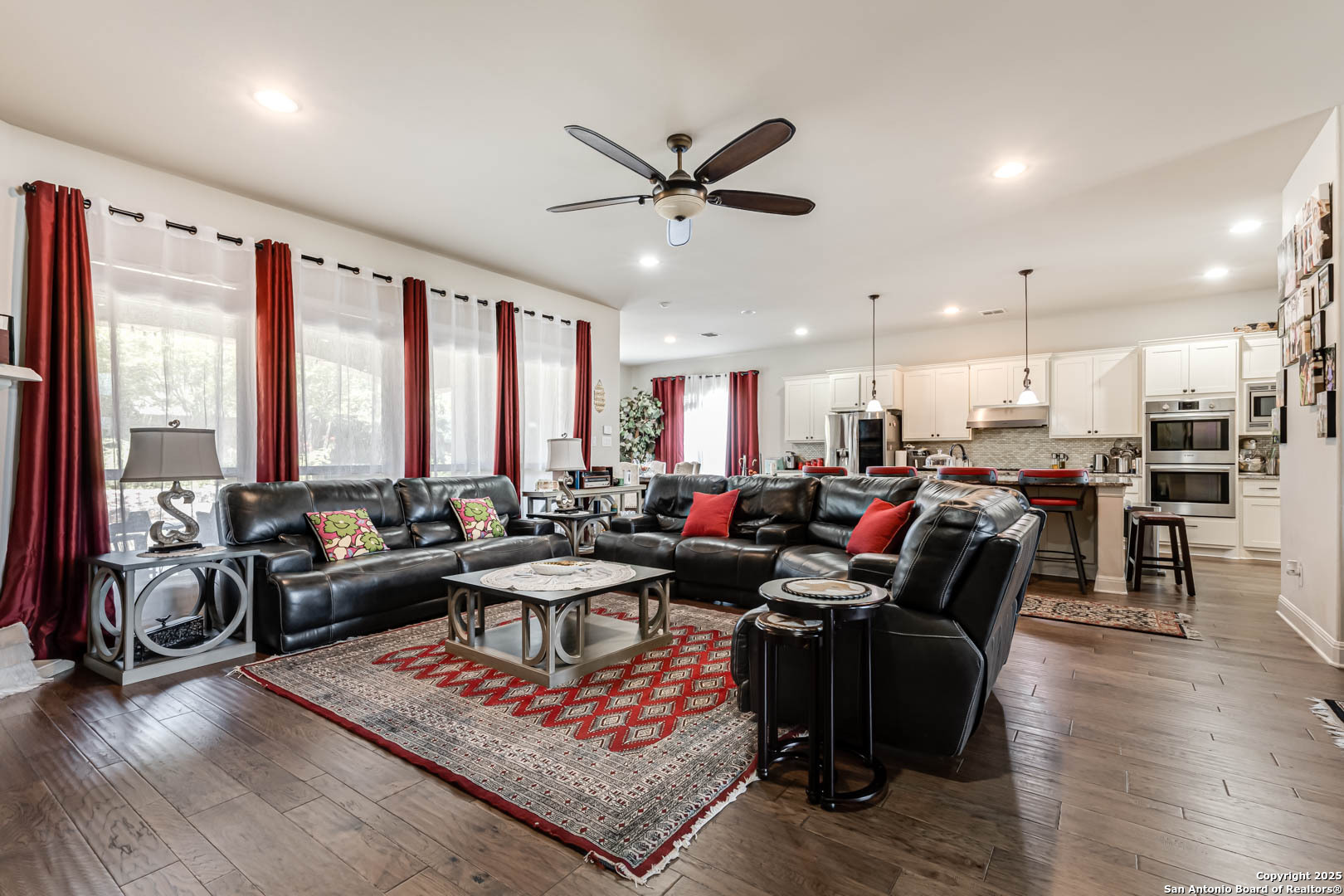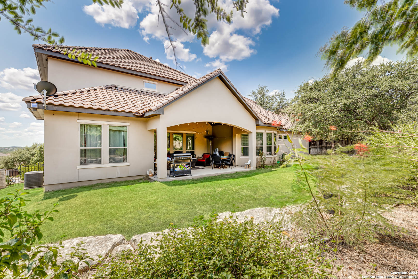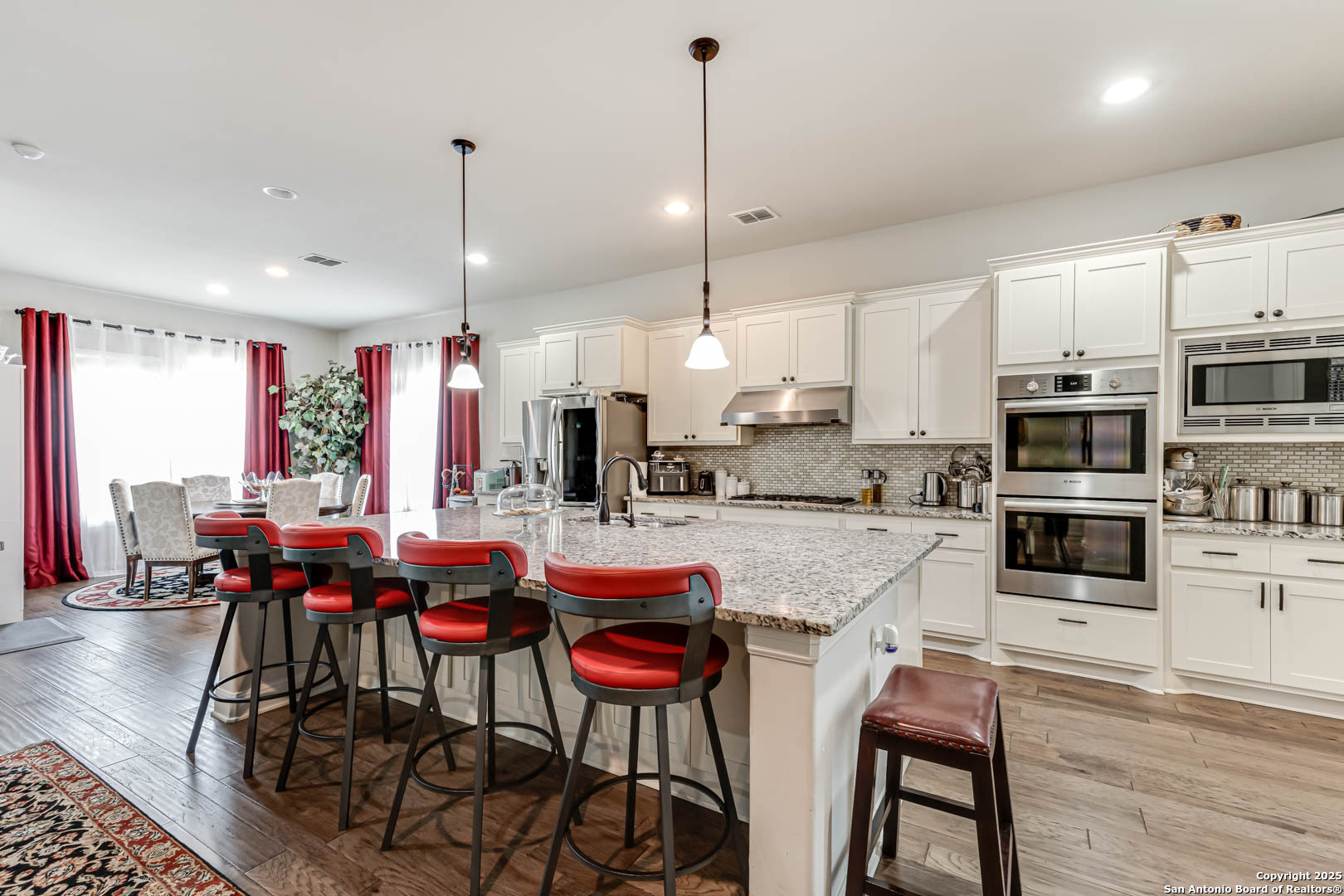 Step into this breathtaking 5,027 sq. ft. masterpiece in the prestigious Heights at Stone Oak, where luxury and comfort meet in perfect harmony. Situated on a generous .29-acre lot and priced just under $1.2M, this 5-bedroom, 4-bath stunner was built with both elegance and everyday functionality in mind. Soaring ceilings, walls of windows, and rich wood floors set the tone from the moment you walk through the door, leading you into a chef's kitchen designed to impress with a 5-burner gas cooktop, dual ovens, expansive granite island, and abundant custom cabinetry. The open floor plan flows seamlessly into spacious living and dining areas, creating the ultimate setting for both grand entertaining and intimate gatherings. The main level boasts a luxurious primary suite and an equally stunning secondary bedroom with en-suite bath-perfect for guests or multi-generational living-while upstairs offers three more bedrooms, a game room, and a dedicated media room for endless enjoyment. An oversized study provides the ideal work-from-home or creative space, and the 3-car garage ensures plenty of storage. Outside, a covered patio invites relaxed evenings and weekend entertaining, all within a gated community zoned to top-rated NEISD schools including Hardy Oak Elementary, Lopez Middle, and Reagan High. Just minutes from upscale shopping, dining, and major thoroughfares, this is more than a home-it's a statement of style, comfort, and opportunity in one of San Antonio's most sought-after neighborhoods.
