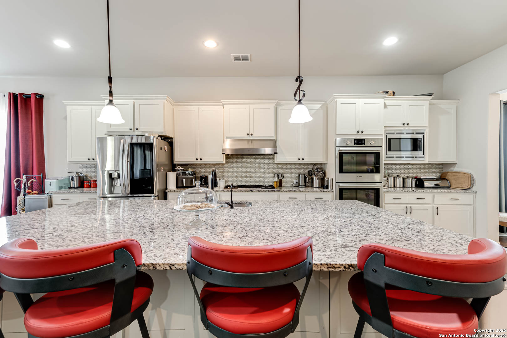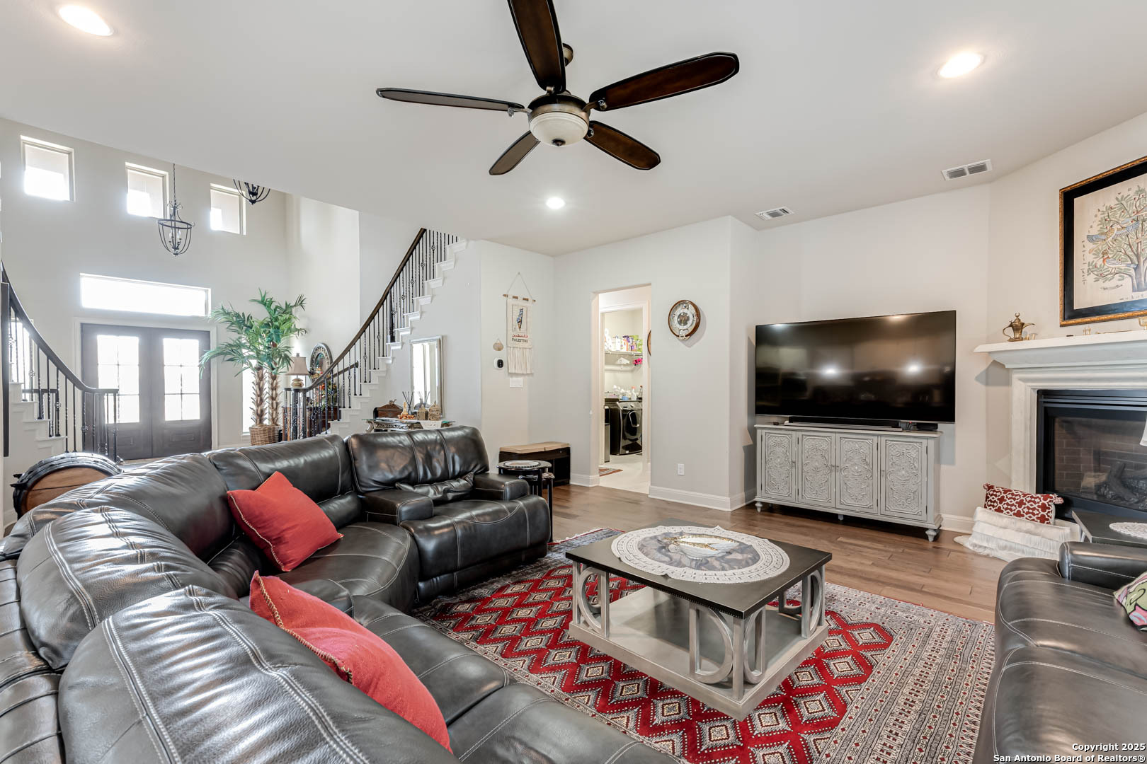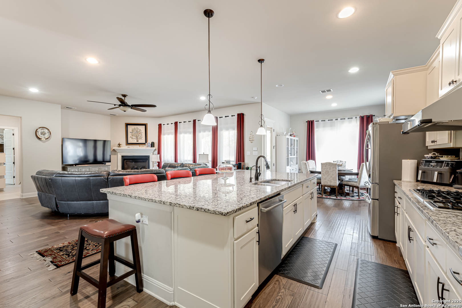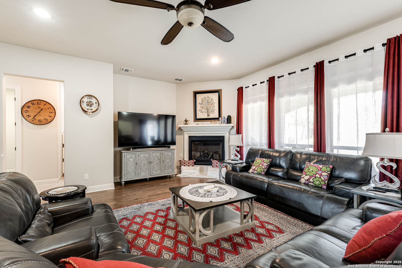 Step into this breathtaking 5,027 sq. ft. masterpiece in the prestigious Heights at Stone Oak, where luxury and comfort meet in perfect harmony. Situated on a generous .29-acre lot and priced just under $1.2M, this 5-bedroom, 4-bath stunner was built with both elegance and everyday functionality in mind. Soaring ceilings, walls of windows, and rich wood floors set the tone from the moment you walk through the door, leading you into a chef's kitchen designed to impress with a 5-burner gas cooktop, dual ovens, expansive granite island, and abundant custom cabinetry. The open floor plan flows seamlessly into spacious living and dining areas, creating the ultimate setting for both grand entertaining and intimate gatherings. The main level boasts a luxurious primary suite and an equally stunning secondary bedroom with en-suite bath-perfect for guests or multi-generational living-while upstairs offers three more bedrooms, a game room, and a dedicated media room for endless enjoyment. An oversized study provides the ideal work-from-home or creative space, and the 3-car garage ensures plenty of storage. Outside, a covered patio invites relaxed evenings and weekend entertaining, all within a gated community zoned to top-rated NEISD schools including Hardy Oak Elementary, Lopez Middle, and Reagan High. Just minutes from upscale shopping, dining, and major thoroughfares, this is more than a home-it's a statement of style, comfort, and opportunity in one of San Antonio's most sought-after neighborhoods.