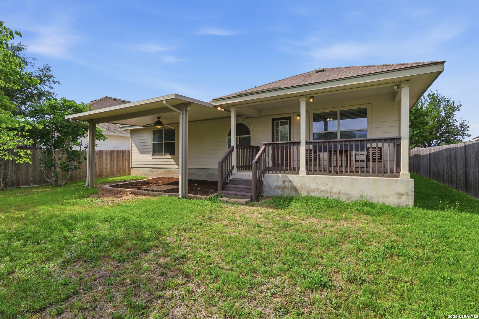 Spacious one story home in Dove Crossing, New Braunfels. 3 Bedrooms, 2 bath, one story home on a greenbelt. Primary bedroom with full bath and walk-in closet. Primary bath with double vanity and shower/tub combo. Nice size secondary bedrooms. Covered Patio in Privacy fenced backyard. 2 Car attached garage. Minutes to shops and restaurants. Easy access to IH-35 and FM 725. Near Randolph Air Force Base. Community amenities include pool and playground.