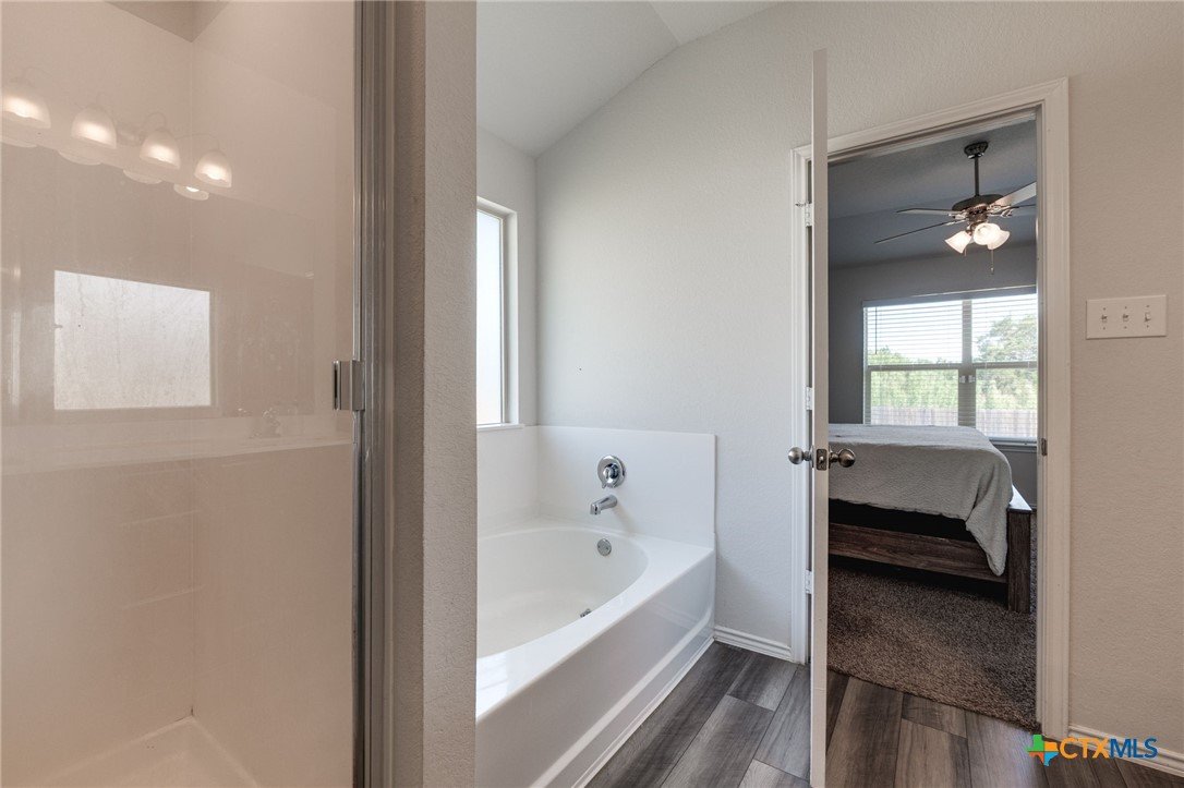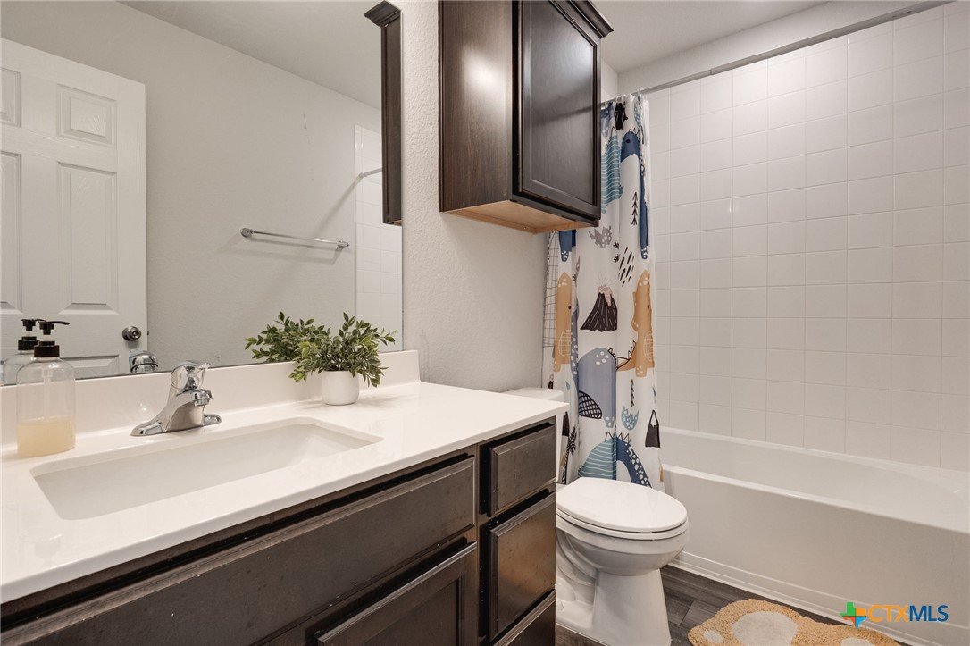 Welcome home to this beautifully designed 4 bedroom, 2.5 bath home with a flex room, offering 1,979 sqft of thoughtfully planned living space and a layout that truly makes everyday living easy. From the moment you step into the large foyer, you’ll appreciate the open, inviting flow that carries throughout the home. The kitchen is the heart of it all, featuring trendy white cabinetry, stainless steel appliances, granite countertops, a large island, and a stylish subway tile backsplash, plus a generously sized pantry. It opens seamlessly to the living and dining areas, making it perfect for both entertaining and everyday life. The primary suite is a true retreat, offering a spacious bedroom, a spa-like en suite with double sinks, a garden tub, and a separate shower, along with a large walk-in closet. One of the standout features you’ll absolutely love is the direct access from the primary suite to the laundry room—a convenience you didn’t know you needed until you have it. This home offers a smart split layout for added privacy. One secondary bedroom is tucked away with easy access to a half bath, while the other two bedrooms are located on the opposite side of the home with a full bath in between—ideal for guests or family. Additional highlights include upgraded landscaping, beautiful flooring throughout, a full yard sprinkler system, wood privacy fence, and no backyard neighbors, giving you both comfort and privacy. Located in a welcoming community of creekside hills with neighborhood amenties that includes a pool,pavilion and more, this neighborhood is perfect for relaxing, entertaining, and enjoying time with family and friends.