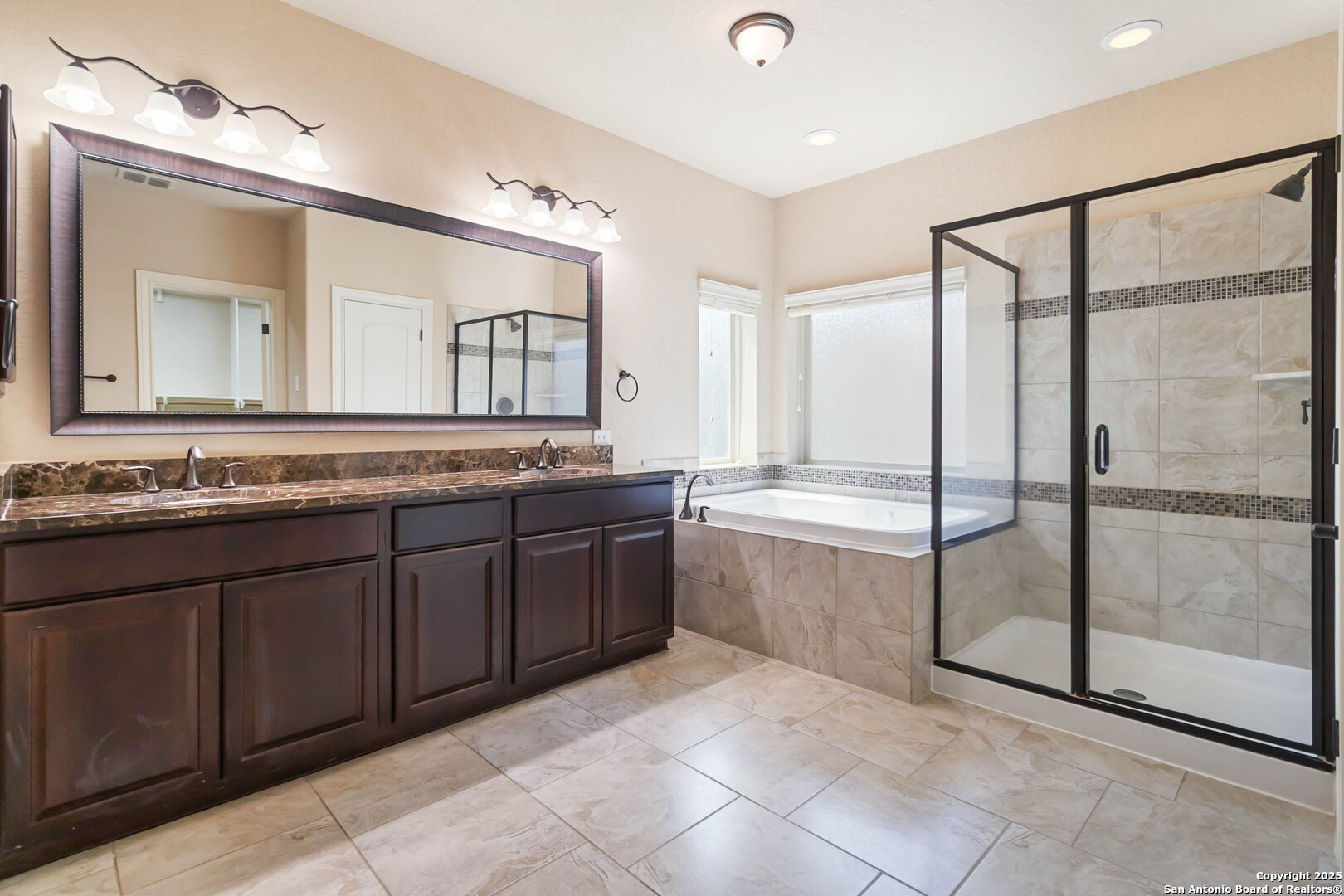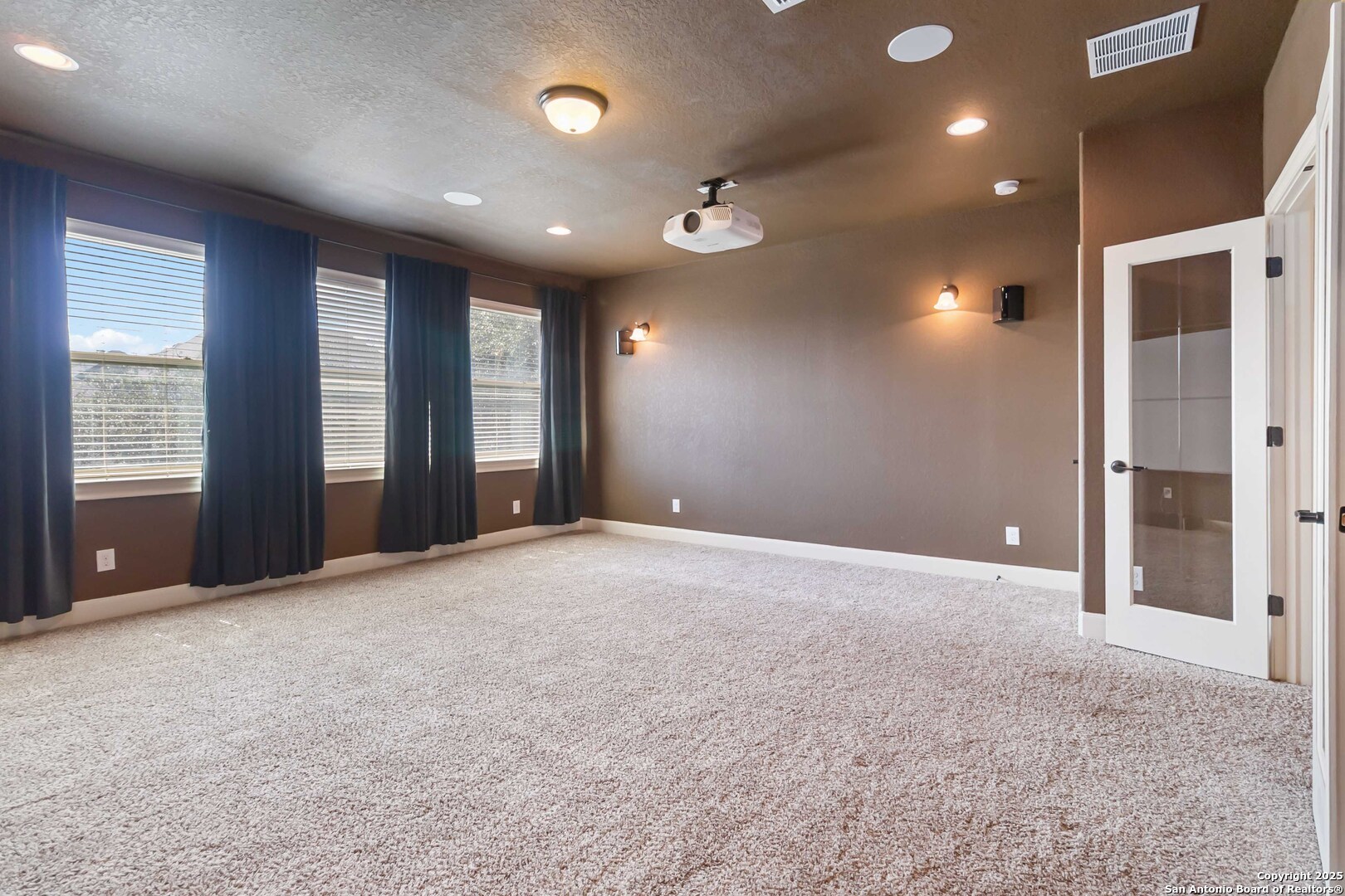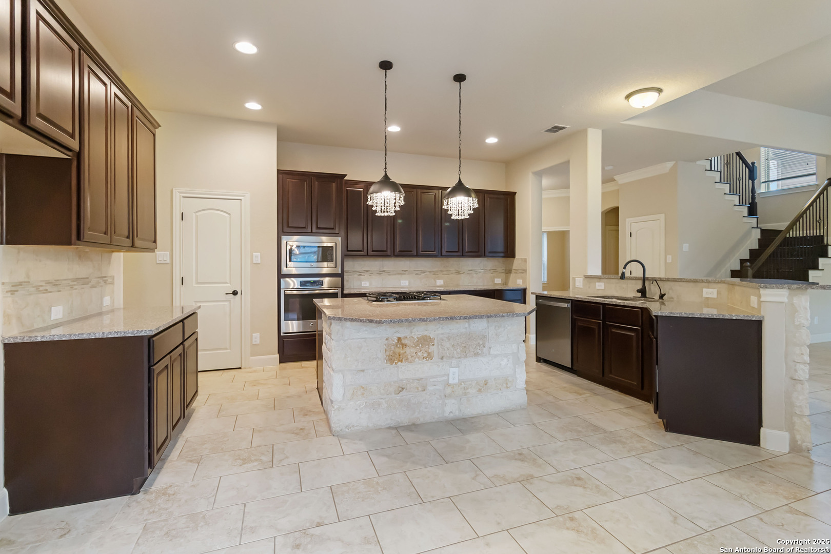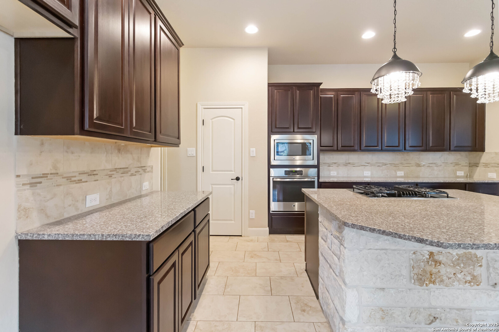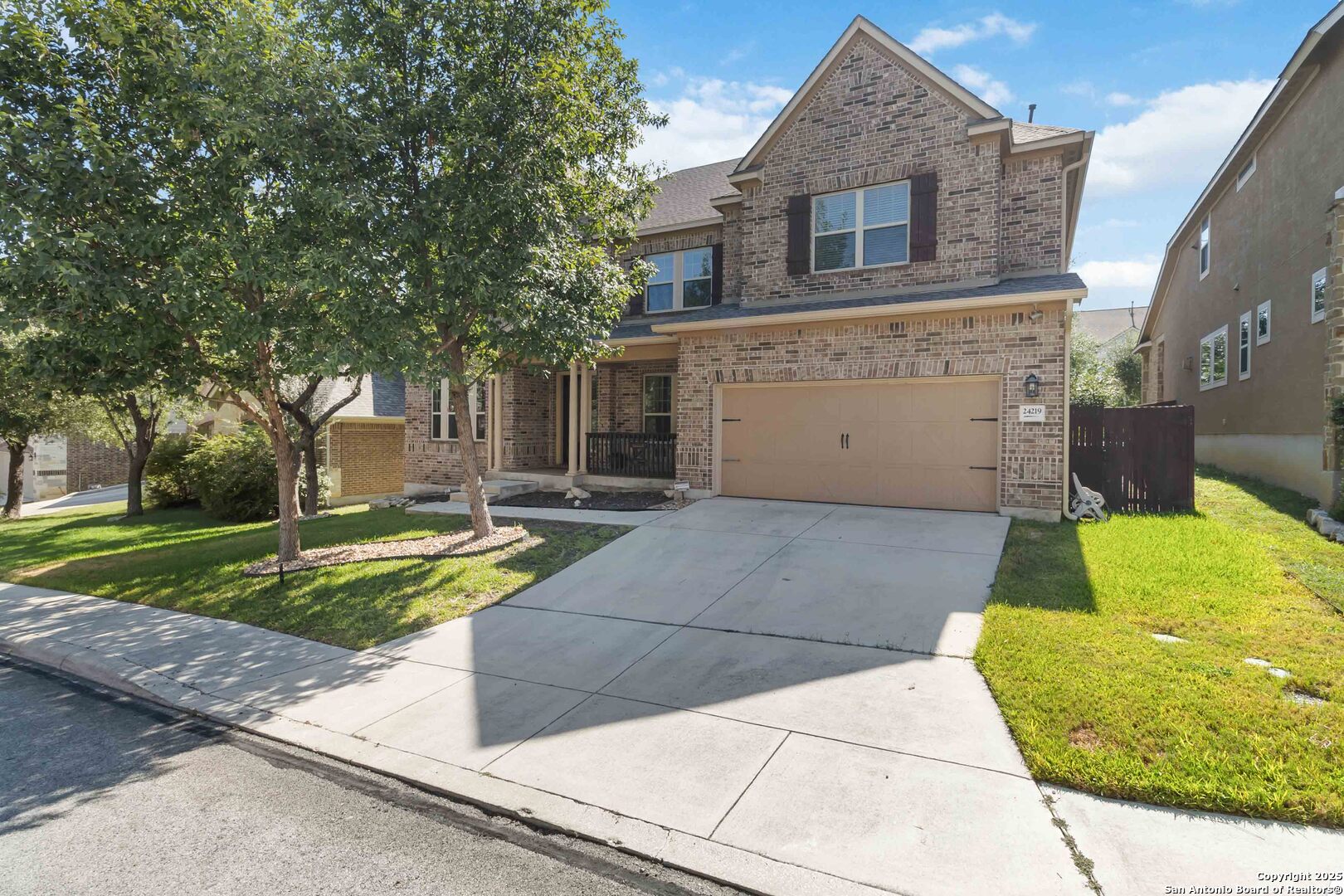Exquisite Home with Pool, Theater, and Upgrades in Terra Bella - Reagan HS! Welcome to this stunning 5 bedroom, 4.5 bath home located in the highly sought-after Terra Bella community, feeding into Reagan High School. The spacious open-concept floor plan welcomes you with high ceilings, abundant natural light, and a seamless flow perfect for everyday living and entertaining. The living room features a stone fireplace, custom alcoves, and built-in media cabinetry, while the adjacent entryway showcases iron stair railings, tile floors, and a designated home office or study. You'll be captivated by the oversized kitchen, enhanced by pendant lighting, surrounded by granite countertops, generous cabinetry and drawers, and a gas cooktop with built-in oven and a breakfast area! The extra large primary suite offers a tranquil retreat with tons of natural lighting and the primary bathroom features a separate garden tub and shower, double vanity, and a large walk-in closet. Entertain or unwind in the oversized theater room, complete with Epson sound and projection system. The home also has a separate flex room to use as a home gym, playroom or gameroom. The large backyard is truly an oasis, complete with a covered patio with drop-down shades, a sparkling pool, and several dining and lounging areas surrounded by mature trees offering plenty of shade. Additional highlights include a brand-new roof, new dishwasher, and a fully equipped theater system with projector and surround sound. The home features tile and hardwood flooring throughout-carpet in the media room only, offering both style and easy maintenance. Situated in a gated community with controlled access, you'll enjoy added peace of mind. Conveniently located just minutes from shopping, dining, and major highways, this home offers the perfect blend of luxury and accessibility. Don't miss your chance to own this move-in-ready home in the highly desirable Terra Bella community-schedule your private showing today!