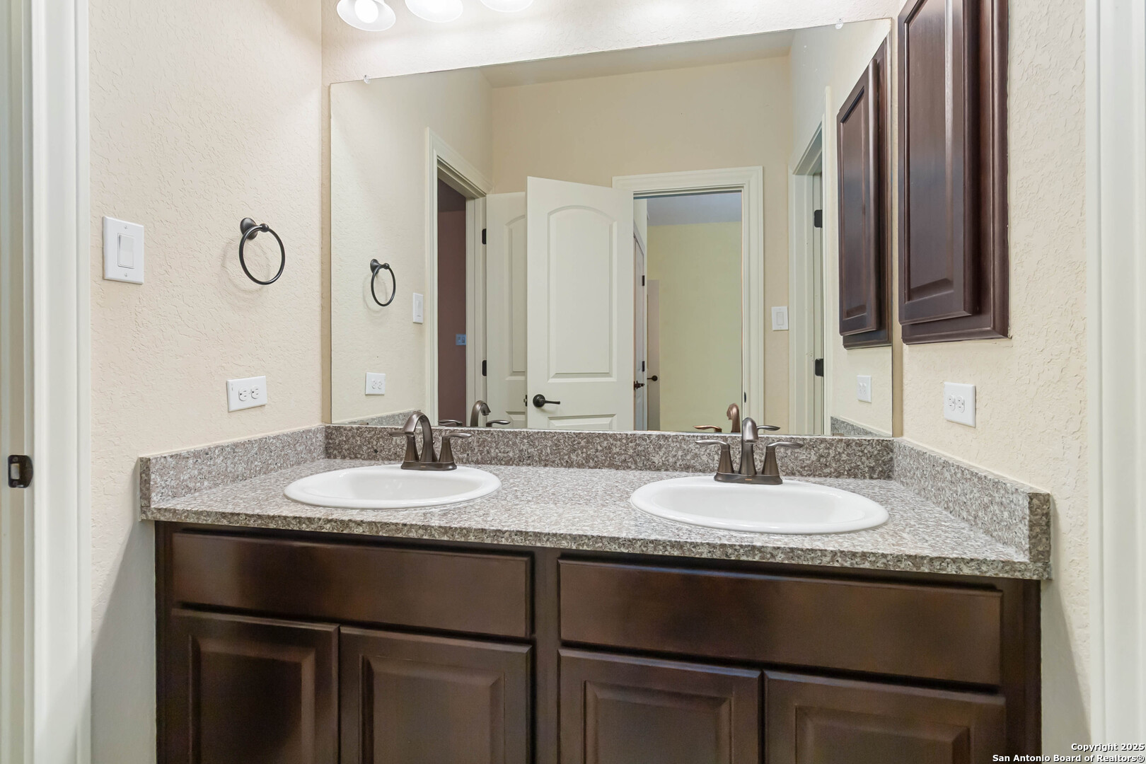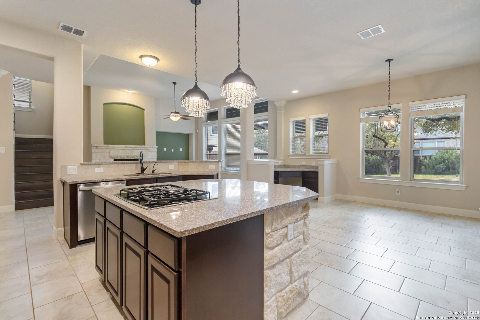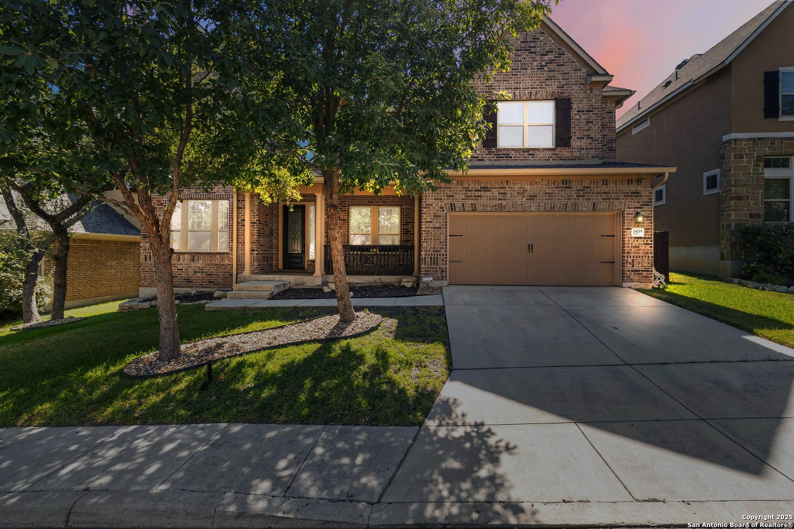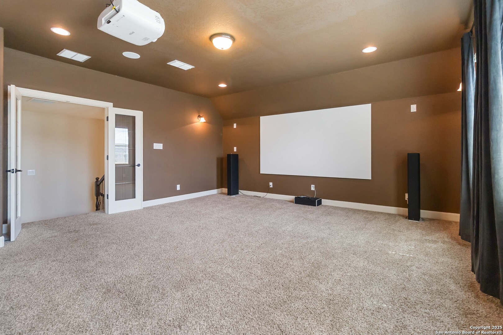 Exquisite Home with Pool, Theater, and Upgrades in Terra Bella - Reagan HS! Welcome to this stunning 5 bedroom, 4.5 bath home located in the highly sought-after Terra Bella community, feeding into Reagan High School. The spacious open-concept floor plan welcomes you with high ceilings, abundant natural light, and a seamless flow perfect for everyday living and entertaining. The living room features a stone fireplace, custom alcoves, and built-in media cabinetry, while the adjacent entryway showcases iron stair railings, tile floors, and a designated home office or study. You'll be captivated by the oversized kitchen, enhanced by pendant lighting, surrounded by granite countertops, generous cabinetry and drawers, and a gas cooktop with built-in oven and a breakfast area! The extra large primary suite offers a tranquil retreat with tons of natural lighting and the primary bathroom features a separate garden tub and shower, double vanity, and a large walk-in closet. Entertain or unwind in the oversized theater room, complete with Epson sound and projection system. The home also has a separate flex room to use as a home gym, playroom or gameroom. The large backyard is truly an oasis, complete with a covered patio with drop-down shades, a sparkling pool, and several dining and lounging areas surrounded by mature trees offering plenty of shade. Additional highlights include a brand-new roof, new dishwasher, and a fully equipped theater system with projector and surround sound. The home features tile and hardwood flooring throughout-carpet in the media room only, offering both style and easy maintenance. Situated in a gated community with controlled access, you'll enjoy added peace of mind. Conveniently located just minutes from shopping, dining, and major highways, this home offers the perfect blend of luxury and accessibility. Don't miss your chance to own this move-in-ready home in the highly desirable Terra Bella community-schedule your private showing today!