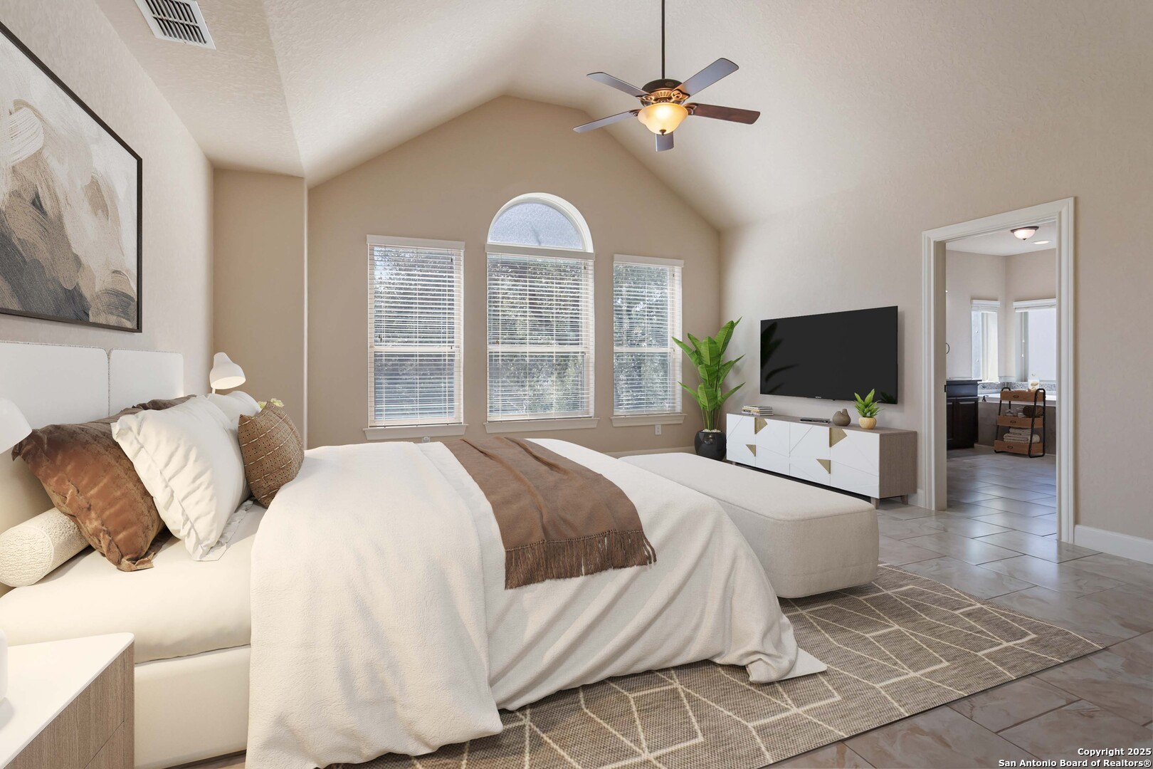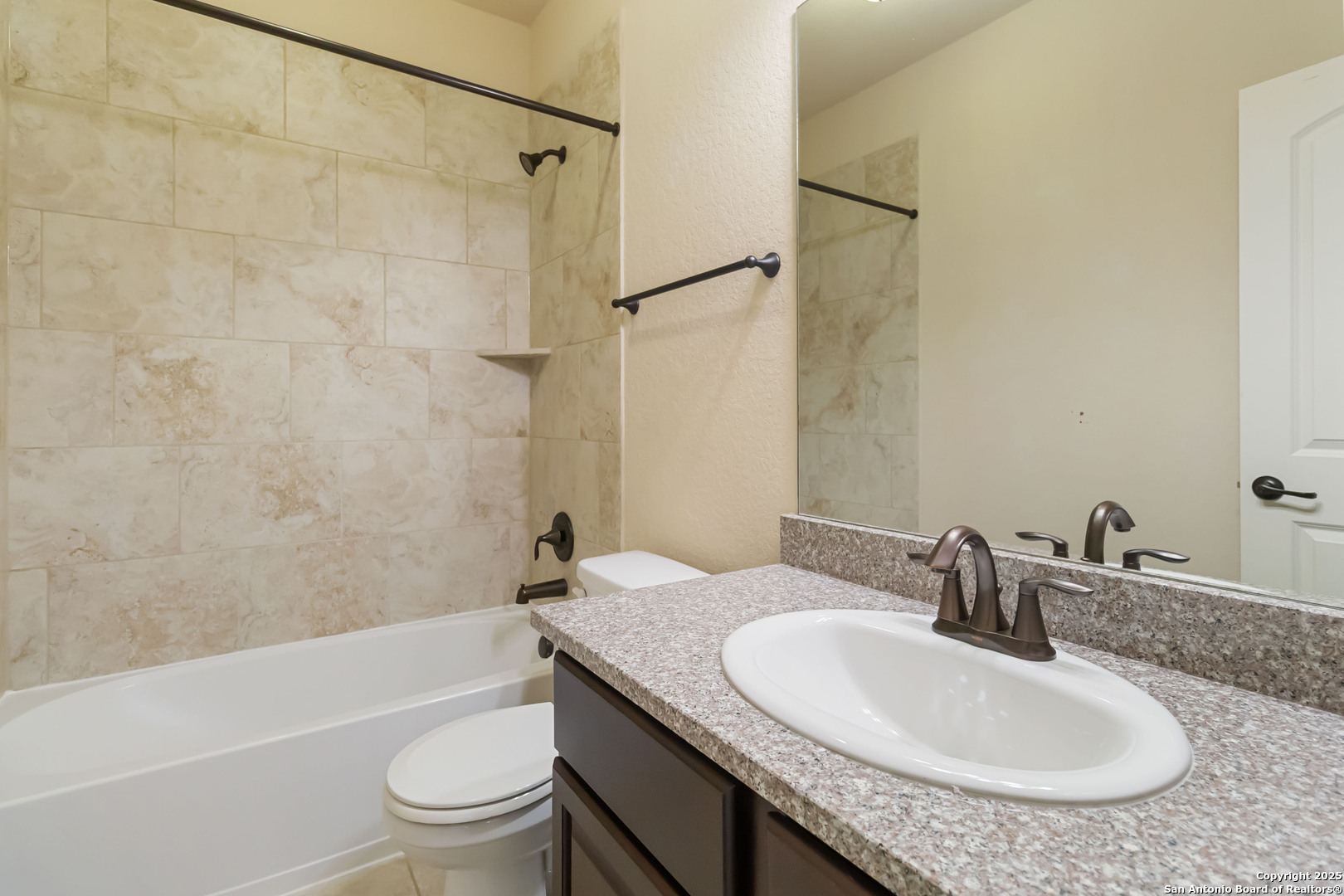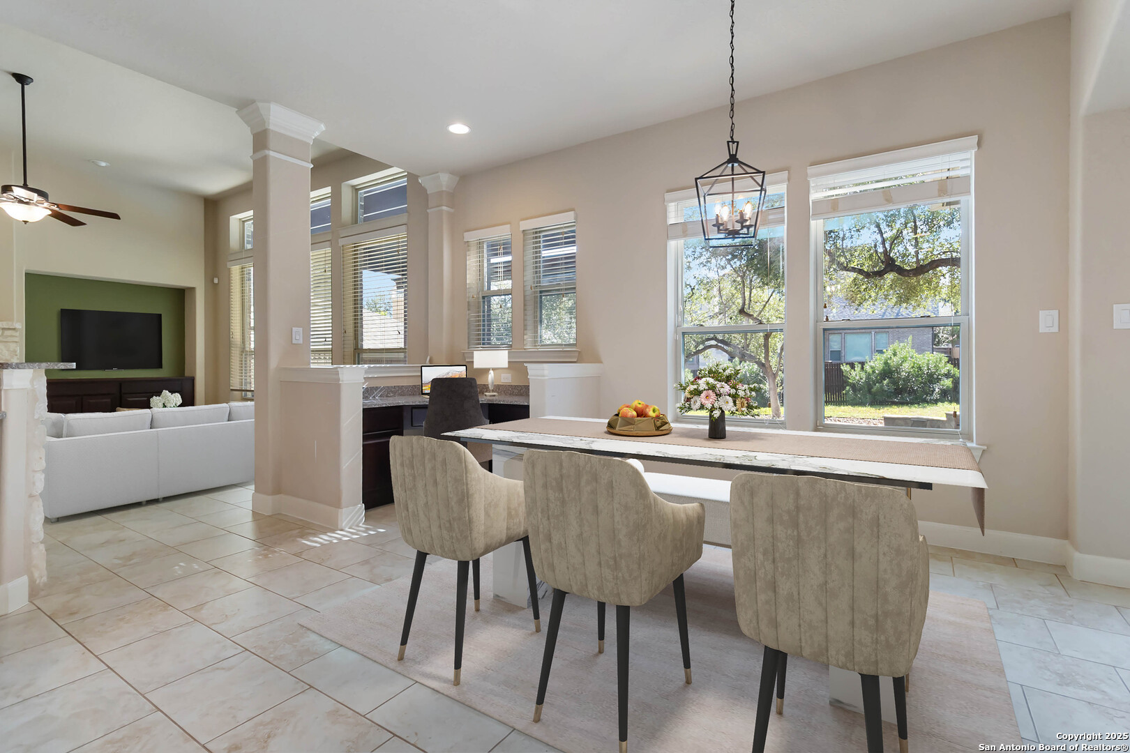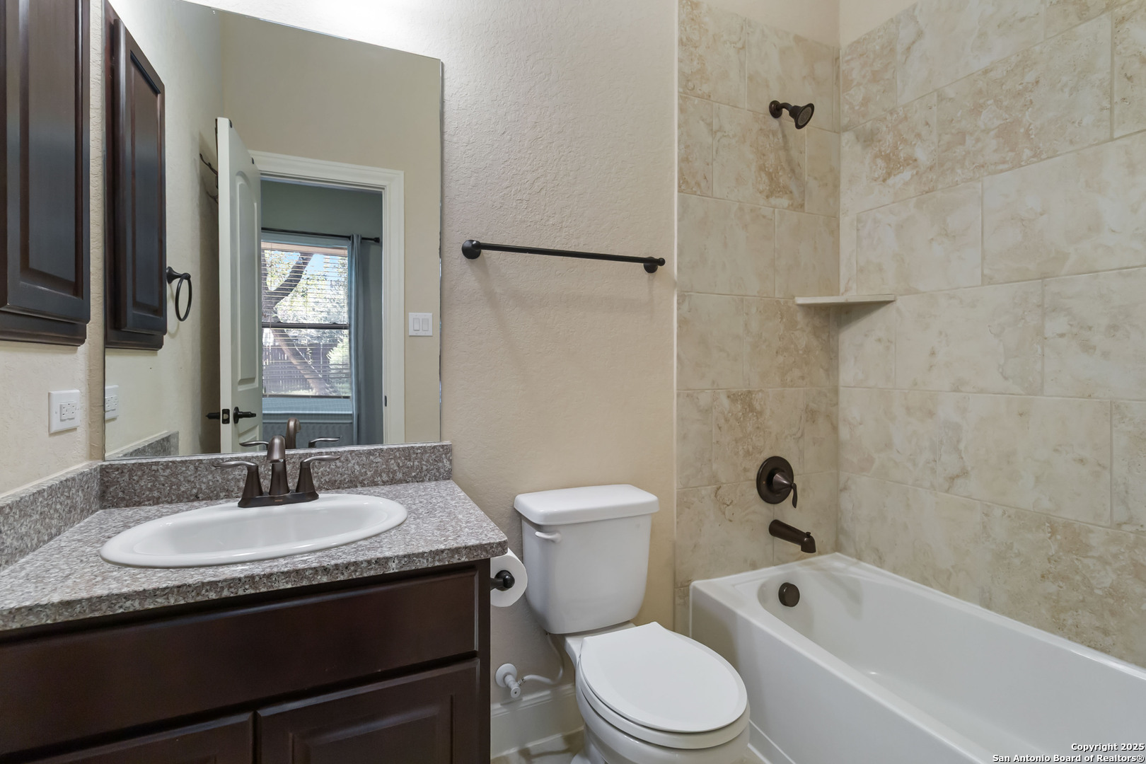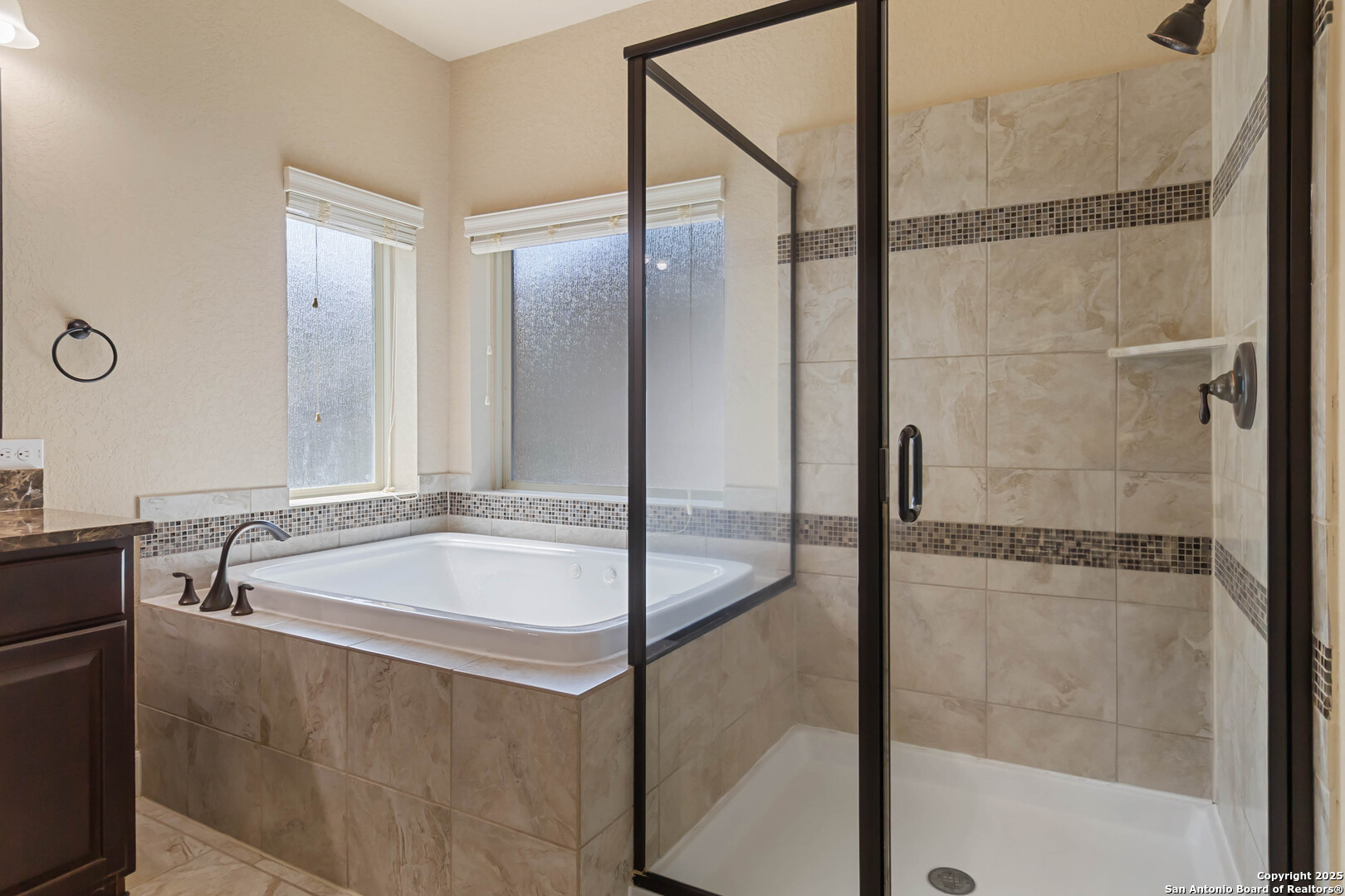 Exquisite Home with Pool, Theater, and Upgrades in Terra Bella - Reagan HS! Welcome to this stunning 5 bedroom, 4.5 bath home located in the highly sought-after Terra Bella community, feeding into Reagan High School. The spacious open-concept floor plan welcomes you with high ceilings, abundant natural light, and a seamless flow perfect for everyday living and entertaining. The living room features a stone fireplace, custom alcoves, and built-in media cabinetry, while the adjacent entryway showcases iron stair railings, tile floors, and a designated home office or study. You'll be captivated by the oversized kitchen, enhanced by pendant lighting, surrounded by granite countertops, generous cabinetry and drawers, and a gas cooktop with built-in oven and a breakfast area! The extra large primary suite offers a tranquil retreat with tons of natural lighting and the primary bathroom features a separate garden tub and shower, double vanity, and a large walk-in closet. Entertain or unwind in the oversized theater room, complete with Epson sound and projection system. The home also has a separate flex room to use as a home gym, playroom or gameroom. The large backyard is truly an oasis, complete with a covered patio with drop-down shades, a sparkling pool, and several dining and lounging areas surrounded by mature trees offering plenty of shade. Additional highlights include a brand-new roof, new dishwasher, and a fully equipped theater system with projector and surround sound. The home features tile and hardwood flooring throughout-carpet in the media room only, offering both style and easy maintenance. Situated in a gated community with controlled access, you'll enjoy added peace of mind. Conveniently located just minutes from shopping, dining, and major highways, this home offers the perfect blend of luxury and accessibility. Don't miss your chance to own this move-in-ready home in the highly desirable Terra Bella community-schedule your private showing today!