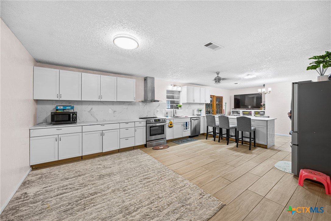 Country living close to town is what you will find with this home at 243 CR 4314 in Lampasas! This ranch style home has 4 very large bedrooms! Upon entering the home you will find two living spaces. One space to the left is being used as a formal dining but is large and could have many options. This room houses the wood burning fireplace. To the right there is another large living space with built in shelves. The kitchen is very large with room for a breakfast table. It also has a large bar area big enough to seat stools on both sides. The back porch is enclosed and has a sink area for outside food prep. Cabinets and countertops as well as appliances have been updated in the kitchen. The master bedroom is very large and has a large master bath with a walk in shower and beautiful tile work. There is also a separate laundry room, and a two car garage. This home sits on over an acre with a large back yard and new privacy fence.