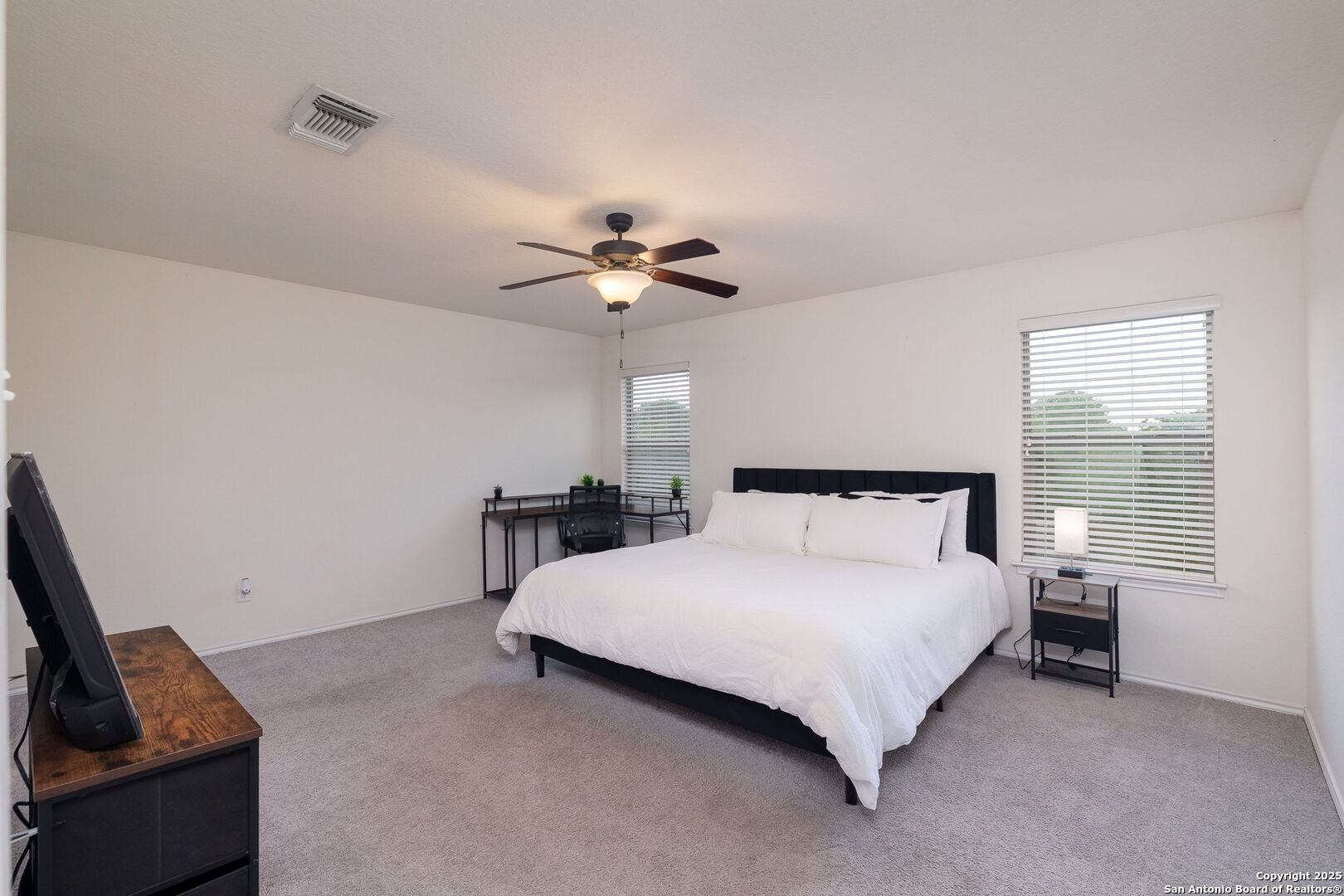 Beautiful 4-bedroom, 2.5-bath home offering versatile living options! Upon entry, you'll find a flexible room that can be used as a fourth bedroom a private home office, along with a convent half bath. The open-concept living area connects seamlessly to the eat-in dining space and kitchen, featuring oversized granite countertops perfect for barstools, black appliances, and plenty of cabinet storage. Upstairs includes a spacious game room, two secondary bedrooms, and a shared full bath. The primary suite offers double vanities, a tub/shower combo, and a generous walk-in closet. The private backyard is ideal for barbecues and gatherings, a great space to relax or entertain. Centrally located, just minutes from Brooks City Base, downtown San Antonio, Southtown, shopping, and major highways for an easy commute. Schedule your showing today!