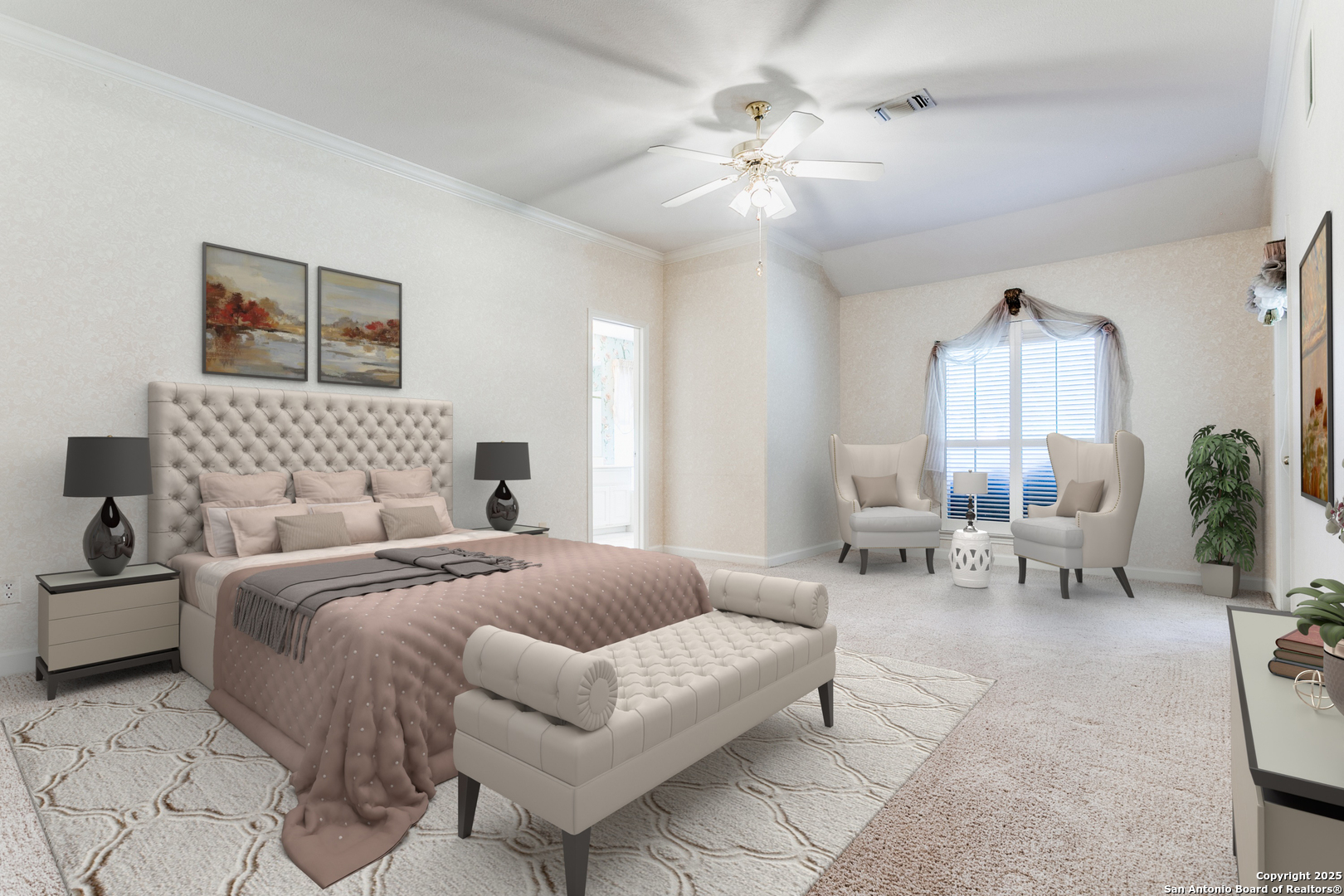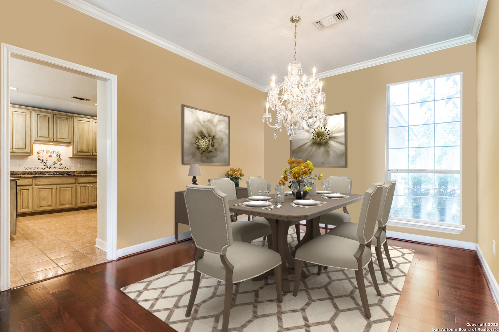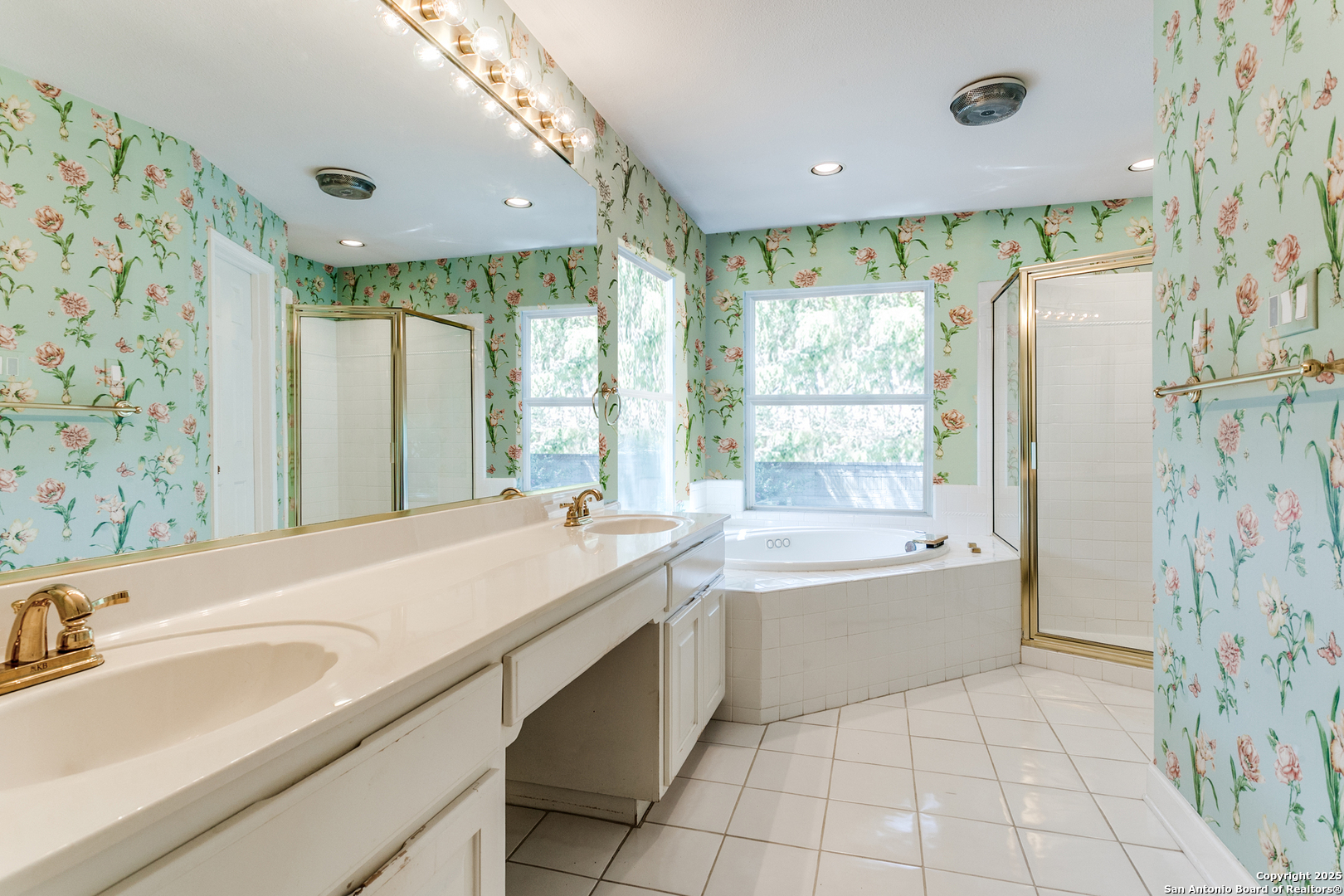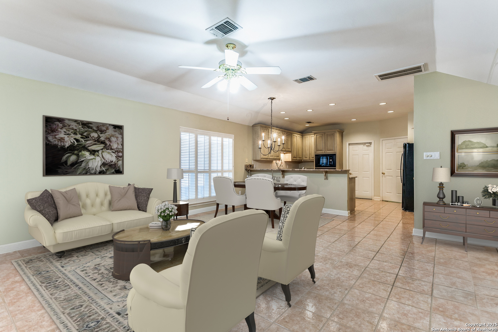 Custom, one owner Mann home in the desirable Canyon Oaks Estates neighborhood. One story stucco home on a level lot with mature Oak trees and landscaping. Keith Zars constructed and weekly maintained pool in the back yard with adjacent covered patio for relaxing year-round. Private backyard, with no immediate back neighbors, on a 30 mph, low traffic, residential street. Inside enjoy multiple living spaces with a formal living room plus a family room with a wood/gas fireplace. Three eating areas include a formal dining room, breakfast area and breakfast bar. The newly remodeled kitchen features granite countertops, custom cabinets, built-in oven and cooktop. All blinds are included plus plantation shutters in the family room and exterior solar shades. The primary suite with patio access features a spacious walk-in closet, double vanity, a separate shower and jetted garden tub. Two secondary bedrooms share a bathroom. Easy access to retail, restaurants, 281 and 1604 plus SA International Airport. No HOA. Seller is offering $1500 towards repairs of buyer's choice.