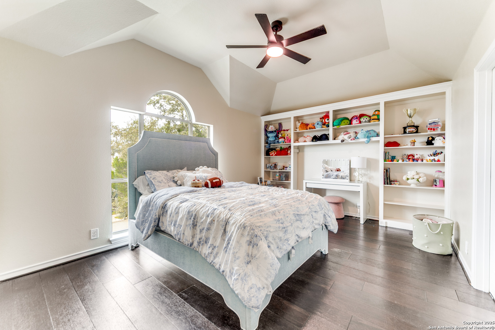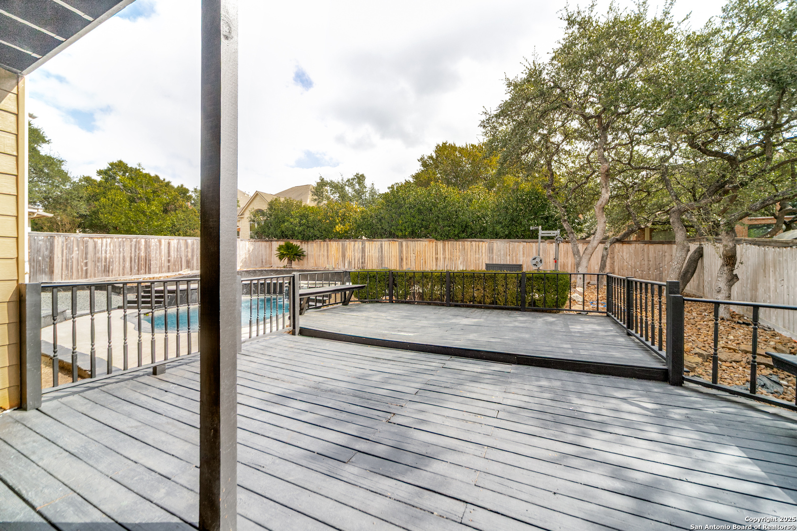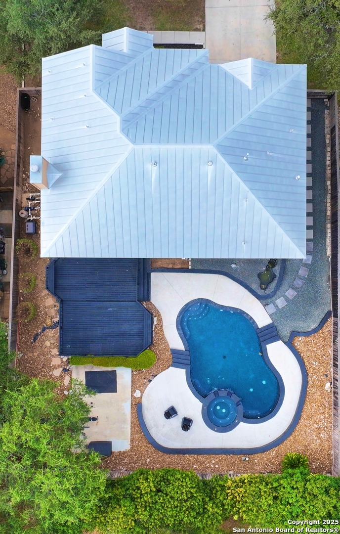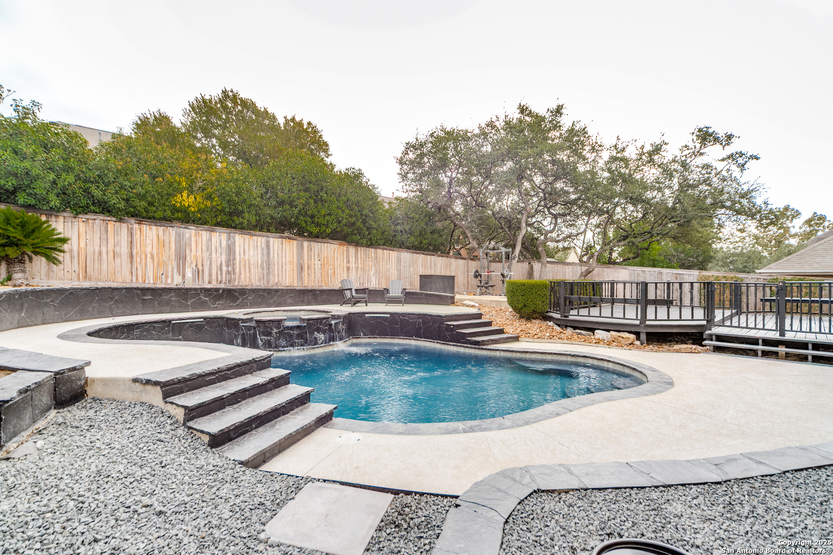 Experience luxury living in this impressive home located just minutes from Hwy 281! This spacious residence offers a perfect blend of modern elegance and comfort, featuring stunning contemporary chandeliers and stylish decor throughout. Step inside and be captivated by the rich, scratch-resistant hardwood floors that flow through the open living areas. With four large bedrooms, three full bathrooms, and a generous 23x16 game room, there's plenty of space for everyone to relax and unwind. Outside, enjoy resort-style living in your private oasis - a heated pool and spa surrounded by mature oak trees and complemented by a massive 28x23 deck, ideal for entertaining or simply soaking up the tranquility year-round. This home truly has it all - elegance, comfort, and the perfect setting to enjoy everyday luxury.