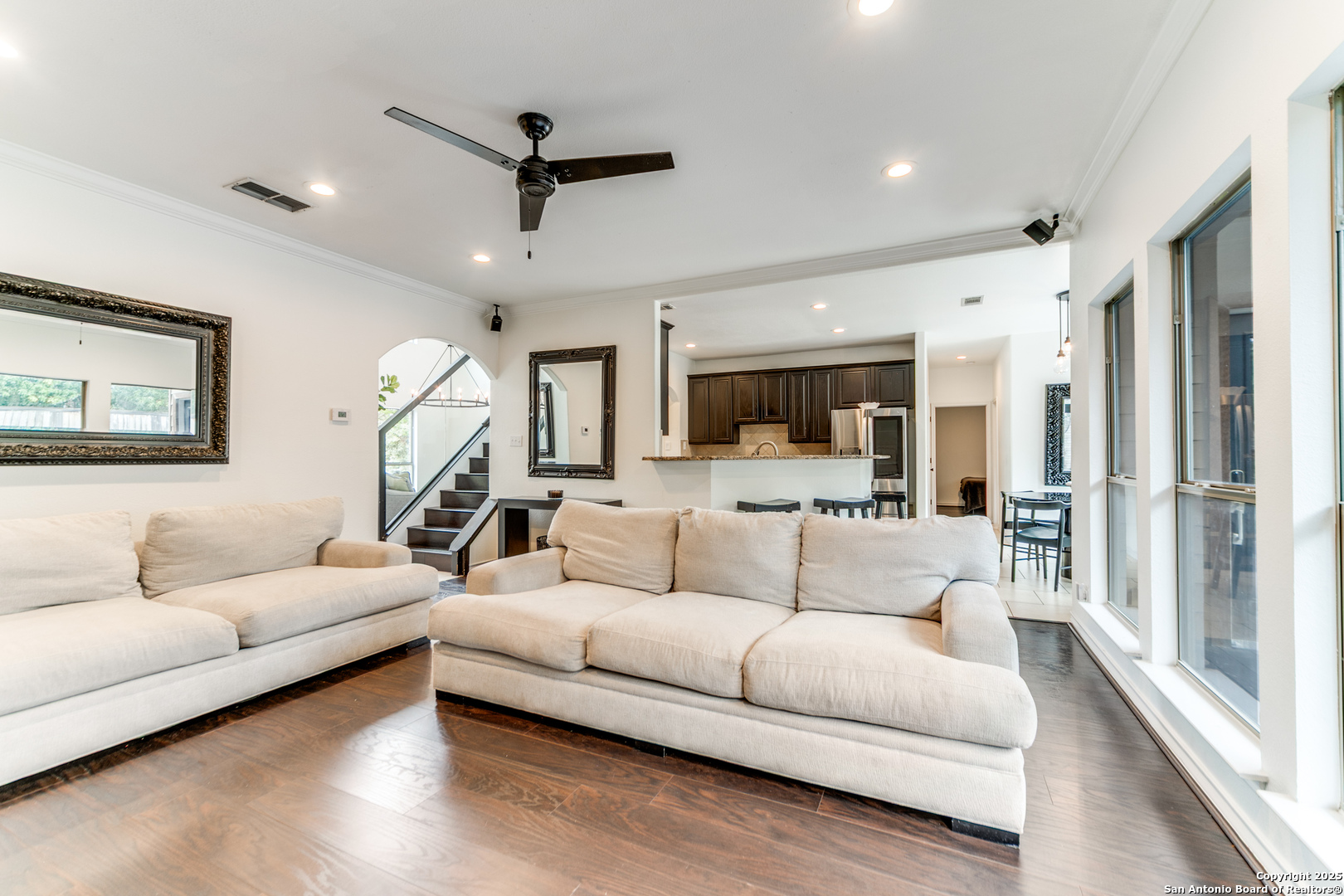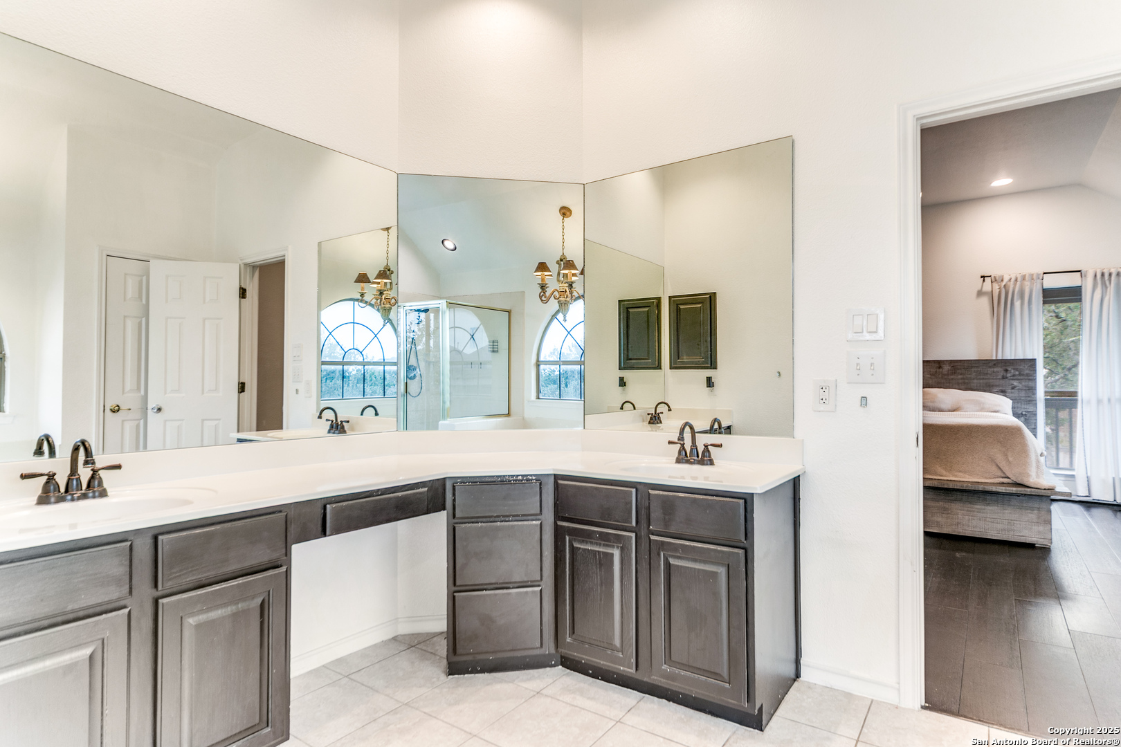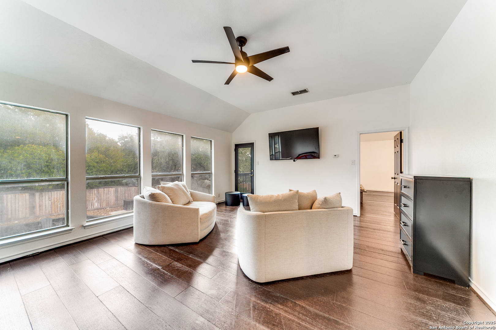 Experience luxury living in this impressive home located just minutes from Hwy 281! This spacious residence offers a perfect blend of modern elegance and comfort, featuring stunning contemporary chandeliers and stylish decor throughout. Step inside and be captivated by the rich, scratch-resistant hardwood floors that flow through the open living areas. With four large bedrooms, three full bathrooms, and a generous 23x16 game room, there's plenty of space for everyone to relax and unwind. Outside, enjoy resort-style living in your private oasis - a heated pool and spa surrounded by mature oak trees and complemented by a massive 28x23 deck, ideal for entertaining or simply soaking up the tranquility year-round. This home truly has it all - elegance, comfort, and the perfect setting to enjoy everyday luxury.