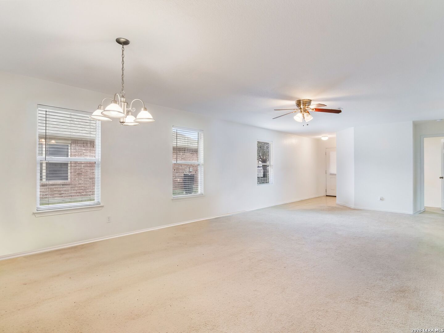 Location, location, location!! Just off of I-35 in Selma and located in the Schertz, Cibolo Universal City ISD! Cute 1 story home with 3 bedrooms and 2 bathrooms. Lots of open green space behind the home! Open floor plan with oversized living room that is open to the dining and kitchen areas. Covered back patio and cute front porch too! The owners retreat has a recessed ceiling, large closet and a separate soaking tub and shower! Neighborhood playground and walking trail with exercise equipment to use along the way. Close to I-35, 1604, the Forum Shopping Center, IKEA, Randolph AFB, restaurants, shopping and more! Carpets freshly cleaned. Come see this great home in such a convenient location and make it yours.