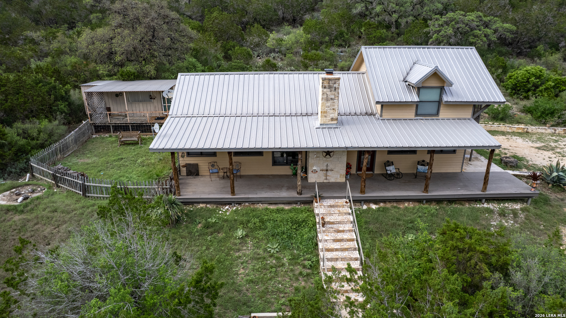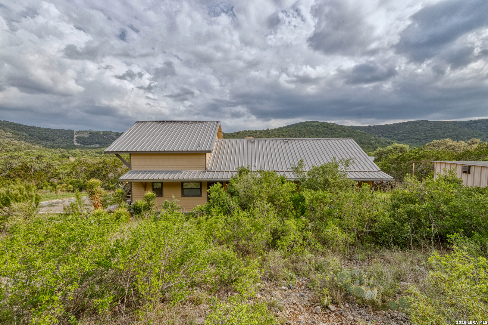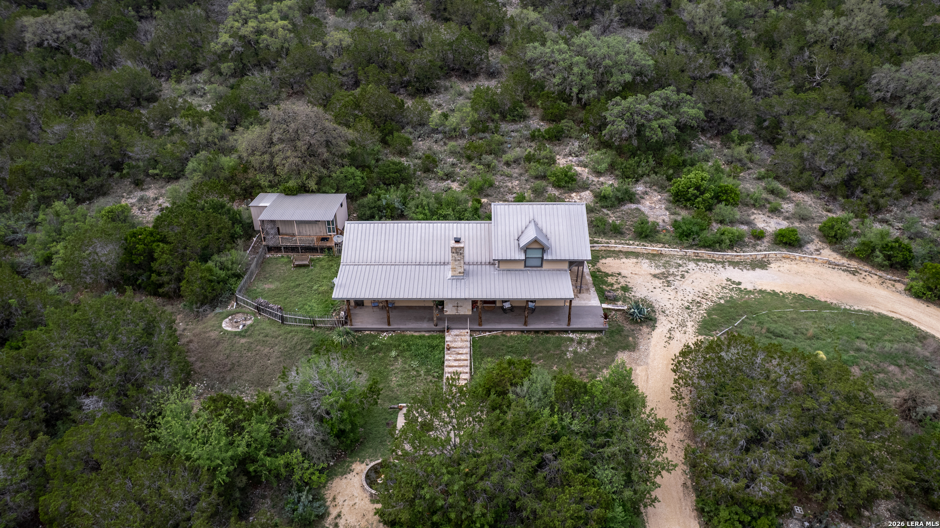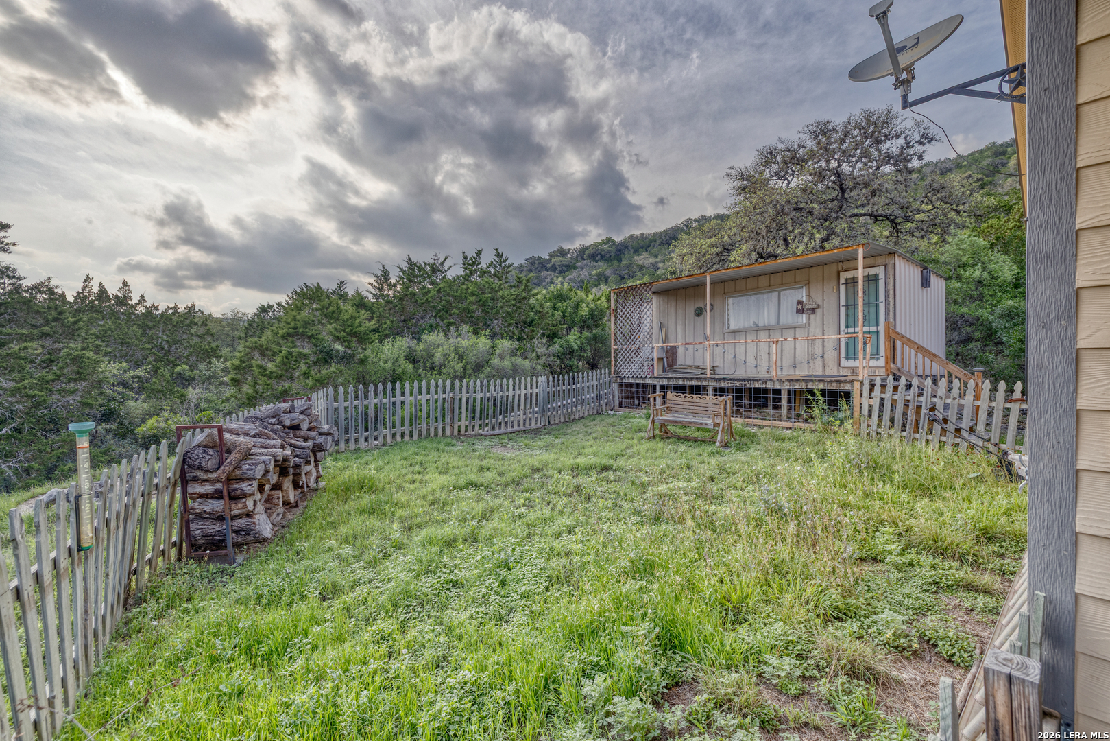Set beneath a canopy of mature trees, this 7+ acre unrestricted Concan property offers the privacy and natural beauty buyers are searching for. Thoughtfully designed, the home features three private bedroom suites and an open, inviting living area centered around a wood-burning fireplace, creating a space that feels both comfortable and intentional. A wide covered porch overlooks the gently rolling land, leading to a peaceful outdoor setting perfect for evenings under the stars. A separate structure behind the home provides flexibility for guest space, a bunk room, or a private retreat. The property is well-equipped with a storage tank system connected to two wells, approximately 800 ft and 100 ft deep, with a switch system in place, along with water softener and a charcoal filtration system, offering added reliability and convenience. Unrestricted, hunting permitted, and located just minutes from the Y and the Frio River, this is a rare opportunity to own a private, scenic property with the freedom to make it your own.