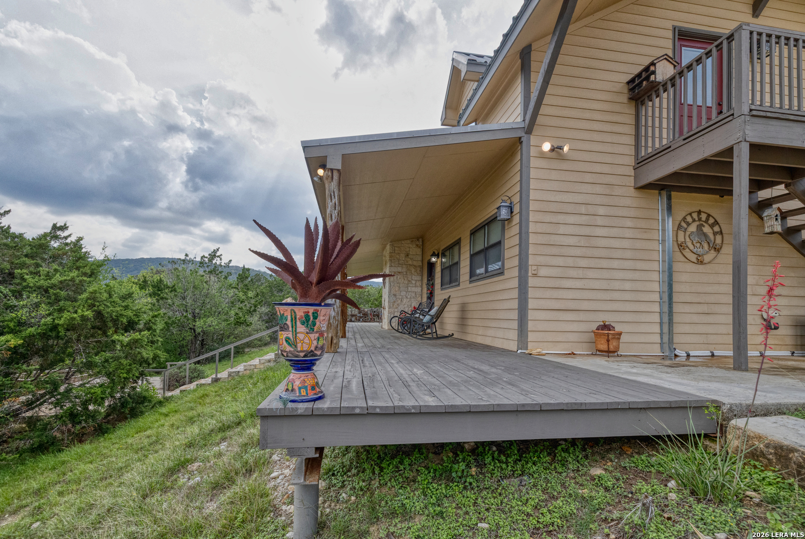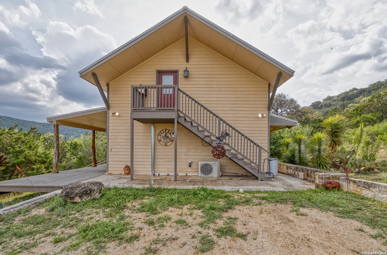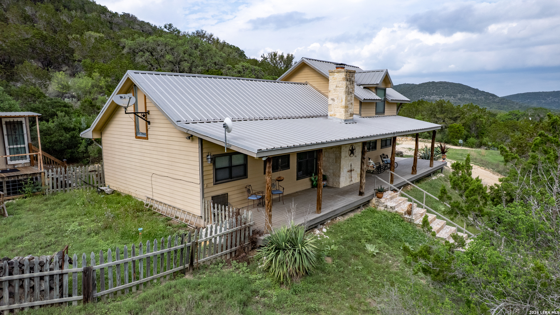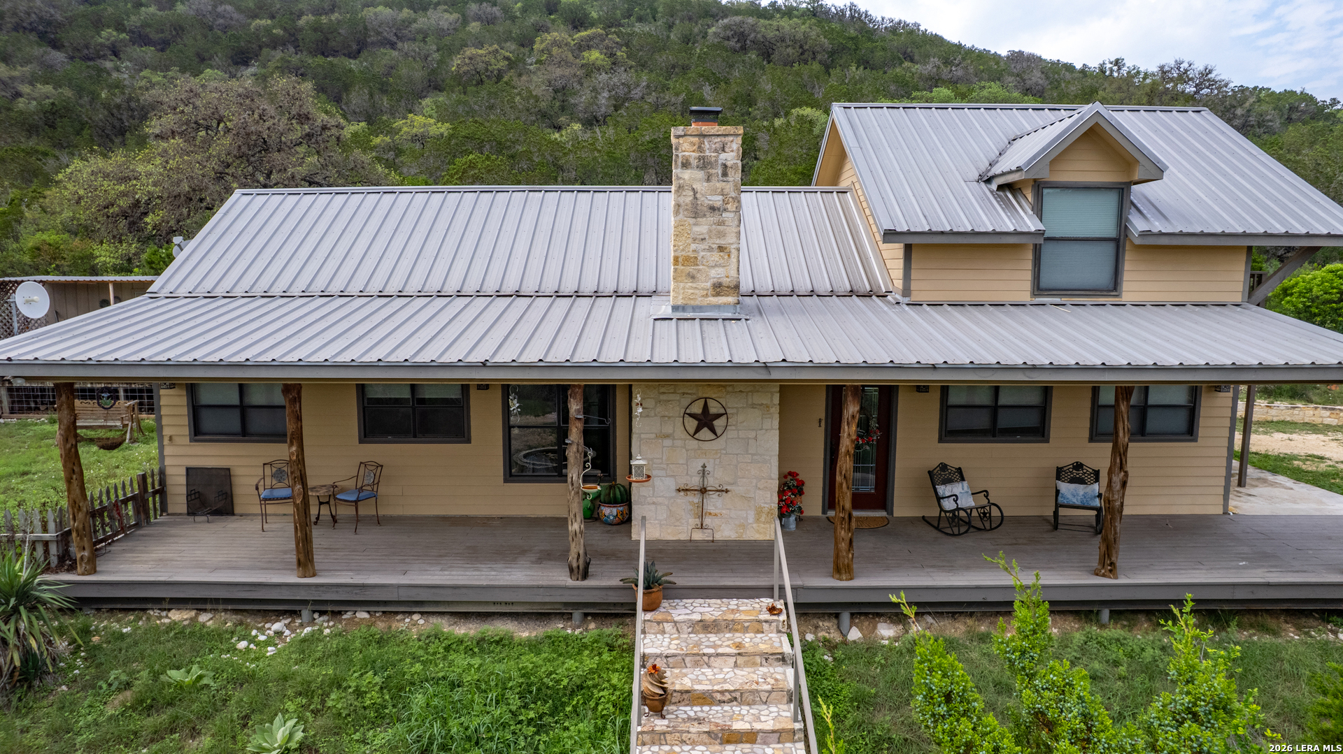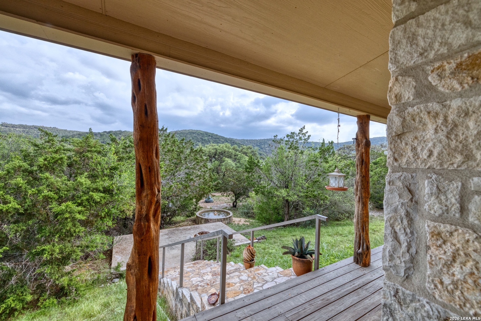 Set beneath a canopy of mature trees, this 7+ acre unrestricted Concan property offers the privacy and natural beauty buyers are searching for. Thoughtfully designed, the home features three private bedroom suites and an open, inviting living area centered around a wood-burning fireplace, creating a space that feels both comfortable and intentional. A wide covered porch overlooks the gently rolling land, leading to a peaceful outdoor setting perfect for evenings under the stars. A separate structure behind the home provides flexibility for guest space, a bunk room, or a private retreat. The property is well-equipped with a storage tank system connected to two wells, approximately 800 ft and 100 ft deep, with a switch system in place, along with water softener and a charcoal filtration system, offering added reliability and convenience. Unrestricted, hunting permitted, and located just minutes from the Y and the Frio River, this is a rare opportunity to own a private, scenic property with the freedom to make it your own.