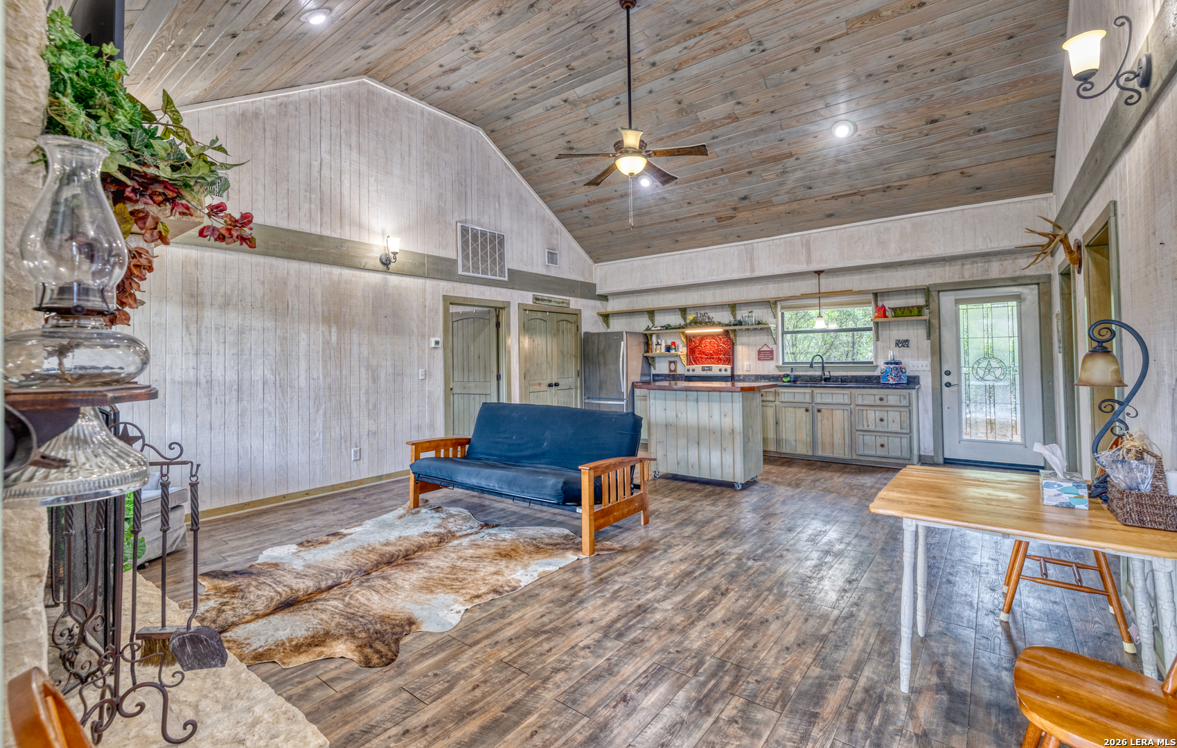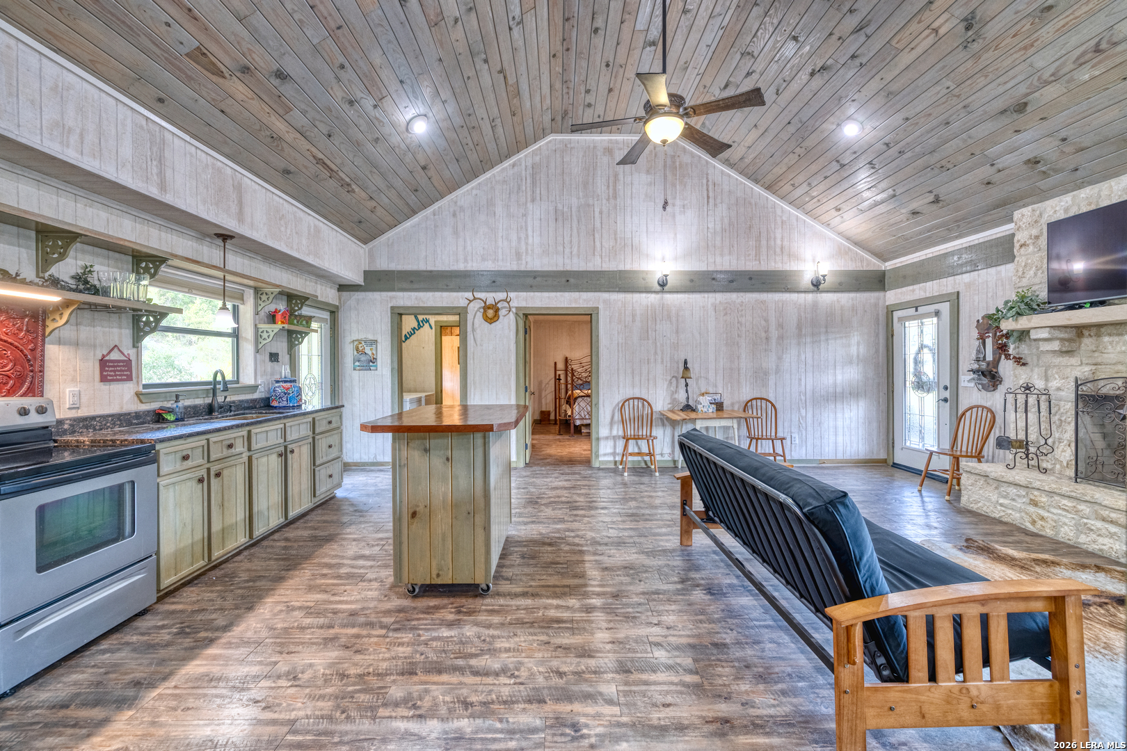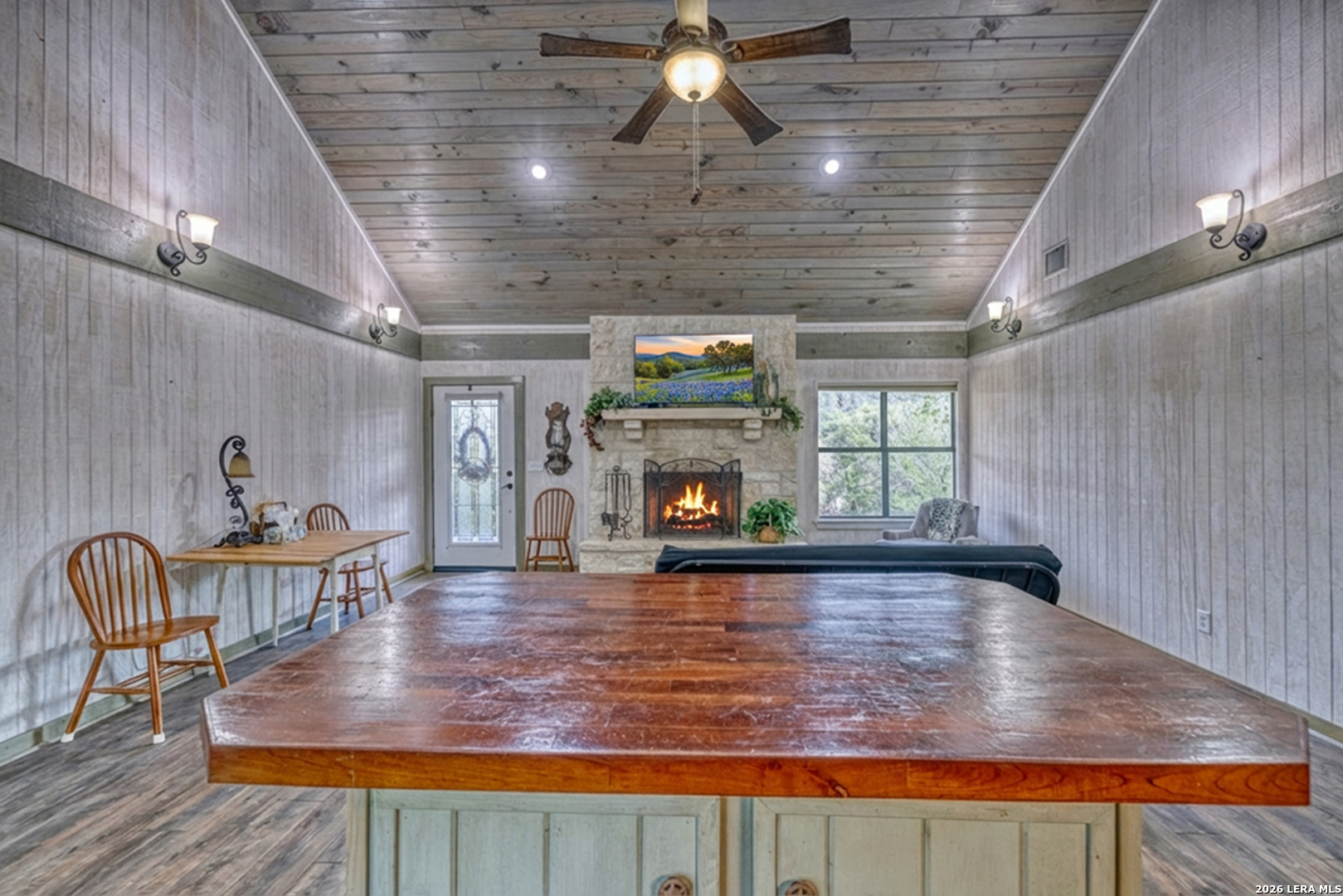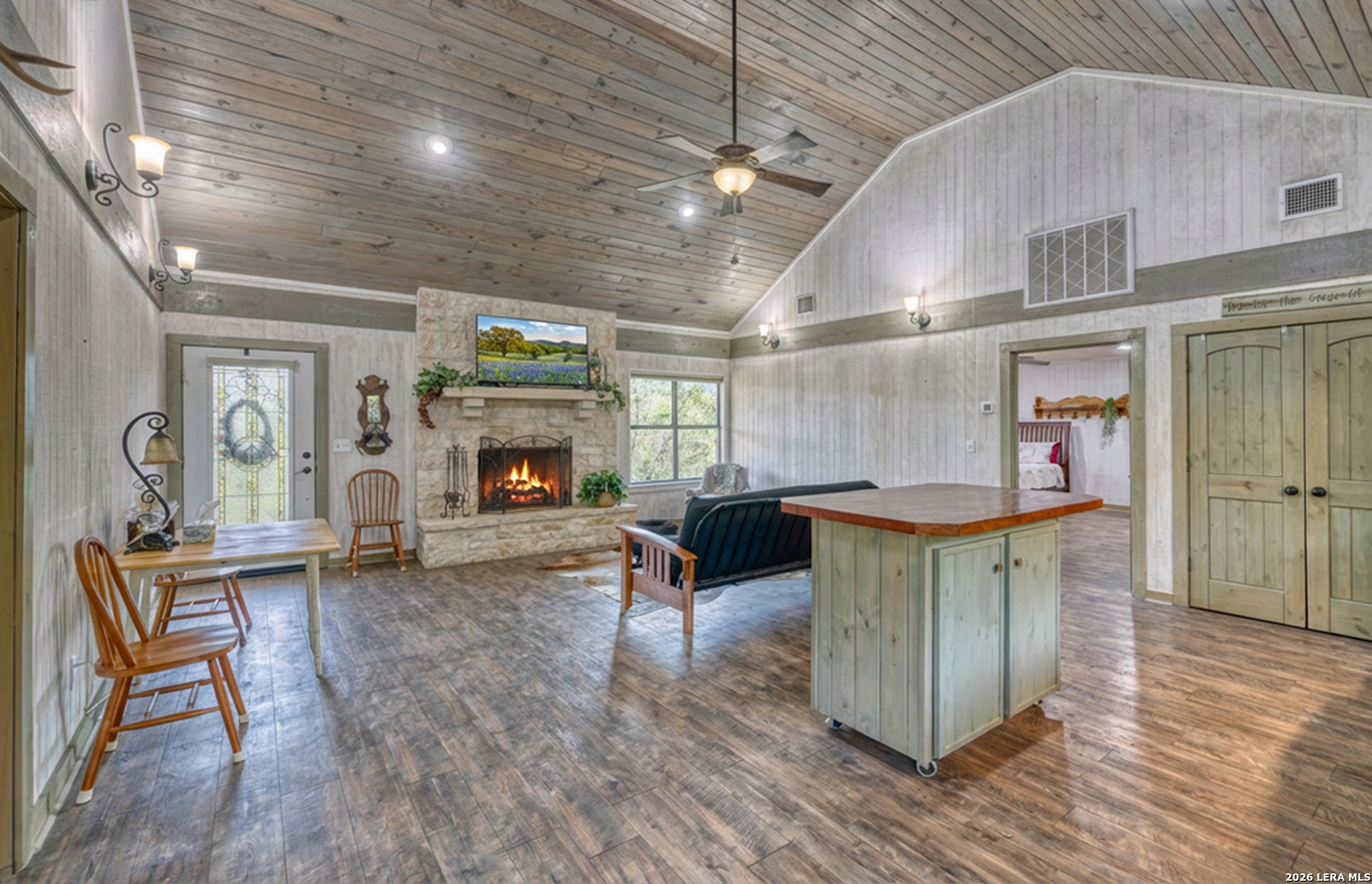 Set beneath a canopy of mature trees, this 7+ acre unrestricted Concan property offers the privacy and natural beauty buyers are searching for. Thoughtfully designed, the home features three private bedroom suites and an open, inviting living area centered around a wood-burning fireplace, creating a space that feels both comfortable and intentional. A wide covered porch overlooks the gently rolling land, leading to a peaceful outdoor setting perfect for evenings under the stars. A separate structure behind the home provides flexibility for guest space, a bunk room, or a private retreat. The property is well-equipped with a storage tank system connected to two wells, approximately 800 ft and 100 ft deep, with a switch system in place, along with water softener and a charcoal filtration system, offering added reliability and convenience. Unrestricted, hunting permitted, and located just minutes from the Y and the Frio River, this is a rare opportunity to own a private, scenic property with the freedom to make it your own.