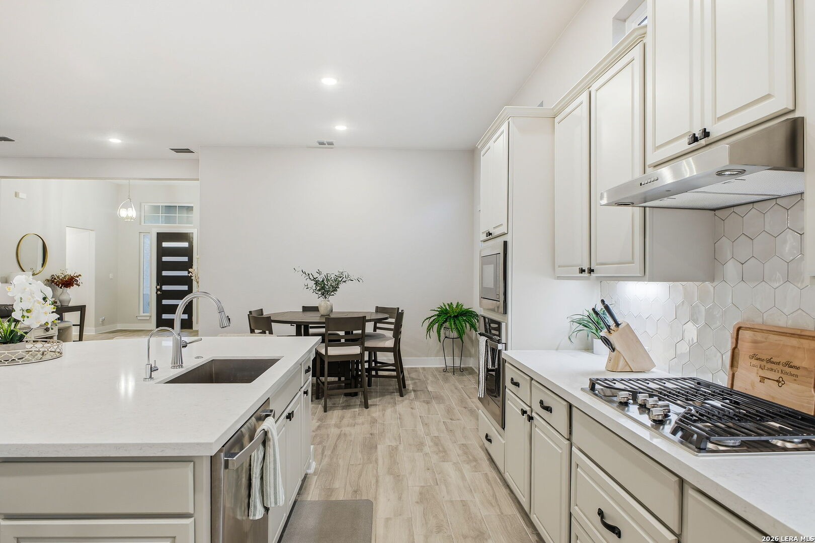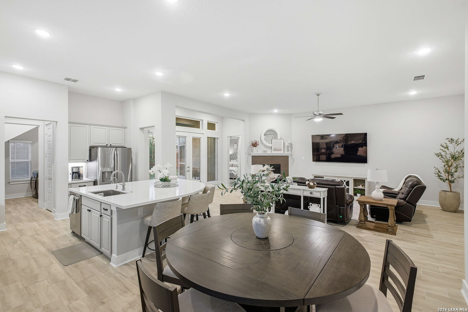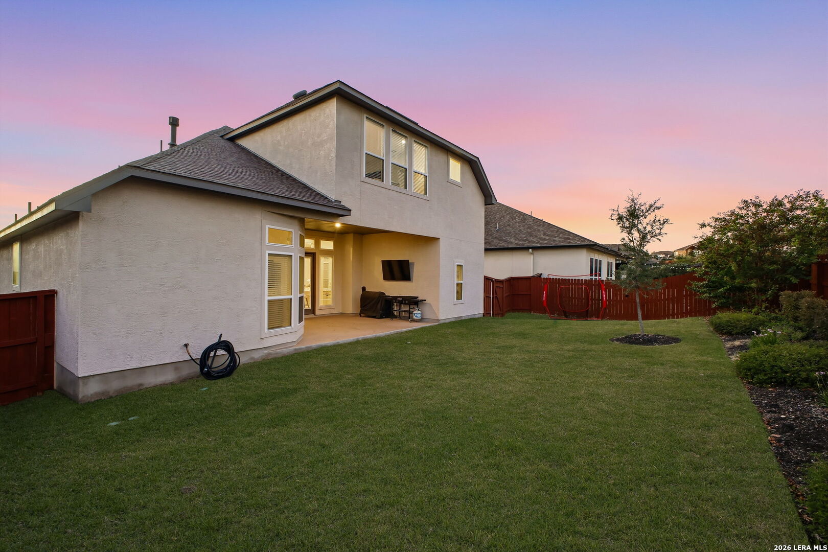 Stunning two-story home featuring 4 bedrooms, 3.5 baths, an office, and a game room, offering an open-concept design with soaring ceilings and custom finishes throughout. The eat-in kitchen showcases an impressive stove/range, ample cabinetry, oversized island, and generous storage, opening to a spacious great room featuring a fireplace perfect for relaxing. The primary suite offers a large walk-in closet, a spa-like bath with freestanding tub, and tall ceilings filled with natural light. The main level includes two additional bedrooms, a full bath, office, and half bath, while the upper level is ideal for guests with a game room, full bath, and fourth bedroom. All bedrooms include walk-in closets. The backyard is an entertainer's dream with a large covered patio perfect for gatherings. Enjoy the incredible Cibolo Canyons lifestyle, featuring multiple pools, a kiddie splash area, playscapes, fitness centers, clubhouses, and scenic trails. Ideally located near TPC San Antonio, the JW Marriott Hill Country Resort, and top-rated NEISD schools including Johnson High School. Convenient access to Loop 1604, Hwy 281, shopping, dining, and the airport makes everyday living a breeze.