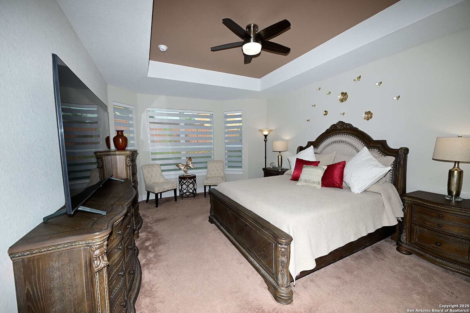 Ultra clean and liked a new Original owner home in the luxury Cibolo canyons (gated community) offering unique walking trails (2 miles forest trails), 2 ammenity centers, golf club TPC community. This custom home was created following the model home with all the high end features plus more options like connections for electric cars on garage. Oversize cornmer lot, double high garage with extra storage space and extencion. Catedral style High ceilings with wood details and high ceilings on the entrance with luxury details, extra windows on front door to give more natural light, high windows and extra windows on the living and dinning area, kitchen island high luxury upgrade cabinests on kitchen and bathrooms, Luxury main beddrom with bay windows and luxury main bathroom with separate shower custom made, big walking closet. This house was built with more of $60,000 on upgrades incluiding the big corner lot. This house was used as vacational second home only by the owners with minumun use.