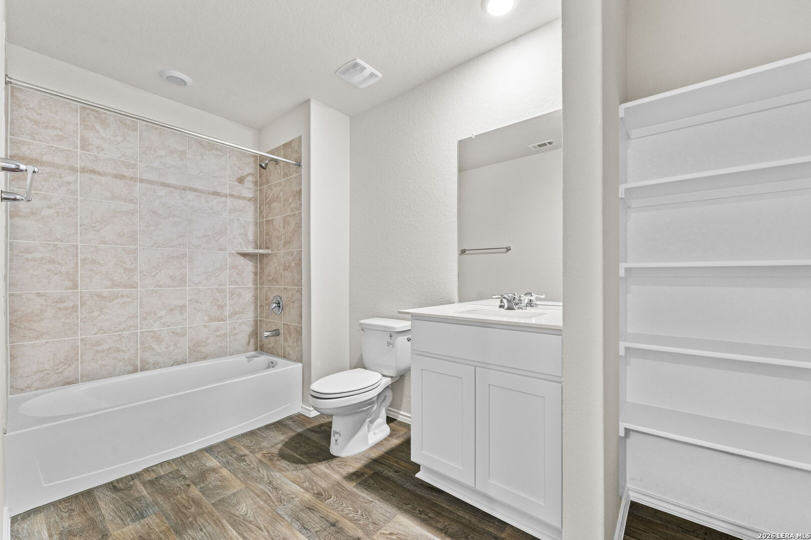 Step into The Grace floor plan in Redbird Ranch in San Antonio, TX. This home showcases a full yard landscaping and irrigation and a 2-car garage. Inside this 4 bedroom, 2.5 bathroom home you will find 1952 square feet of living space designed to meet your needs. The arched front patio opens to a grand foyer which then leads to a spacious living room. The living room blends seamlessly into the kitchen and dining area in an open concept floorplan. Your kitchen is built for the ultimate home chef and offers quartz counter tops, stainless steel appliances, and a kitchen island overlooking the living room. Don't forget a deep, single basin kitchen sink for convenience and ease. The staircase leads to the upstairs main bedroom suite, all secondary bedrooms, and your utility room. The Grace floor plan is ideal if you want to keep your entertaining space and private space separate. The upstairs main bedroom has an attached bathroom that includes a tiled walk-in shower, separate water closet and plenty of storage space with built-in shelving and a grand walk-in closet. Additional features of this home include sheet vinyl flooring in the entry, living room, and all wet areas, quartz countertops in all bathrooms and our HOME IS CONNECTED base package. Using one central hub that talks to all the devices in your home, you can control the lights, thermostat and locks, all from your cellular device. *Seller is willing to assist with closing costs or a rate buy-down through preferred lender with an acceptable offer. *