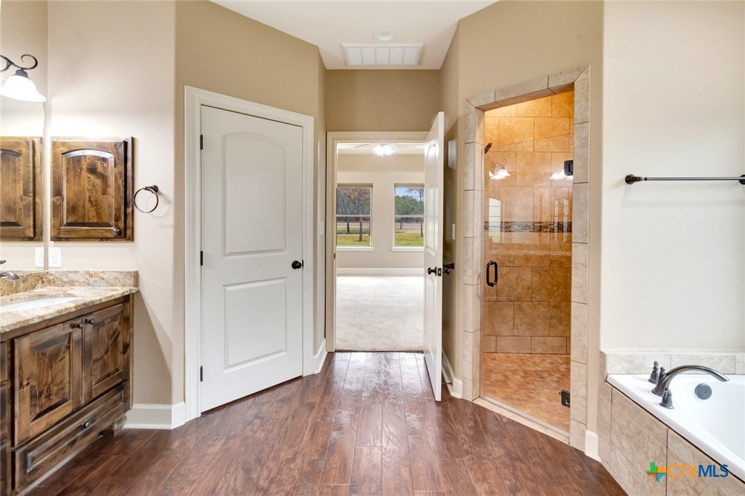 Experience exceptional craftsmanship, thoughtful design, and refined comfort in this stunning custom craftsman home. Built with enduring quality and enhanced with high-end upgrades, this approximately 3,000 square foot stone and brick residence offers a seamless blend of elegance, functionality, and modern convenience. Inside, soaring ceilings and an open-concept layout connect the kitchen, living, dining, and breakfast areas—creating a warm yet sophisticated space ideal for entertaining and everyday living. Granite countertops throughout, a quiet high-performance dishwasher, and flexible gas or electric cooking options elevate the kitchen experience. A private office with custom built-ins, a spacious utility room, and abundant storage add to the home’s thoughtful design. The living area is anchored by a striking stone fireplace with gas starter, while upstairs you’ll find a dedicated home theater space and two walk-in attic areas . Energy-efficient features include a 3-zone HVAC system with two high-SEER units, Tech-Shield roof decking, enhanced insulation, and fiber-ready internet capability. Designed for peace of mind, the home includes a whole-house security system covering doors and windows, keypad access points, and an automatic 14kW generator to power the home during outages. Outdoor living is equally impressive. Enjoy epoxy-finished front and back porches with beadboard ceilings, an expanded rear patio, full guttering, French drains, and a multi-zone sprinkler system with pond fill. The property also features a pond stocked for natural algae control, underground pet fencing (controller not included), and private gated access. A standout feature is the fully finished 2,000± square foot shop with a restroom, sink, and workspace. This home offers a rare combination of luxury finishes, energy efficiency, and versatility—crafted for those who value quality, comfort, and exceptional living.