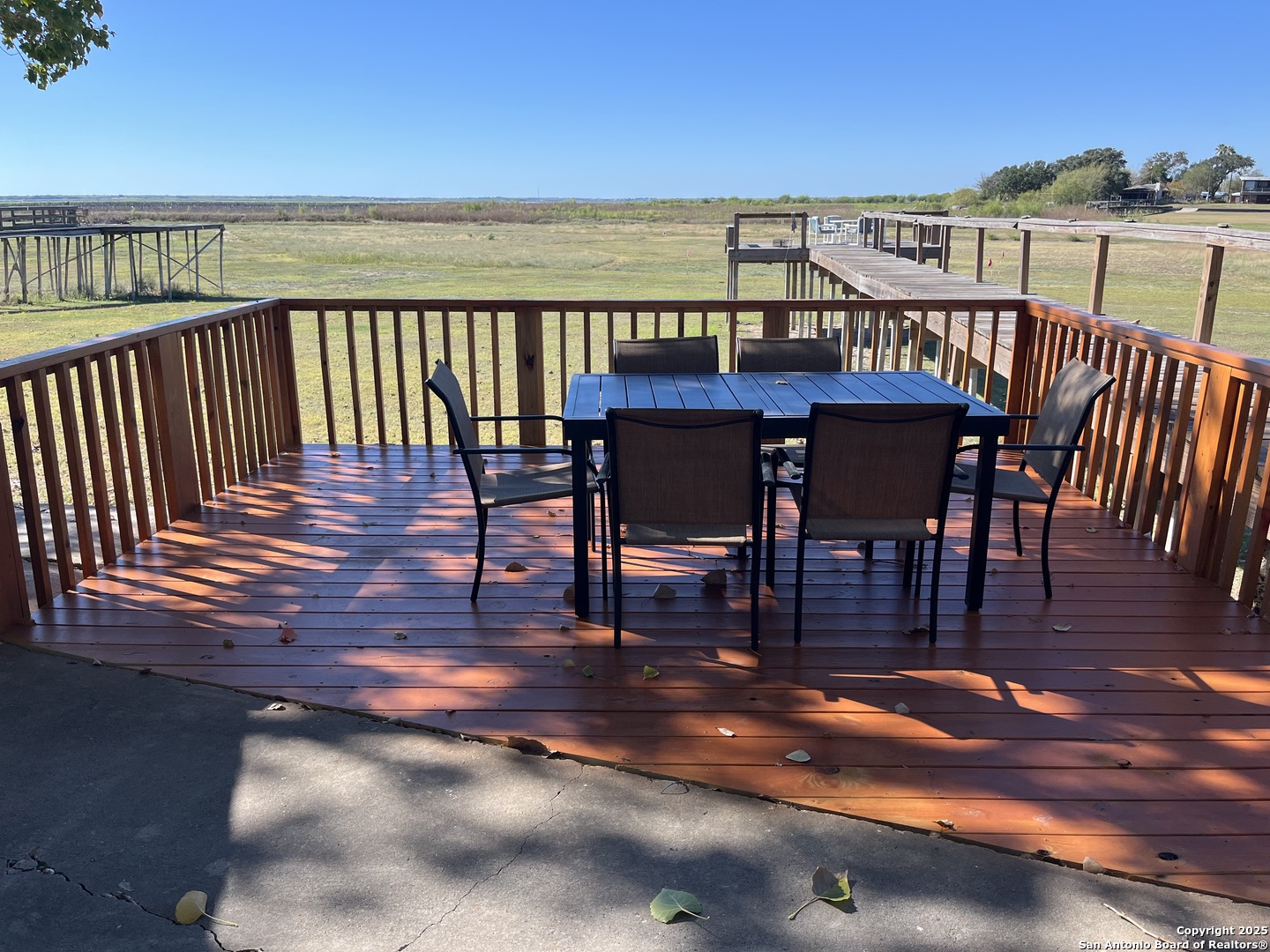Escape to lakeside tranquility with this beautifully updated Corpus Christi Lake home. Thoughtfully remodeled in 2024 with new drywall, cabinetry, appliances, fixtures, paint, hardware, well equipment, and a water softener, this home blends modern comfort with scenic charm. Inside, a flexible room off the entry and kitchen can serve as a formal living area, dining room, or home office. The spacious main living room flows into a cozy dining area, both offering stunning views of mature trees and picturesque sunsets. The downstairs primary suite features patio access to a screened-in porch for enjoying the breeze. The kitchen boasts sleek hard-surface countertops, a built-in oven and microwave, smooth cooktop, vent hood, wine fridge, dishwasher, and a large walk-in pantry. Upstairs, guests will enjoy their own private suite and full bath. The home has a water well with a chlorinator, beautifully landscaped, new fixtures and freshly painted. The boat house has blown insulation inside and is complete with a loft for storage. A generous laundry/mudroom and half bath are conveniently located near the garage and entry. Outside, relax on one of two patios-one screened, one open-or stroll down the pier for a peaceful lakeside retreat.
