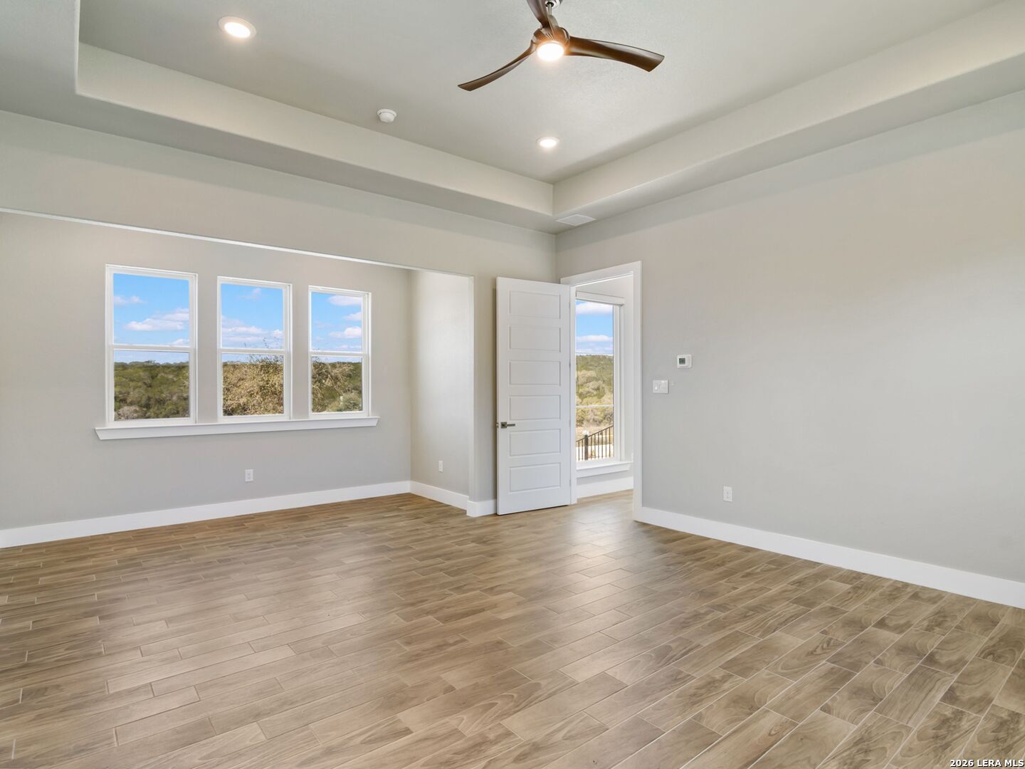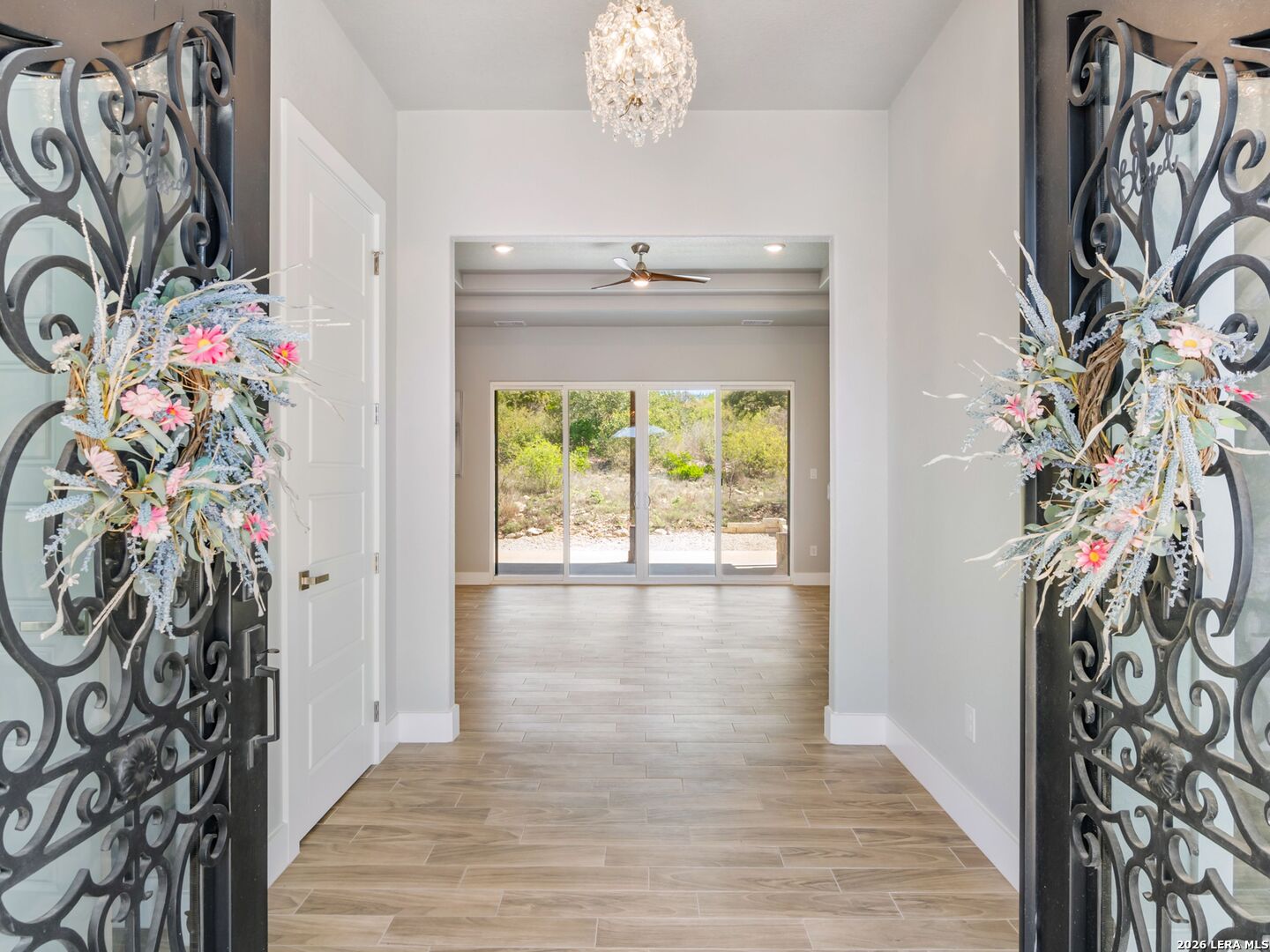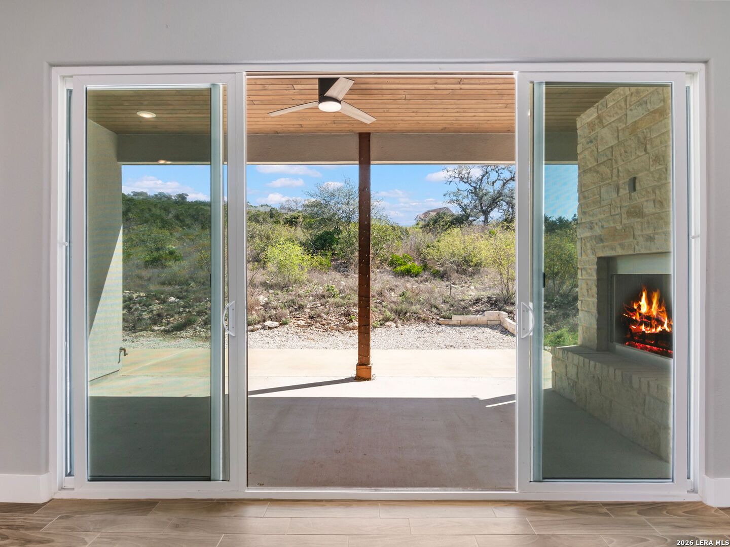 Set on 2 acres in Summit Ridge, this well appointed residence offers a balance of scale, comfort, and everyday livability just minutes from Medina Lake. A pillared entrance, circular drive, and all masonry stucco and stone exterior create a strong first impression, while the oversized side entry three car garage adds both function and presence. Inside, the floor plan is designed to accommodate both daily living and entertaining, with a dedicated study, media room, and thoughtfully arranged living spaces throughout. The kitchen is centered around an oversized quartz island with counter seating, complemented by professional grade appliances and an oversized side by side refrigerator. Wood look tile flooring carries through the main living areas, adding warmth and durability. The primary suite offers a private retreat with a tray ceiling, sitting area, and a spacious bath featuring a garden tub, separate vanities, separate shower, and walk in closets. Secondary spaces are equally well considered, including a game room with a beverage refrigerator and microwave. Outdoor living is just as inviting, with a covered patio, integrated speakers, and a floor to ceiling stacked stone fireplace overlooking the expansive homesite.