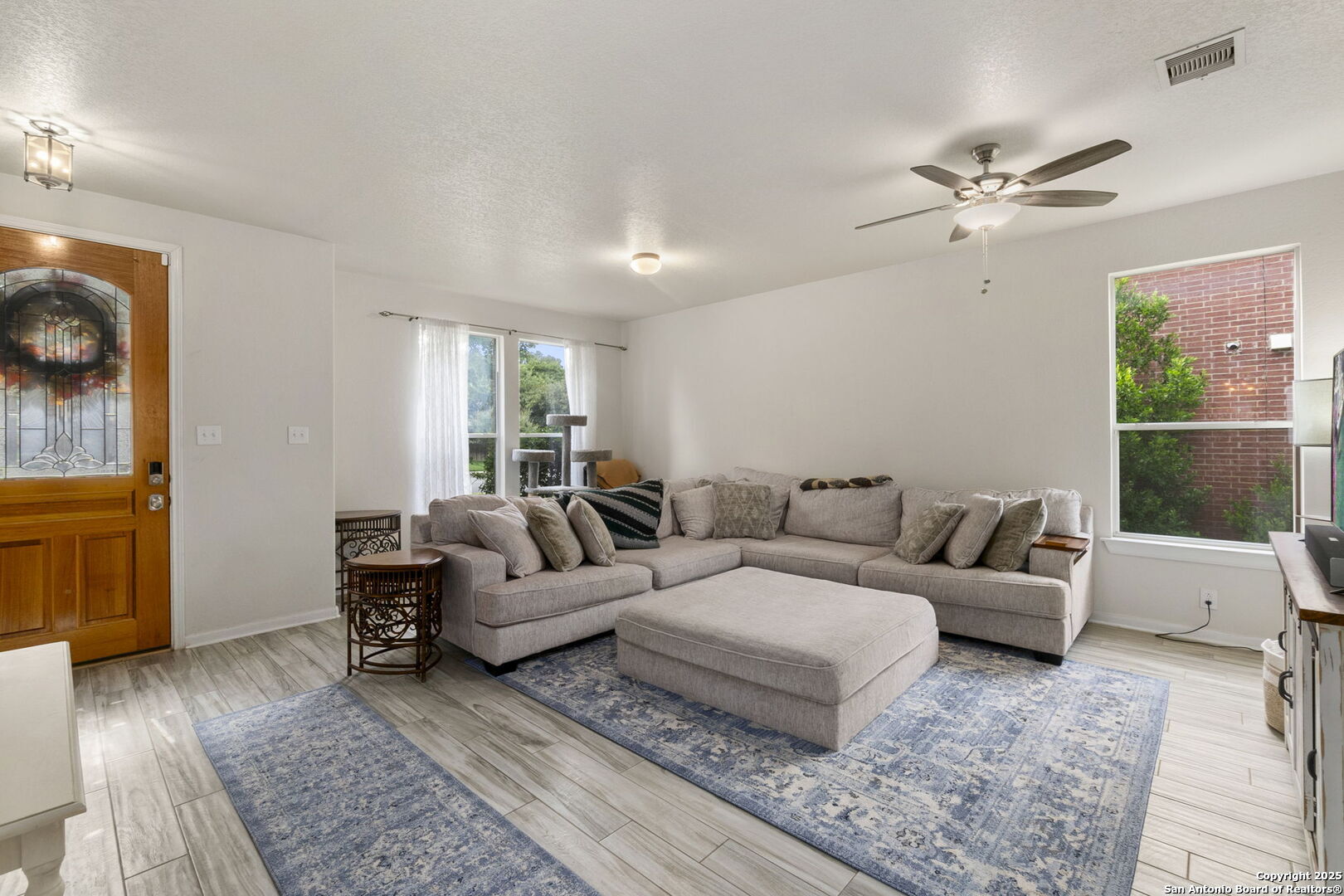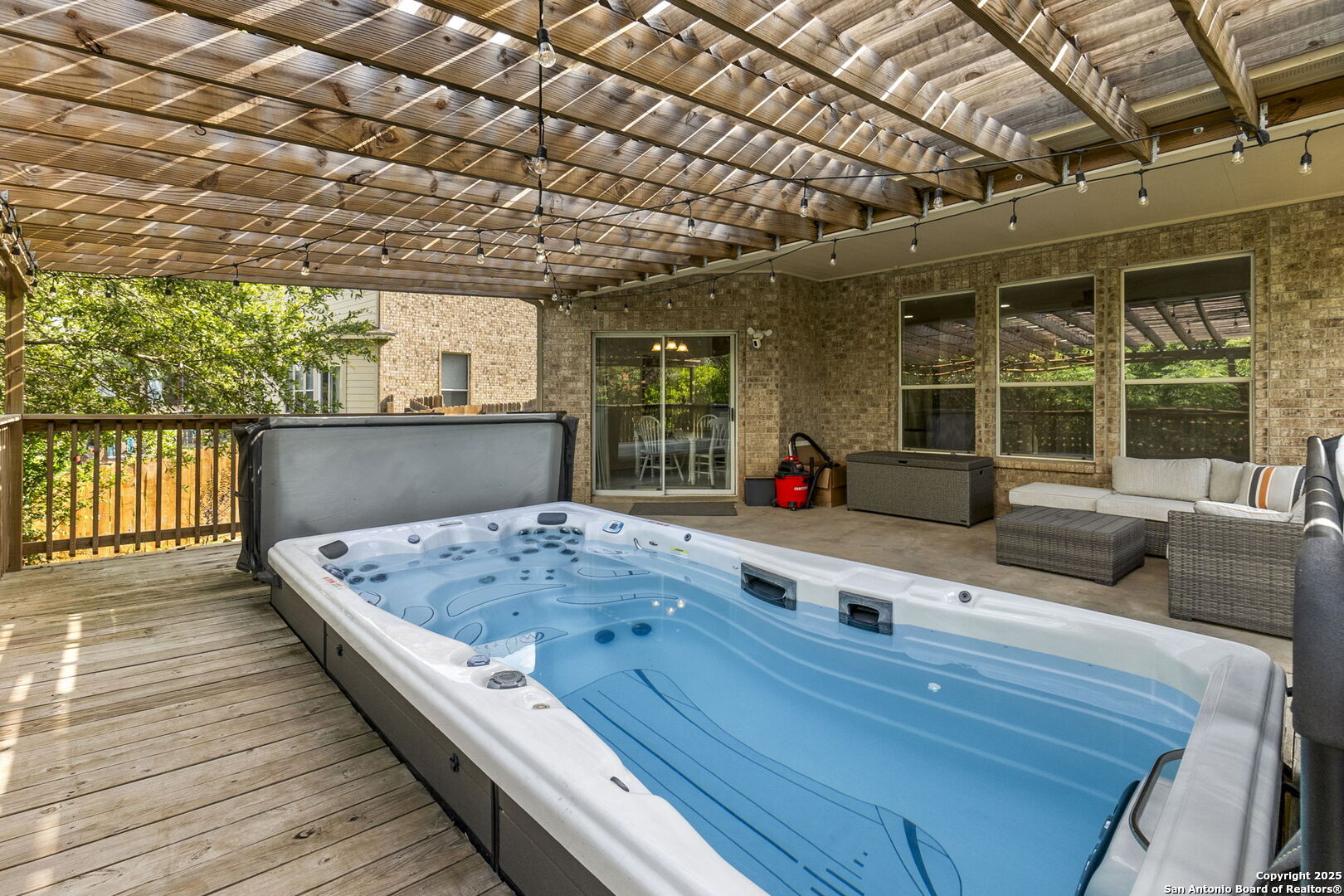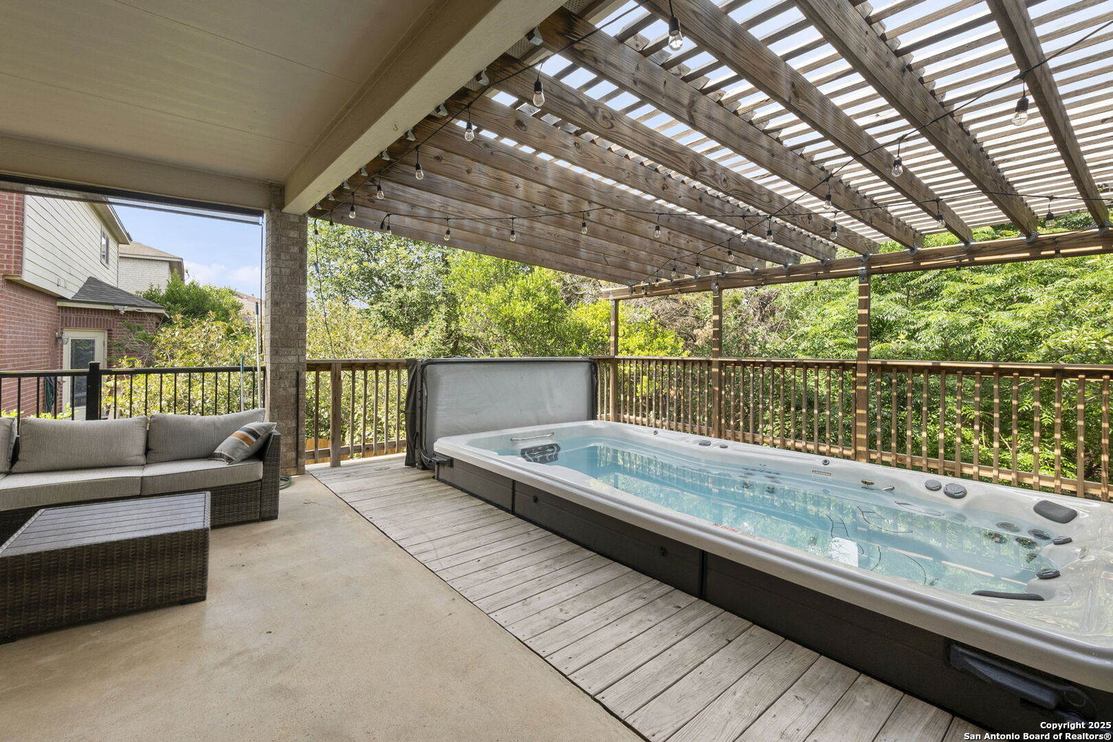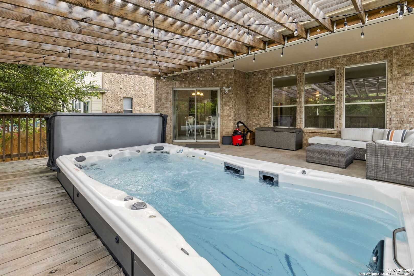 Bathed in natural light and thoughtfully designed, this bright and airy two-story home offers comfort, functionality, and a layout that effortlessly supports everyday living. Nestled in a desirable area north on I-10, it provides easy access to HEB, Walmart, dining, and some of the area's top-rated schools. Step inside to discover an open layout with a spacious kitchen featuring bar seating, stainless steel appliances, and a large pantry/utility room-all seamlessly flowing into the breakfast nook and living room. Whether entertaining or relaxing, this space invites connection and comfort. Upstairs, a generously sized loft offers the perfect flex area for a game room, home office, or second living space. The primary suite impresses with its spaciousness and a cozy sitting area, ideal for winding down after a long day. All three bedrooms are well-sized and thoughtfully placed for privacy and convenience. Step outside to your private backyard oasis. A wooden deck surrounds a heated pool with swim spa-perfect for soaking under the stars-and a shed offers bonus storage. With no direct neighbors behind, the outdoor space feels even more tranquil and secluded. This well-maintained home offers the ideal blend of space, updates, and location. Come envision your future here.