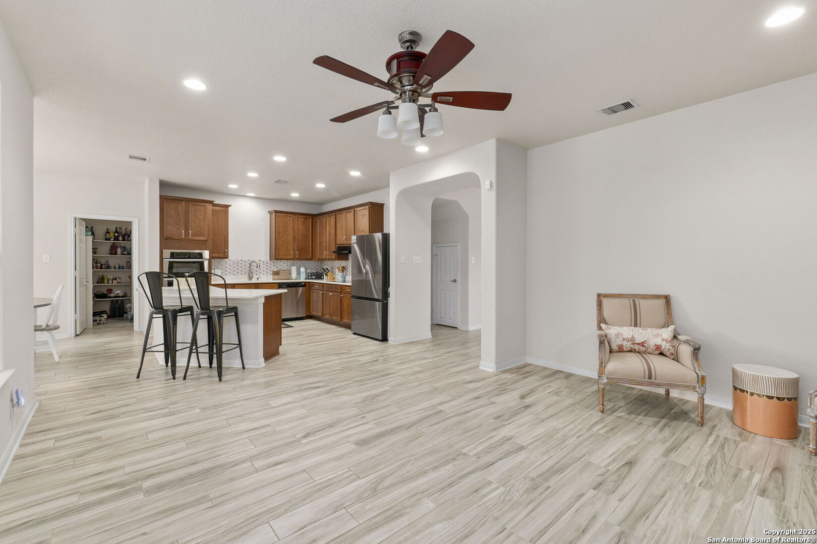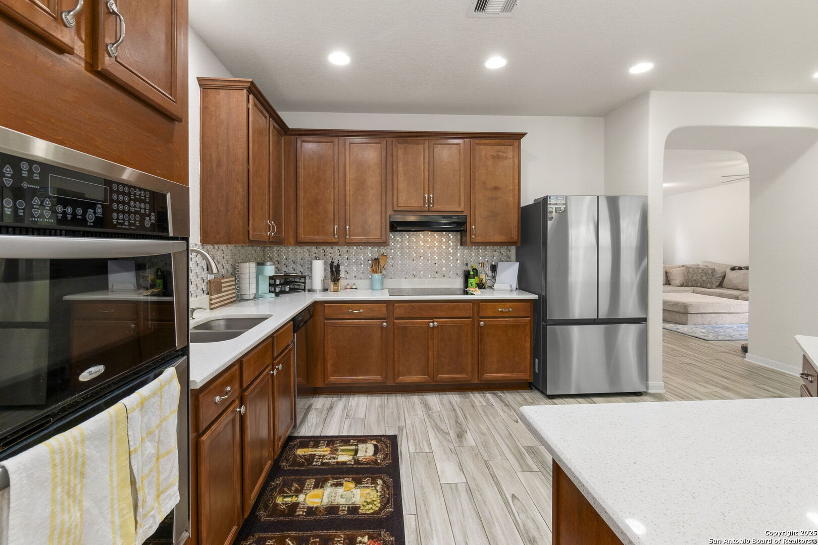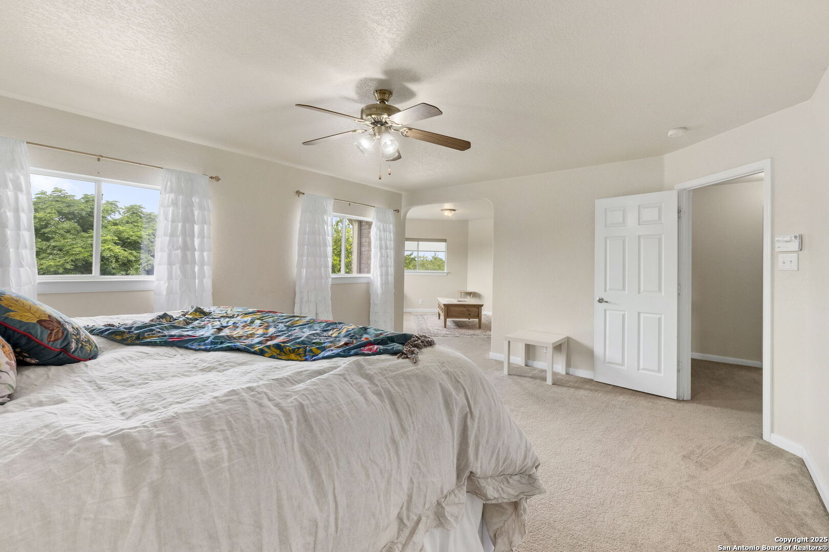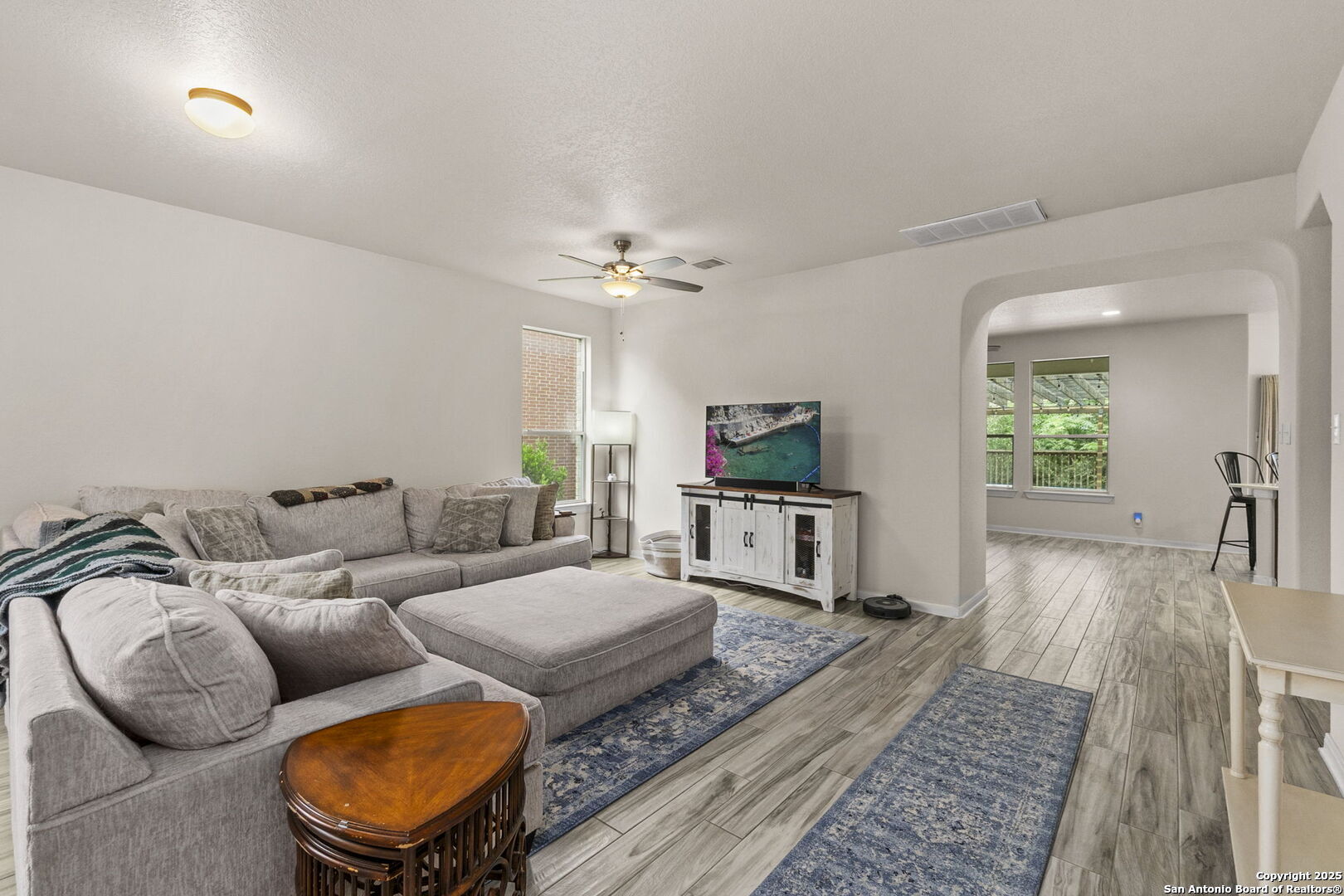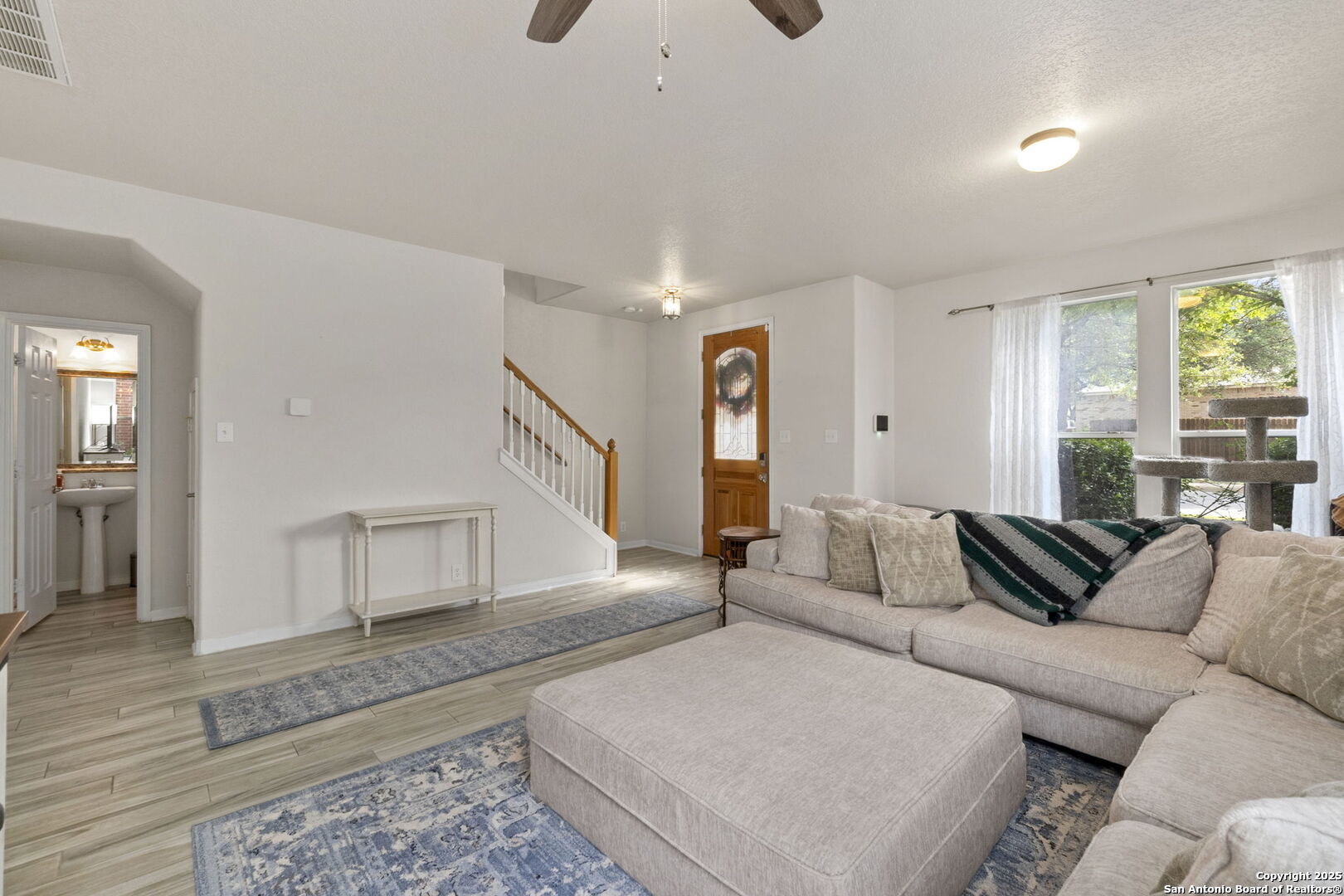 Bathed in natural light and thoughtfully designed, this bright and airy two-story home offers comfort, functionality, and a layout that effortlessly supports everyday living. Nestled in a desirable area north on I-10, it provides easy access to HEB, Walmart, dining, and some of the area's top-rated schools. Step inside to discover an open layout with a spacious kitchen featuring bar seating, stainless steel appliances, and a large pantry/utility room-all seamlessly flowing into the breakfast nook and living room. Whether entertaining or relaxing, this space invites connection and comfort. Upstairs, a generously sized loft offers the perfect flex area for a game room, home office, or second living space. The primary suite impresses with its spaciousness and a cozy sitting area, ideal for winding down after a long day. All three bedrooms are well-sized and thoughtfully placed for privacy and convenience. Step outside to your private backyard oasis. A wooden deck surrounds a heated pool with swim spa-perfect for soaking under the stars-and a shed offers bonus storage. With no direct neighbors behind, the outdoor space feels even more tranquil and secluded. This well-maintained home offers the ideal blend of space, updates, and location. Come envision your future here.