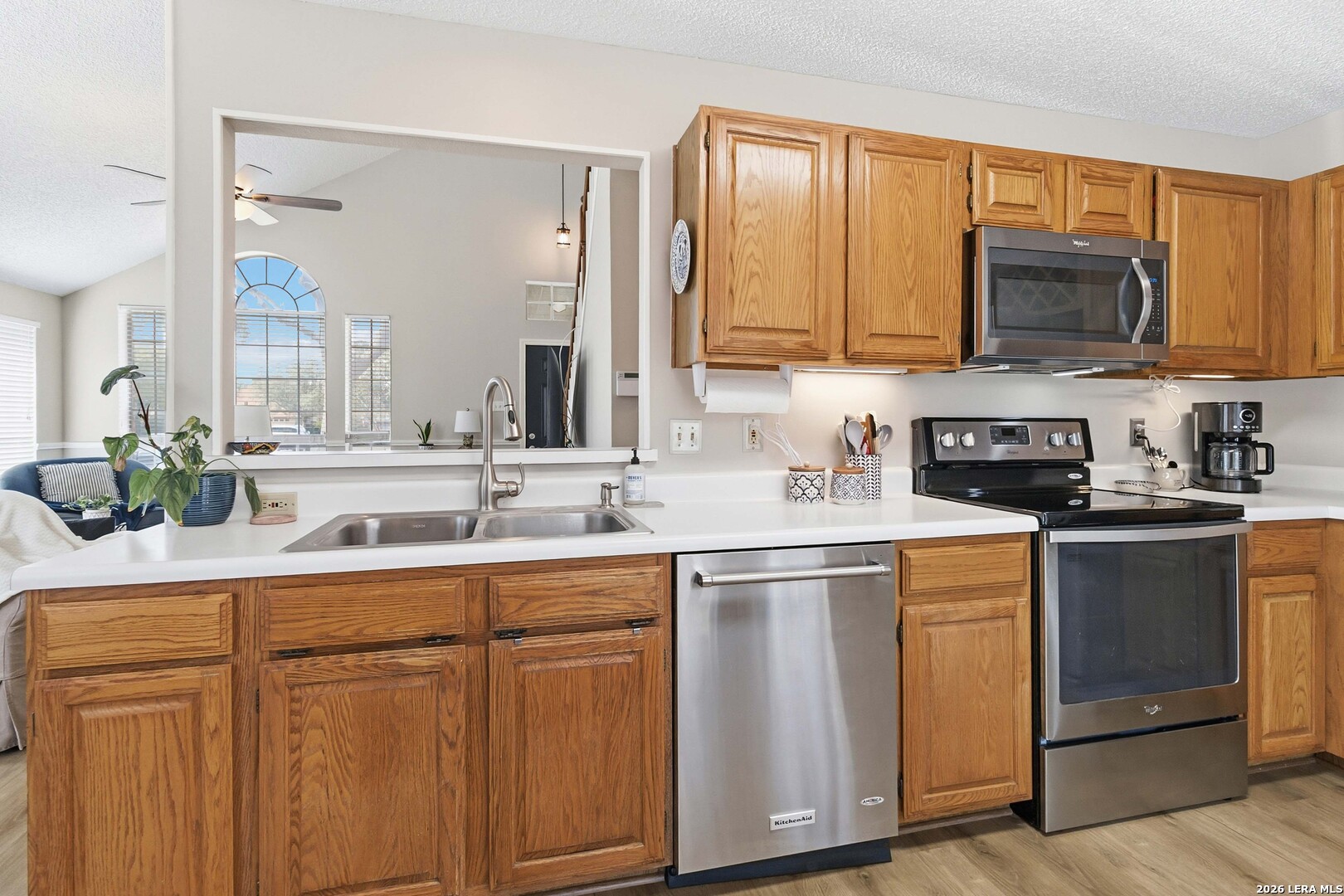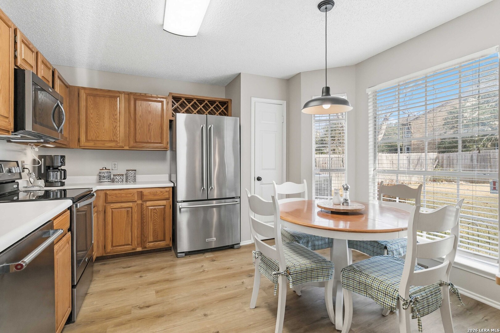 Fresh, Updated & Move-In Ready in the Heart of Stone Oak! This thoughfully refreshed Stone Oak gem blends timeless charm with thoughtful updates. Recent improvements include full interior and exterior paint-trim, ceilings, and doors included-along with updated fixtures, ceiling fans, and beautiful new flooring throughout. A brand-new roof (2025) with gutters provides added peace of mind, while enhanced front and back landscaping creates inviting curb appeal. Situated on a beautiful lot with mature trees, this 3-bedroom, 2-bath home offers a quaint layout with the primary suite conveniently located downstairs. Warm, welcoming living spaces invite relaxation and everyday comfort in one of San Antonio's most established and sought-after neighborhoods. Enjoy a prime location near highly regarded NEISD schools, parks, shopping, dining, and major thoroughfares. This is the perfect blend of character, updates, and location-schedule your showing today!