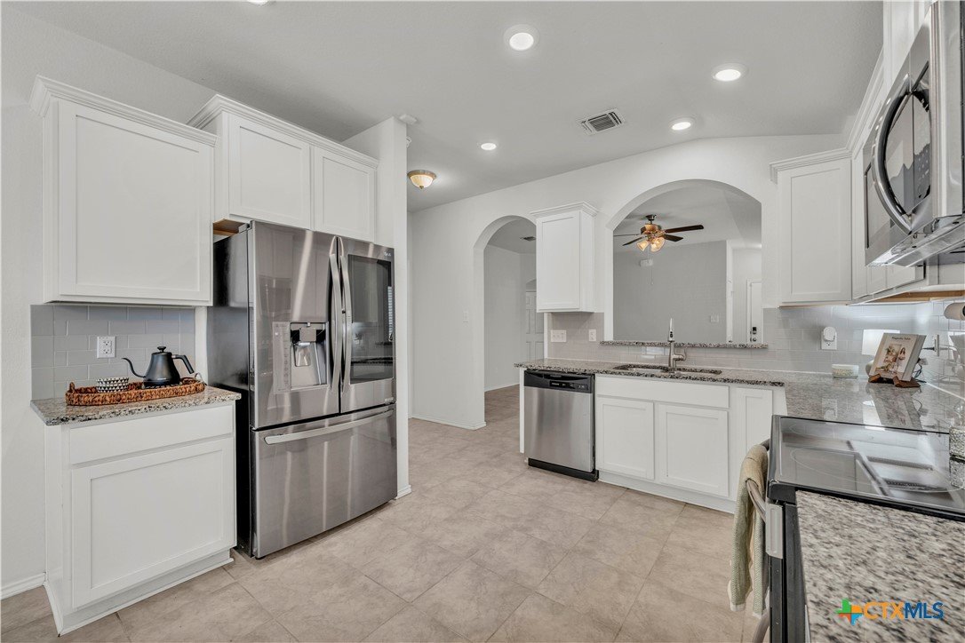 Discover a home where comfort, style, and outdoor living come together in a highly desirable neighborhood. From the moment you arrive, you’ll appreciate the inviting curb appeal and spacious front patio, perfect for morning coffee or greeting neighbors. Solar panels will be paid off at closing, offering long-term energy savings and a reduced electric bill! Inside, the functional layout and fresh paint creates a bright and welcoming atmosphere. The split floorplan provides privacy for the primary suite, while the spacious living area flows seamlessly into the kitchen. The kitchen features a brand new dishwasher, a refrigerator with a built-in drink display, and an open window to the living area, keeping everyone connected and the space feeling open and inviting. Step outside to the covered back patio overlooking a backyard designed for both relaxation and productivity. Three garden beds are ready for seasonal planting, and a storage shed provides an abundance of organized storage. The installed Vivint camera system has the option to be transferred for ongoing monitoring. This home perfectly combines comfort, efficiency, and outdoor enjoyment, making it ready for you to move in and make it your own.