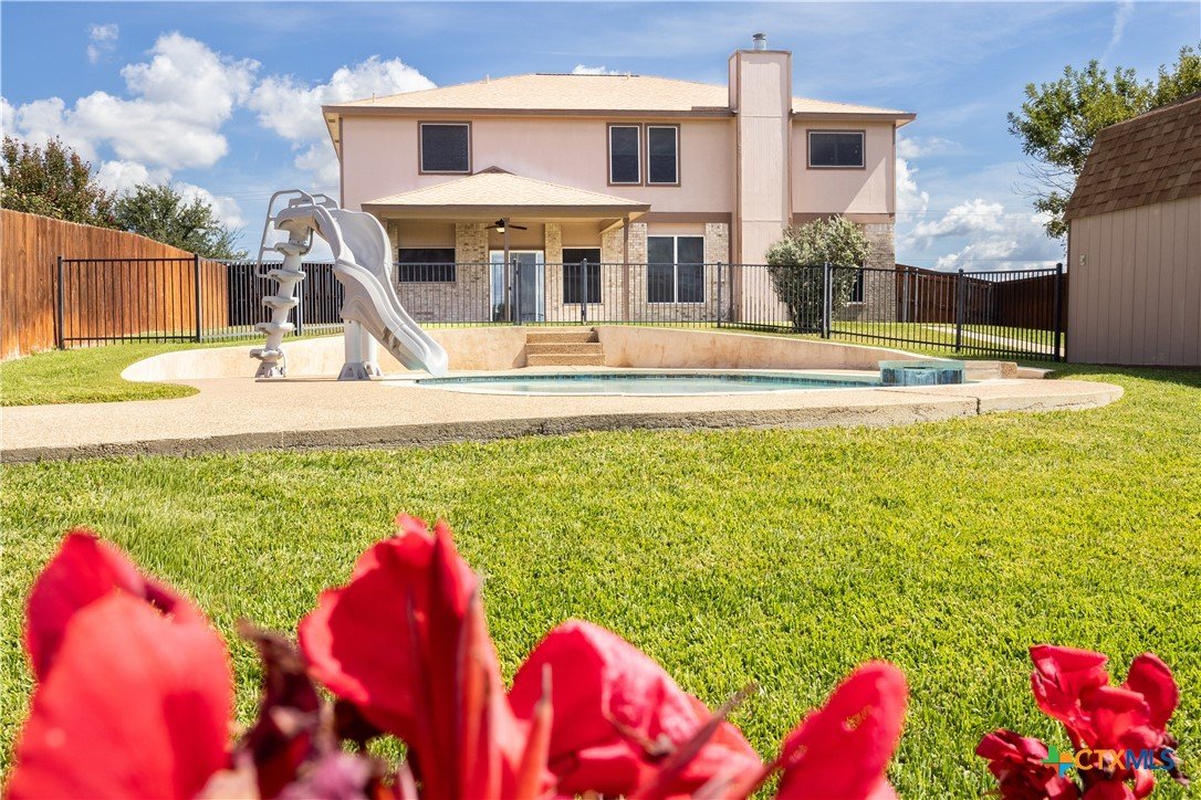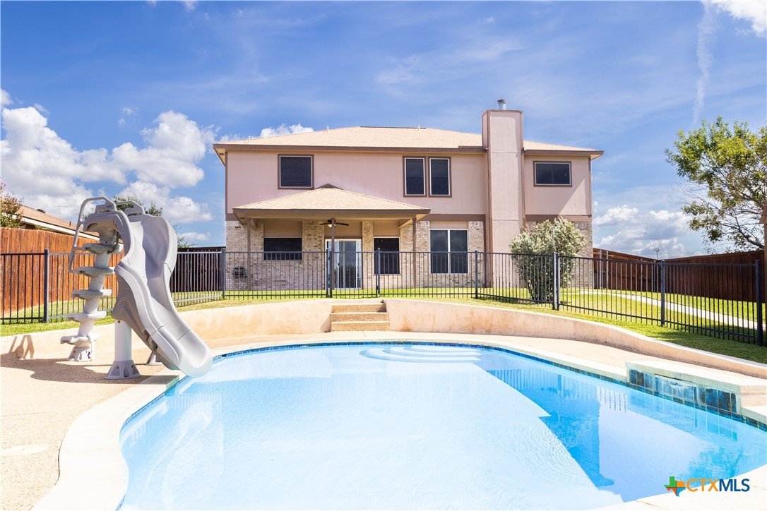 Immaculate One-Owner Home with Resort-Style Backyard in Skipcha Mountain Estates! Welcome to this stunning, meticulously maintained two-story home built in 2003, nestled in the highly sought-after Skipcha Mountain Estates of Harker Heights, TX. With 4 spacious bedrooms, 2.5 bathrooms, and a 2-car attached garage, this home combines elegant design with thoughtful upgrades throughout. Step inside to discover a beautifully flowing layout featuring a formal living and dining room, a large family room with an upgraded wood-burning fireplace, a breakfast nook, and a breakfast bar — perfect for both everyday living and entertaining. The smart refrigerator and stove bring modern convenience to the heart of the home. Upstairs, you'll find safety and peace of mind with built-in wall safe, second-floor safety ladders, and pre-wiring for an alarm system. Energy efficiency is a highlight, with SolarBoard radiant heat barrier, an energy-efficient upgraded pool pump, and Owens Corning shingles on both the home and shed for lasting durability. Step outside into your own private paradise — the gunite in-ground pool with slide and waterfall is surrounded by a wrought iron safety fence, concrete sidewalks, and beautifully landscaped spaces. A large storage shed with loft storage and electricity adds extra functionality. Additional features include: Taexx in-wall pest control system, Smart home upgrades, Concrete paths to pool & shed, Prime location close to schools, parks, and amenities This home offers comfort, safety, efficiency, and fun — all in one package. Why wait to build when your dream home is ready now!
