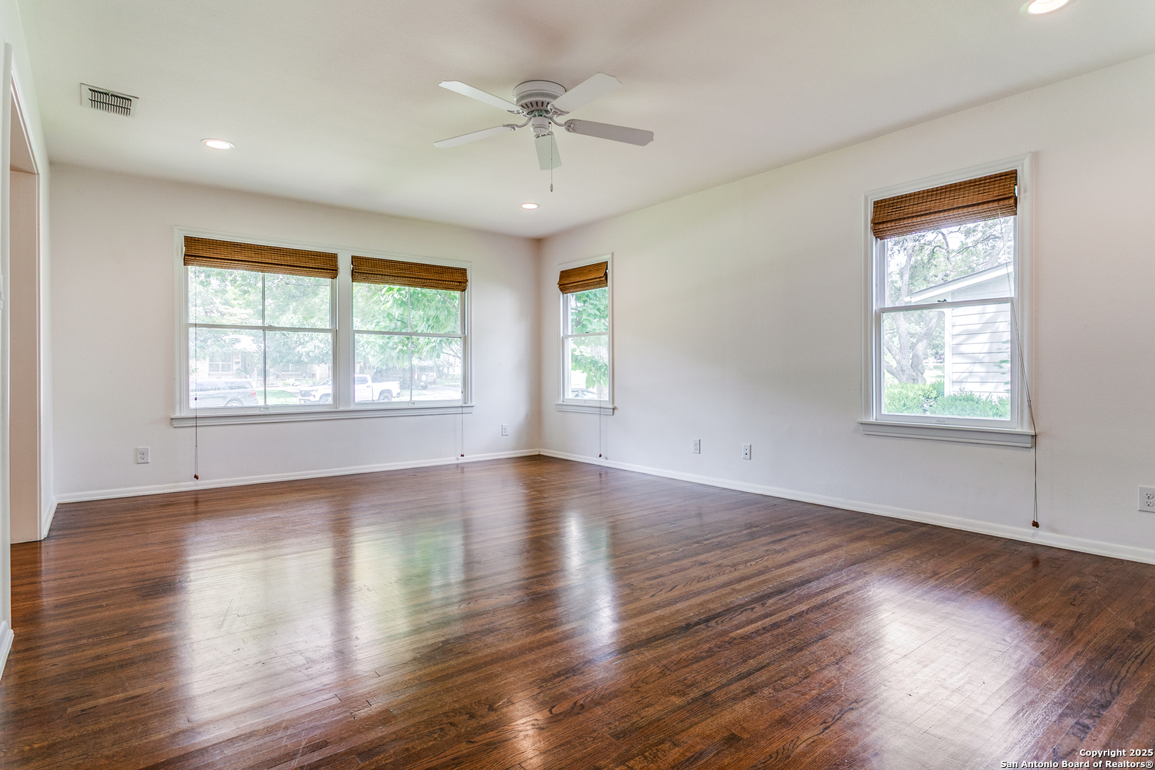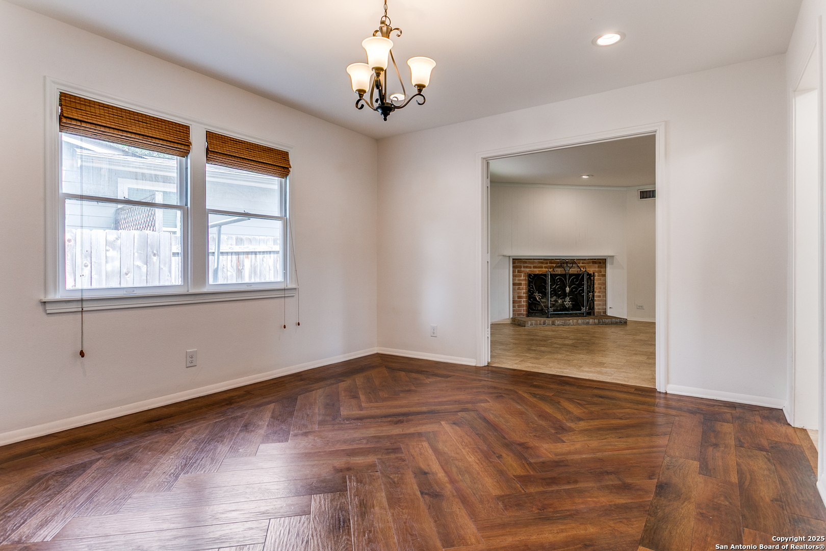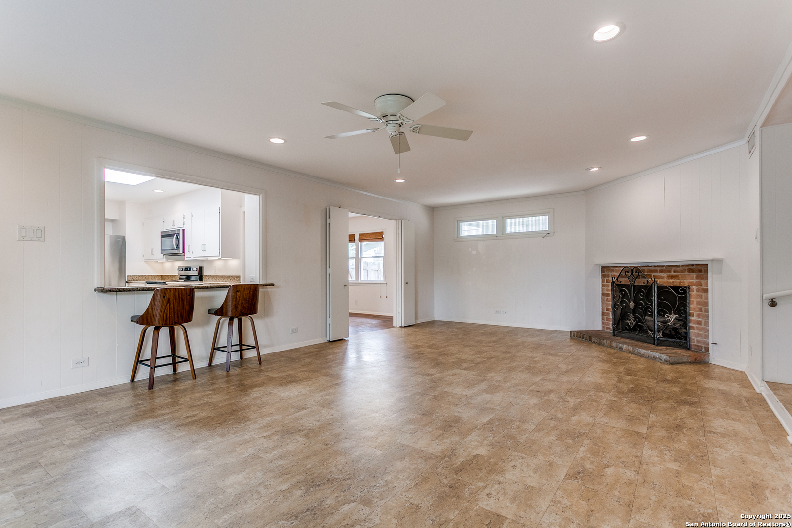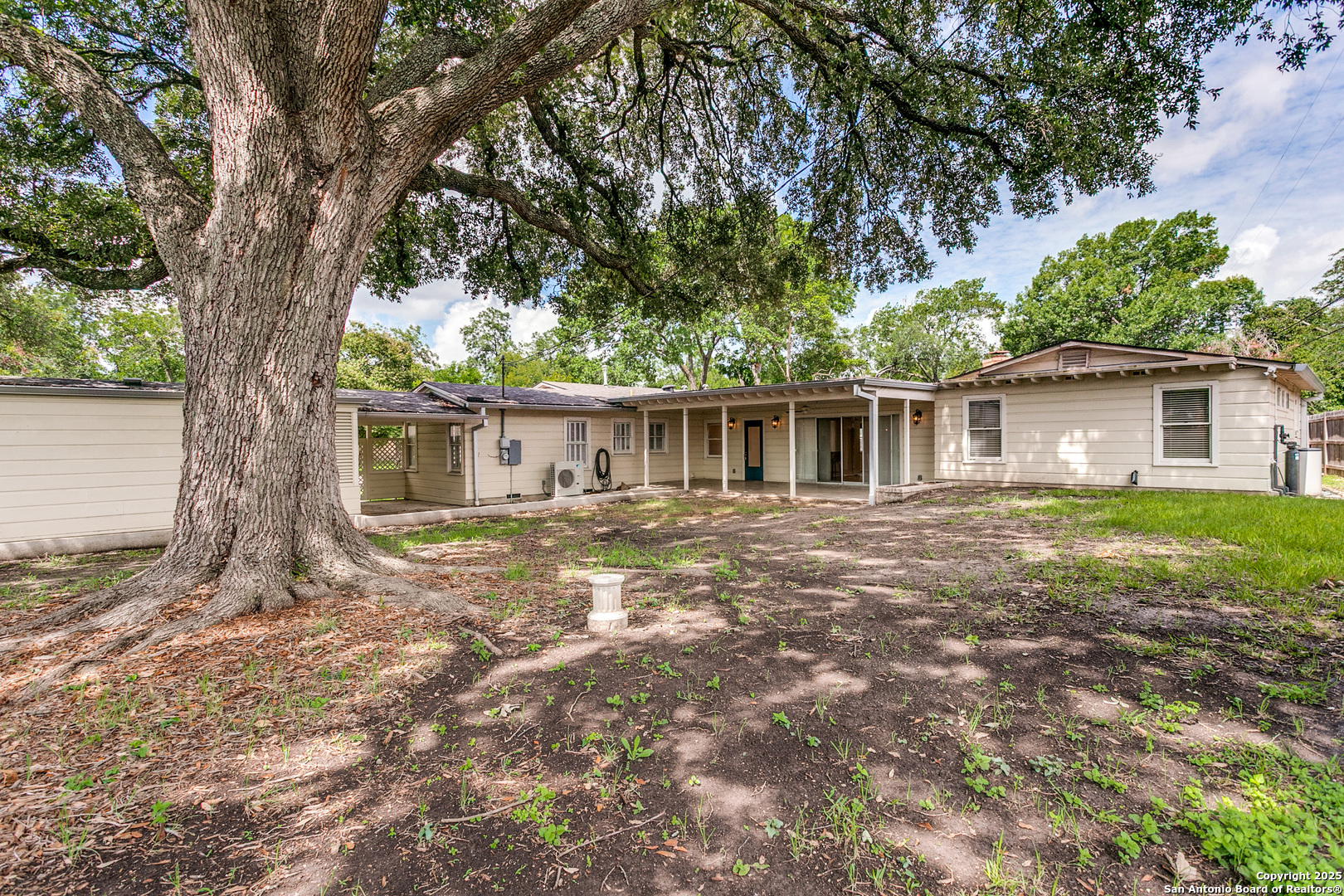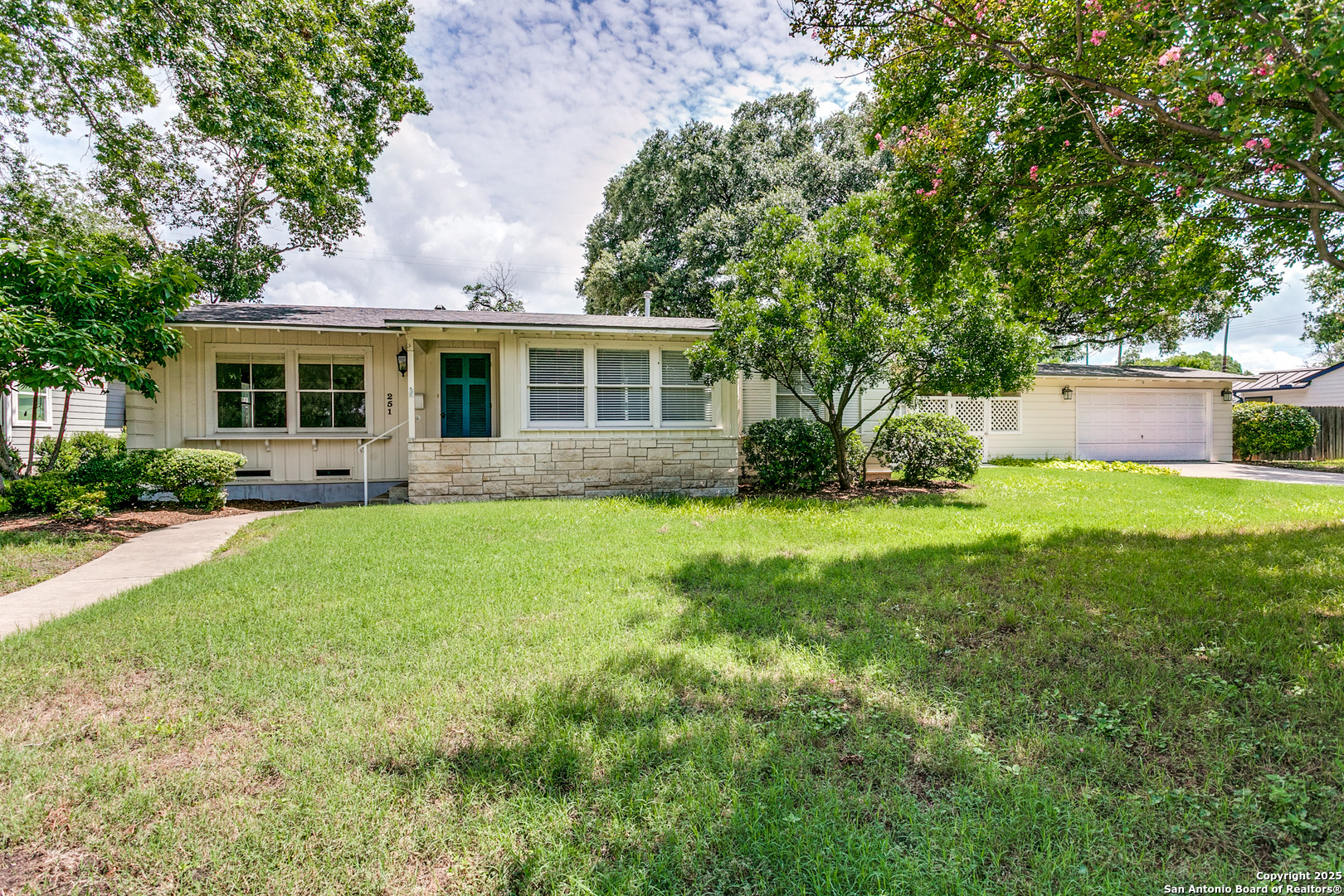 Beautiful home in the Alamo Heights School District featuring four spacious bedrooms and three bathrooms. The open-concept eat-in kitchen seamlessly flows into a cozy den, perfect for family gatherings. There's a second living room and a formal dining area for versatile entertaining. The private master suite offers a peaceful retreat, while the covered porch invites relaxing outdoor moments. Additional highlights include a two-car garage and a large lot surrounded by mature trees, providing plenty of outdoor space and privacy.