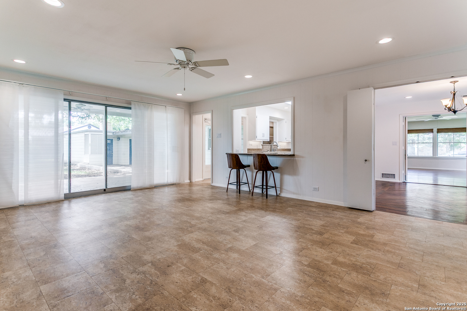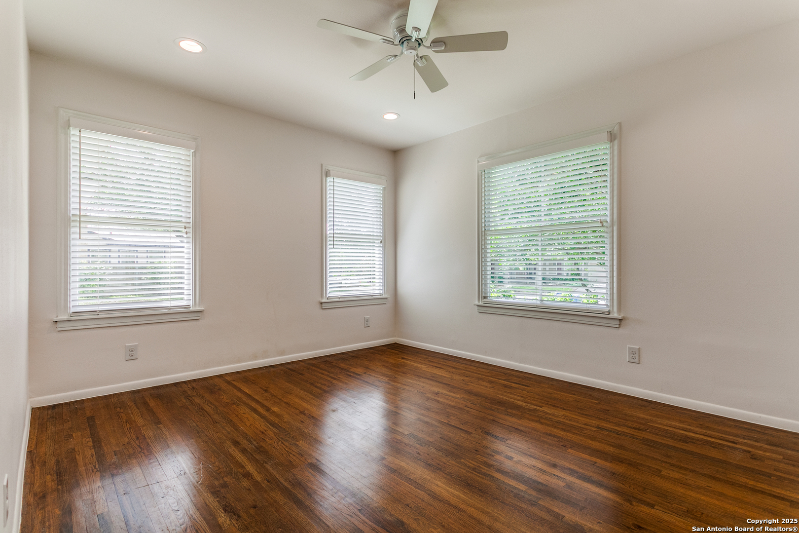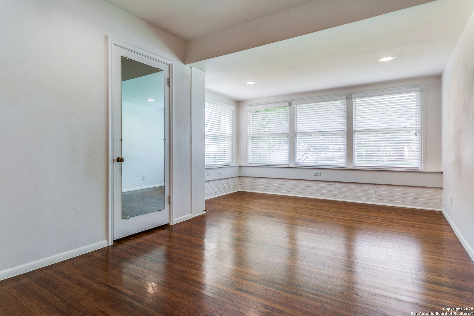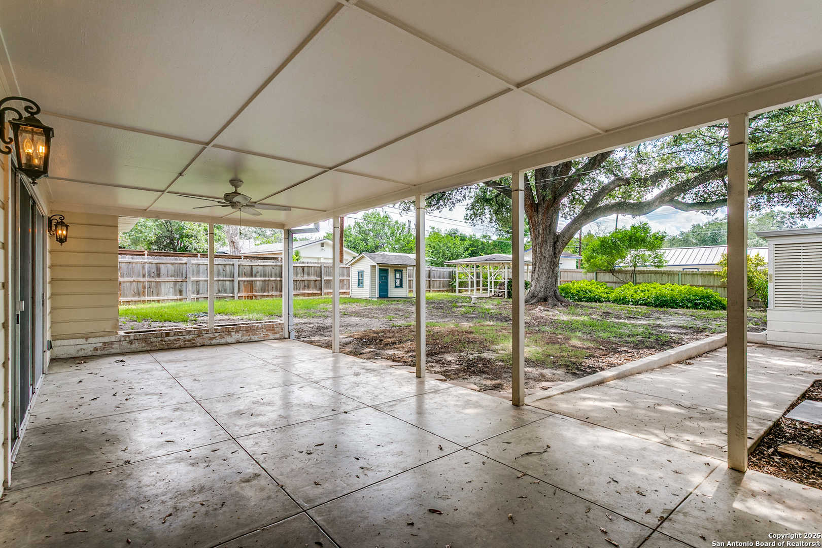 Beautiful home in the Alamo Heights School District featuring four spacious bedrooms and three bathrooms. The open-concept eat-in kitchen seamlessly flows into a cozy den, perfect for family gatherings. There's a second living room and a formal dining area for versatile entertaining. The private master suite offers a peaceful retreat, while the covered porch invites relaxing outdoor moments. Additional highlights include a two-car garage and a large lot surrounded by mature trees, providing plenty of outdoor space and privacy.