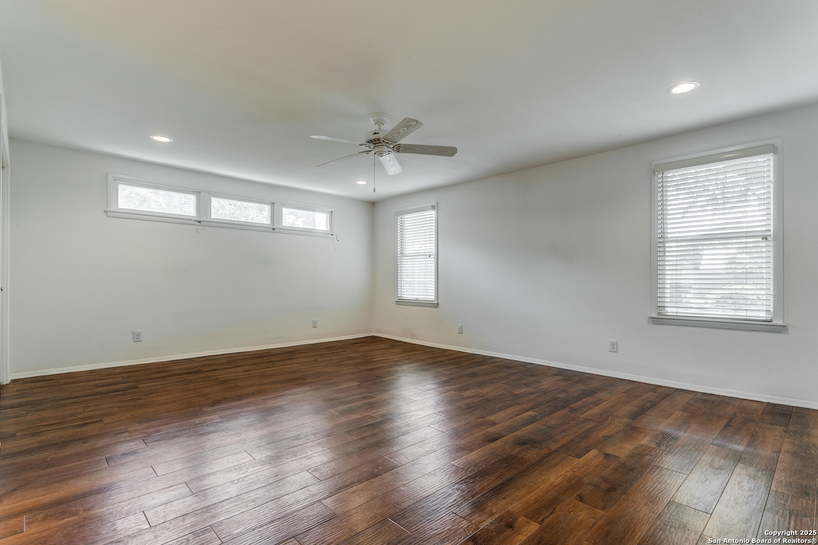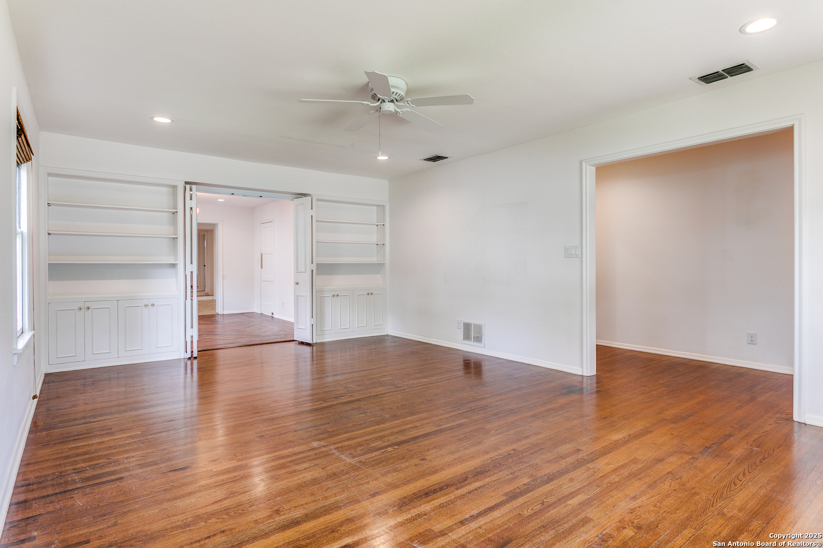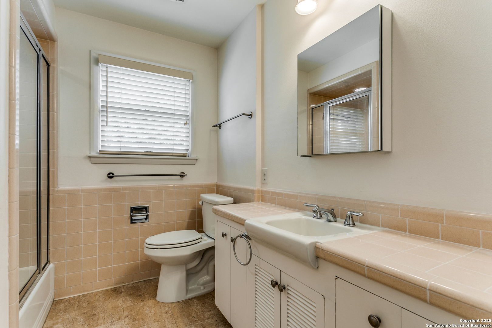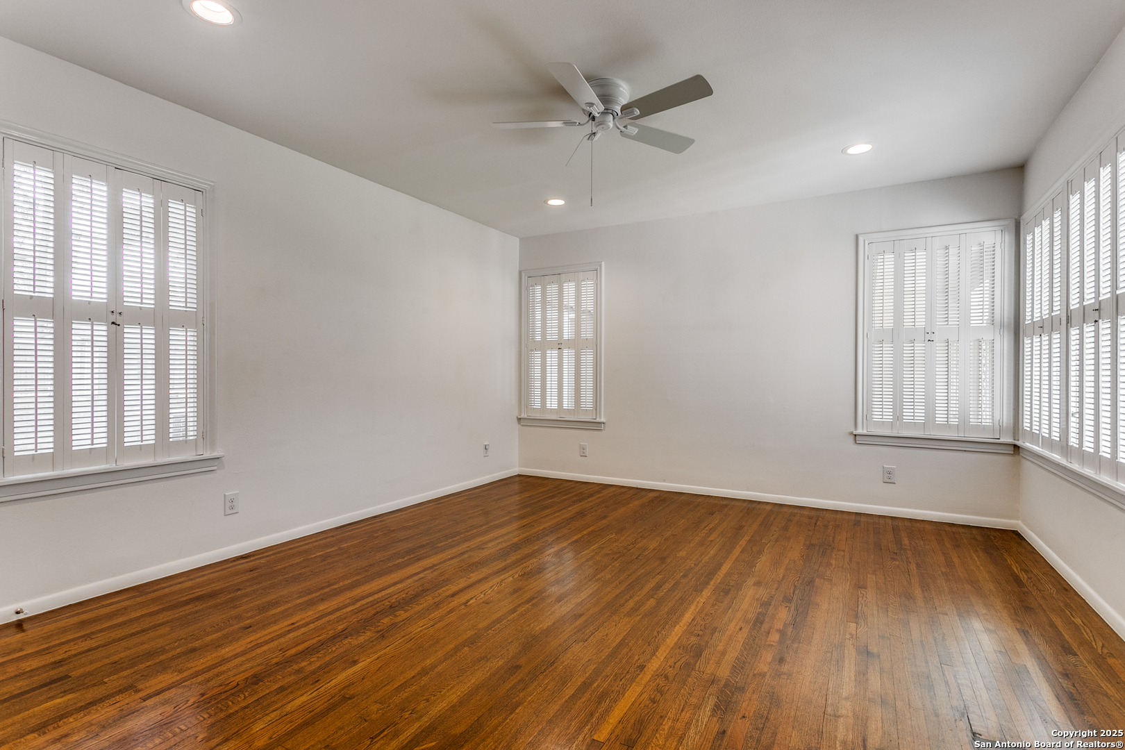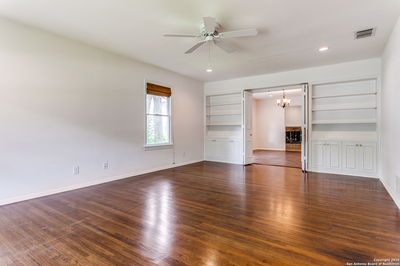 Beautiful home in the Alamo Heights School District featuring four spacious bedrooms and three bathrooms. The open-concept eat-in kitchen seamlessly flows into a cozy den, perfect for family gatherings. There's a second living room and a formal dining area for versatile entertaining. The private master suite offers a peaceful retreat, while the covered porch invites relaxing outdoor moments. Additional highlights include a two-car garage and a large lot surrounded by mature trees, providing plenty of outdoor space and privacy.
